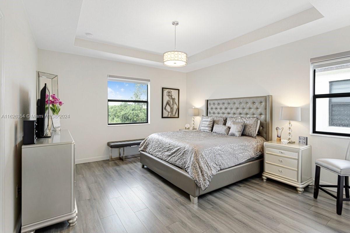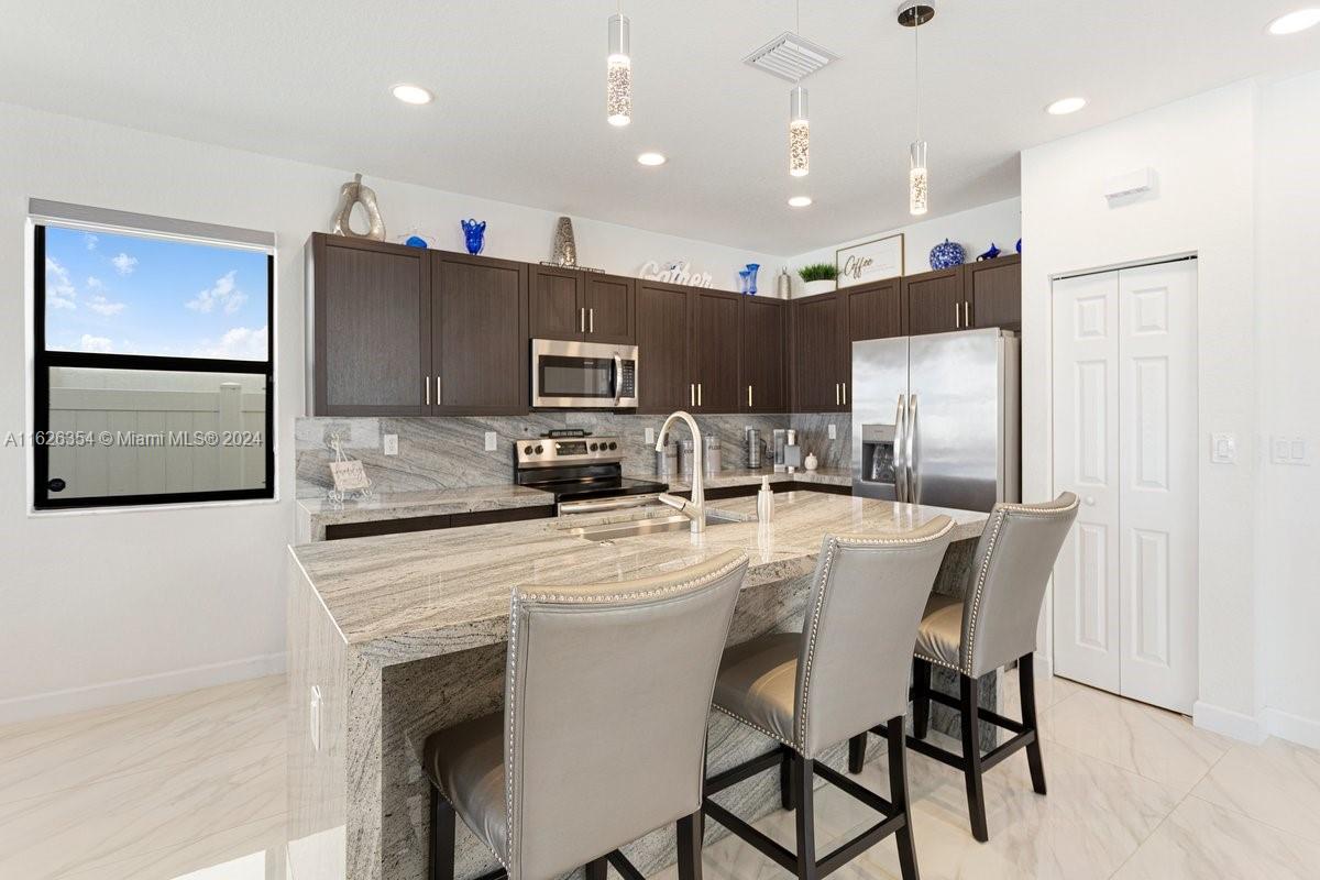 DON'T MISS OUT!!SELLER IS VERY MOTIVATED! Step into luxury living with this stunning 4-bedroom, 3-bathroom home located in the gated community of Aquabella. This immaculate turnkey property sitting on an oversized lot, offers everything you need. New flooring and upgraded lighting, creating an inviting atmosphere for entertaining or relaxing with family and friends. Upgraded kitchen, modern appliances and ample cabinet space. ONE BEDROOM AND FULL BATHROOM ON THE FIRST FLOOR, perfect for guests. Additional upgrades include gutters, an alarm system for added security, zebra window treatments for privacy and style, and fencing for privacy. Resort-style amenities including two waterfront pools, a clubhouse, a gym, a kids' splash pad area, and kiddie parks throughout the community.