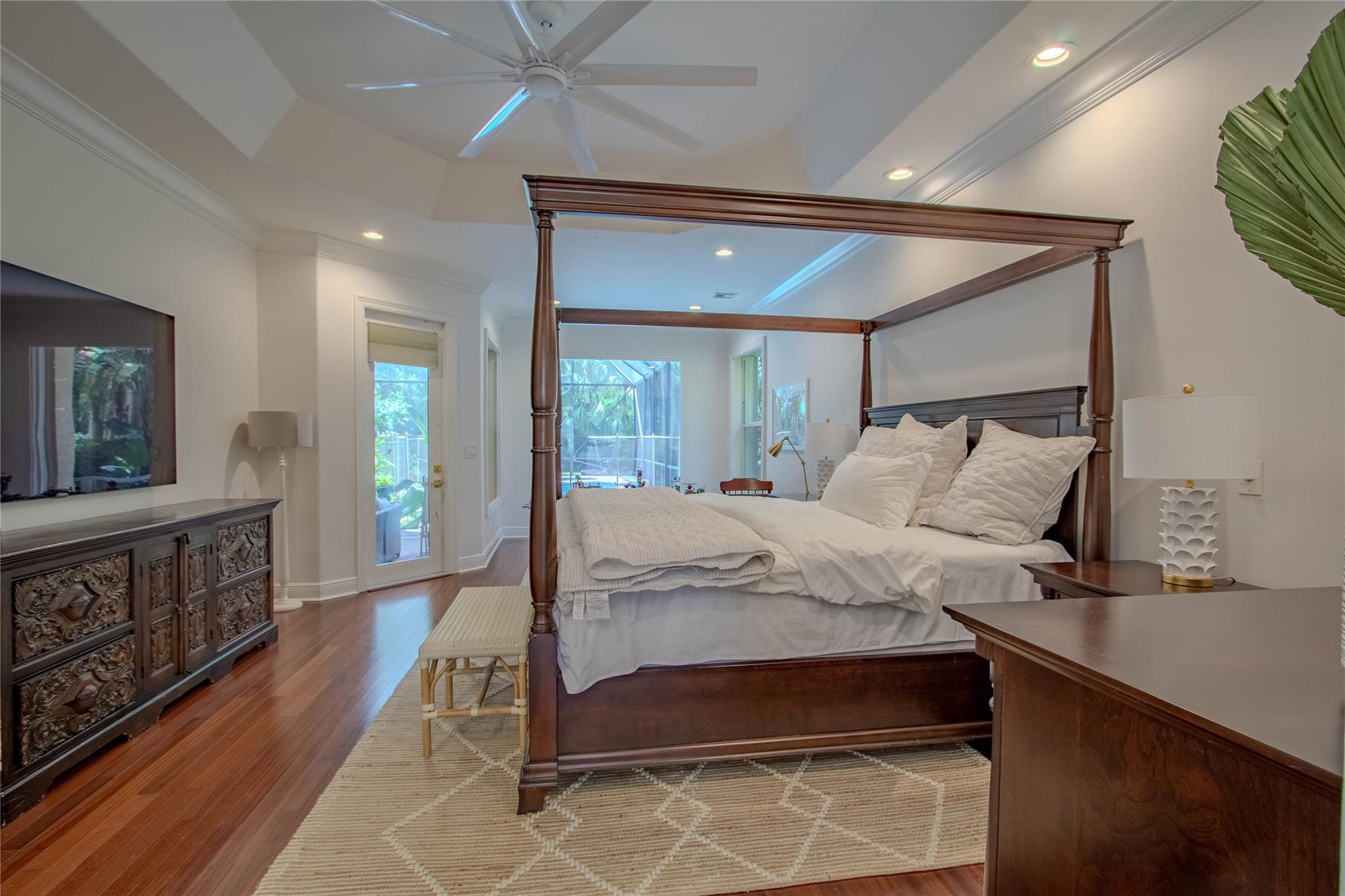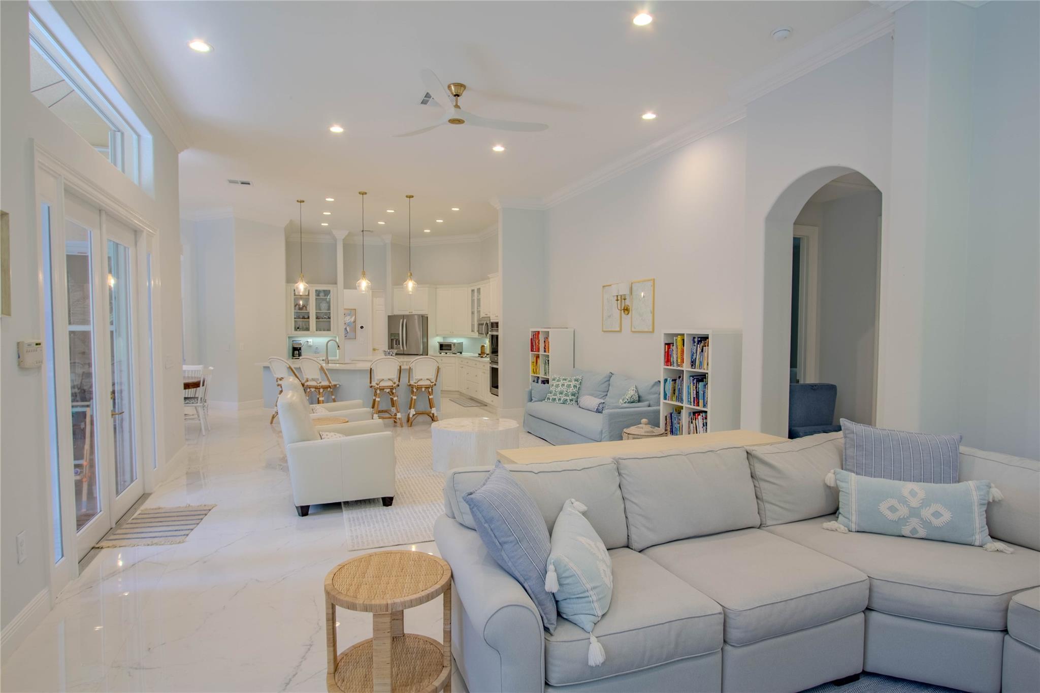 Your private backyard oasis, featuring a free-form screened pool with spa. The beautiful oversized paver patio. Enjoy peace of mind with a brand-new roof installed in 2019. Step inside to luxury with skim-coated walls and ceilings and stunning 48x48 porcelain tile throughout. Located in the prestigious gated community , this spacious home offers a triple split plan with five large bedrooms The recently renovated kitchen boasts all new white quartz countertops, stainless steel appliances, including a double oven, and a walk-in pantry. Neutral tones throughout wood floors in all bedrooms Tucked away on a scenic, tree-lined street, plus enjoy the convenience to the park and tennis courts. Minutes away from American Heritage, 595, airport and Ft Lauderdale. Garage ready for Tesla charging.