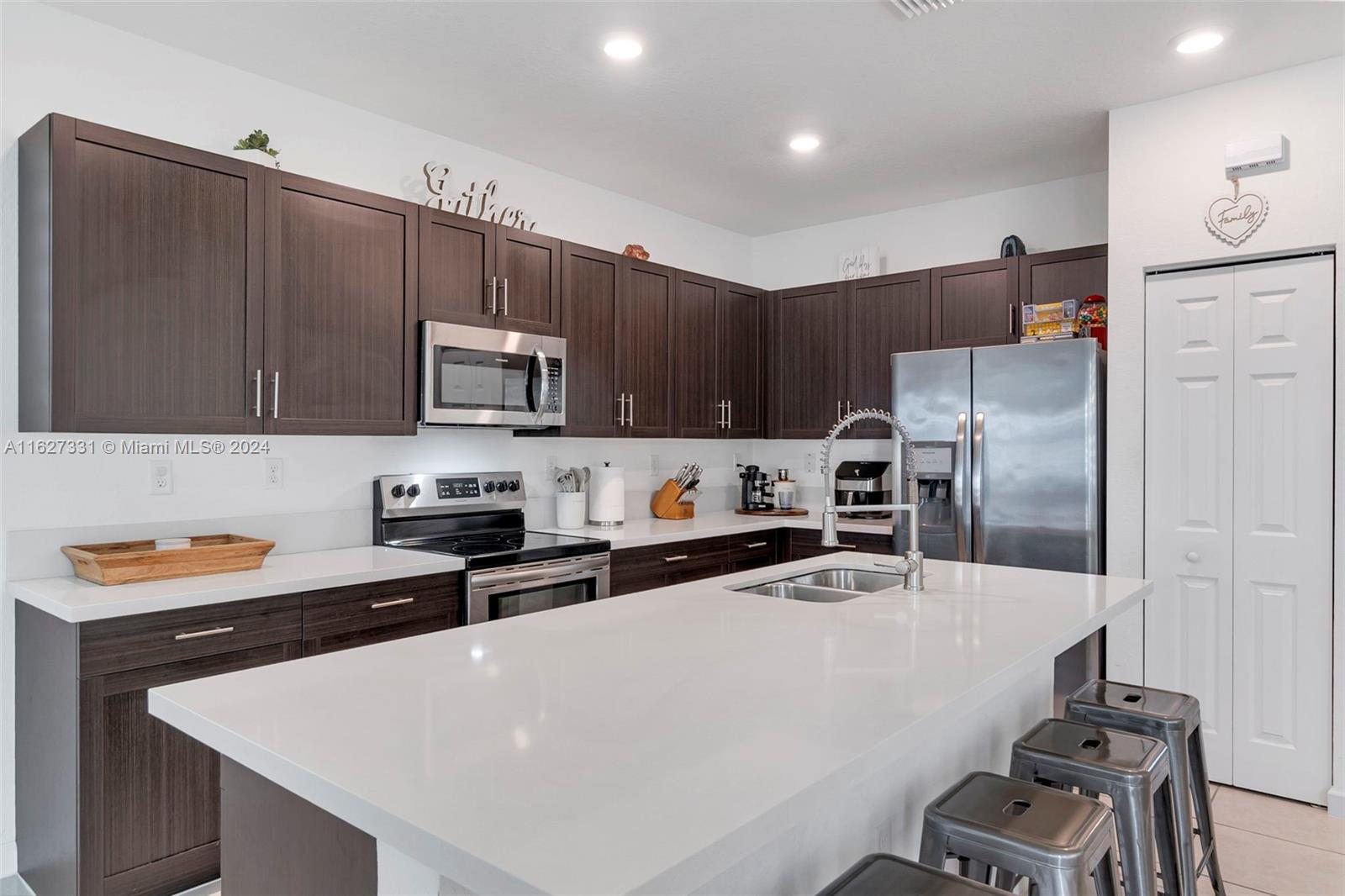 Welcome to 11054 W 35th Lane in Aquabella by Lennar! This impeccable 3 bed, 2.5 bath home features a 1-car garage and was built in 2020. Enjoy a gorgeous kitchen with stainless steel appliances, tile floors on the ground floor, and spotless carpet on the stairs and second floor. The home boasts a flat tile roof, white vinyl fence, zebra blinds, whole house water filtration system, smart home technology, retractable awning, tankless water heater, and a laundry room. Community amenities include a clubhouse, party room, fitness center, kids play room, 2 lagoon pools, and a kids water park/pool area.