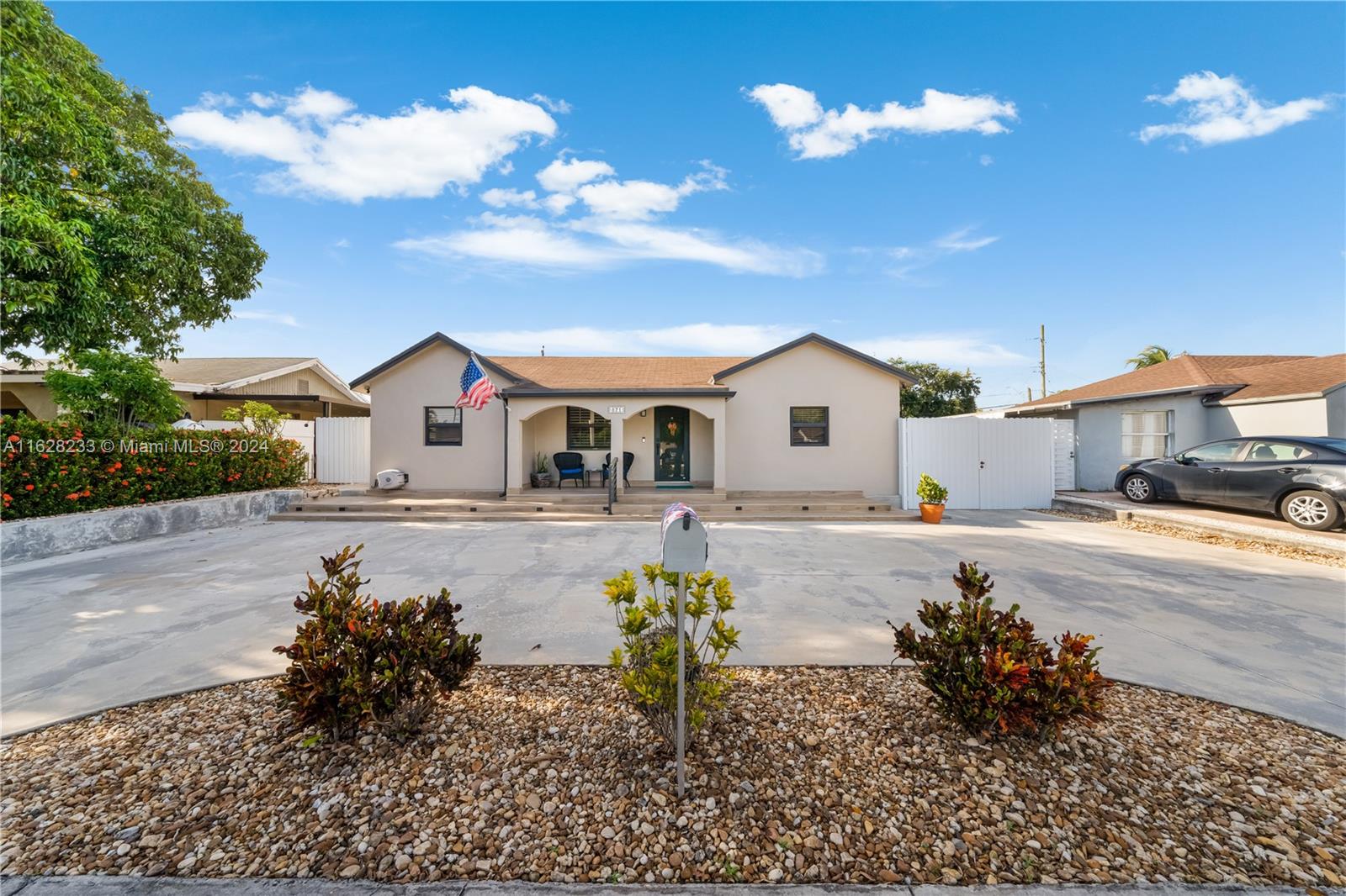 Stunning 4-bedroom, 2-bathroom home featuring a remarkable remodeled kitchen w/quartz countertops, backsplashes, and large peninsula. The spotless floors and freshly remodeled bathrooms add a touch of modern elegance. Split-level bedrooms provide privacy, w/bathrooms conveniently located on each side of the home. Enjoy cooking with KitchenAid appliances and wood cabinets, and appreciate the natural light streaming through impact doors and windows. The outdoor area is perfect for entertaining, with a covered patio that includes an outdoor counter, sink, and icemaker, plus a 4-person saltwater spa. Additionally included a 10x11 concrete covered permanent shed, gated side parking for boat/trailer, & a circular driveway w/ample space for 5 vehicles. Located close to highways & airports.