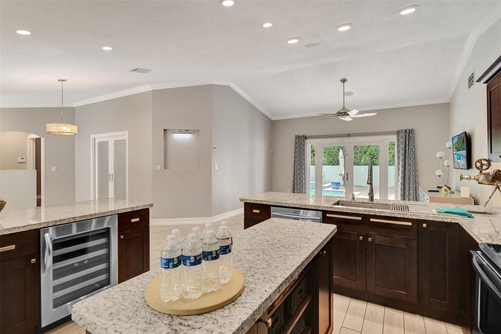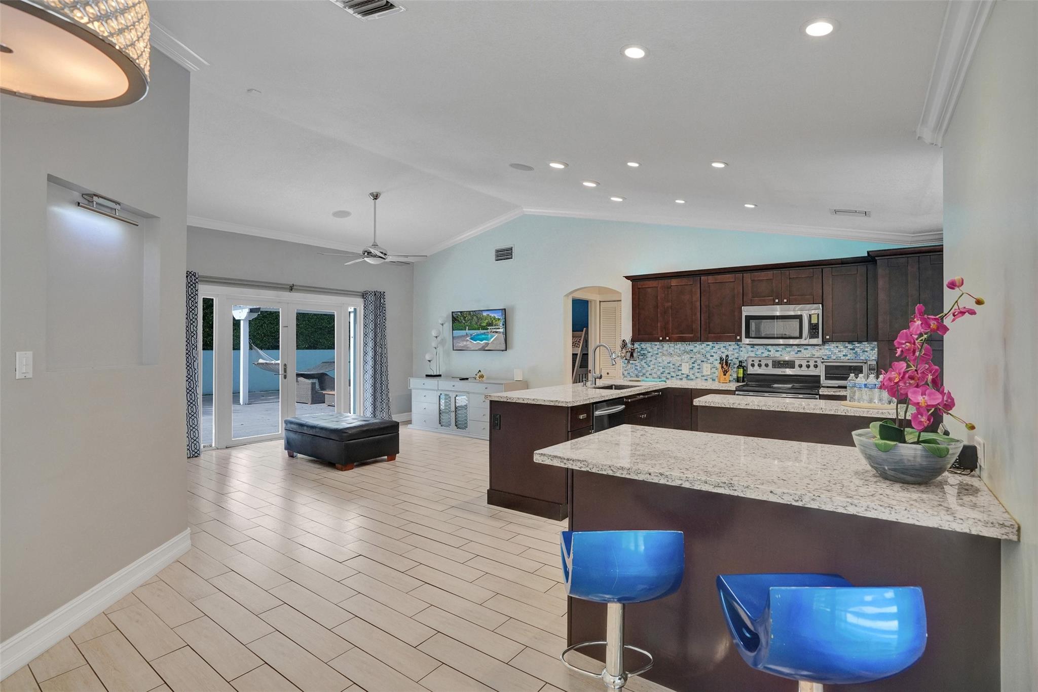 This stunning 3-bedroom home + Den includes a fully enclosed den/office with built-in cabinetry offering flexibility for work or additional living space. Resort-like backyard, complete with a heated, saltwater pool and a covered pergola offers indoor/outdoor living. The home boasts a modern kitchen with granite countertops and a rolling center island. The climate-controlled 2-car garage, equipped with an AC mini-split system, provides comfortable storage and workspace year-round. A new roof installed in 2018 features double hurricane straps along with Complete hurricane impact protection for windows/doors/garage to ensure peace of mind and insurance discounts. New AC condenser keeps the home cool and comfortable. Conveniently located near I-75, malls, hospitals, and parks.