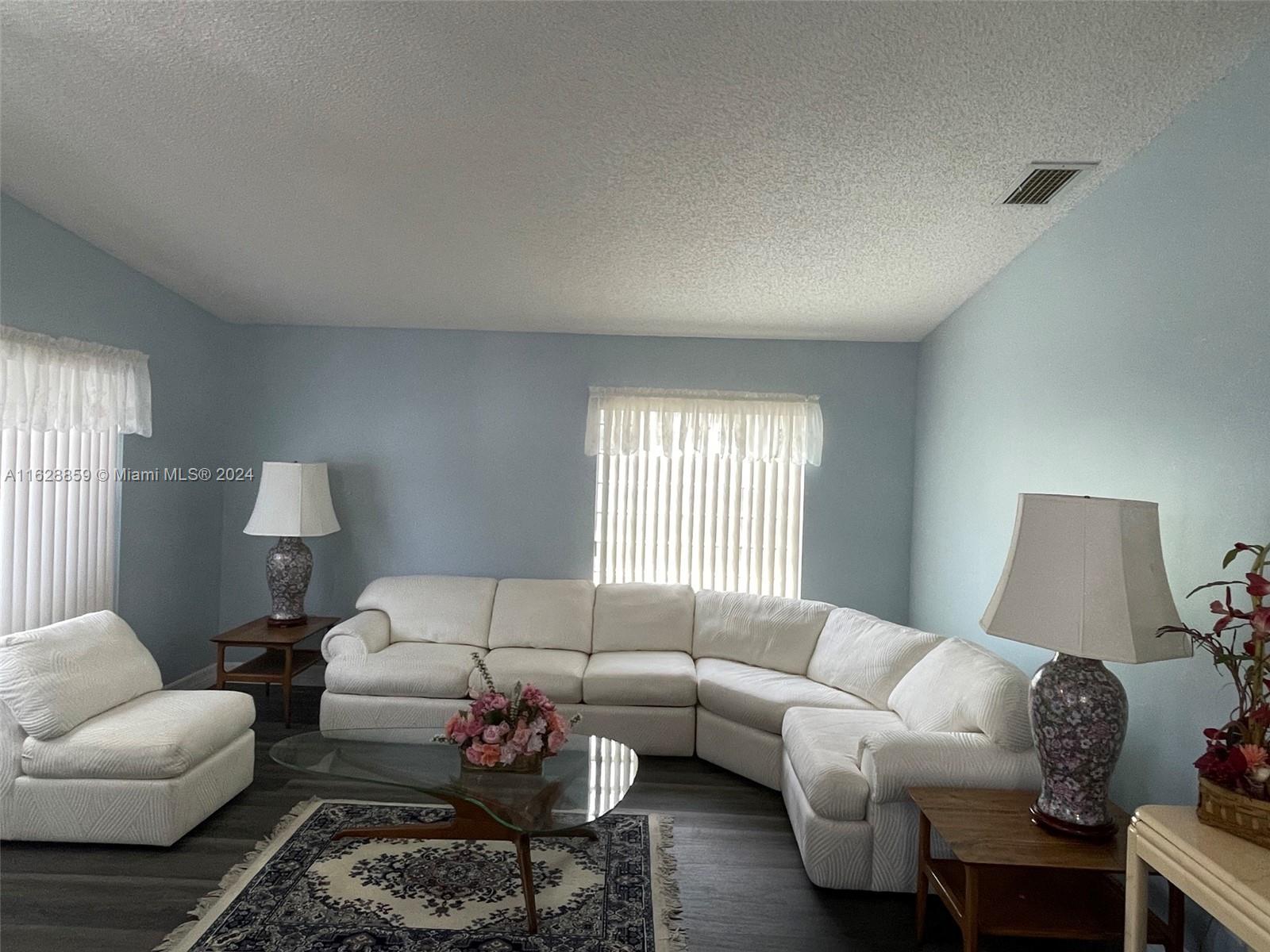 Reduced! Beautiful view of the Lake! 3 bedroom, 2 bathroom single family home located in Harmony Lakes Community in Davie. New vinyl plank flooring and fresh paint throughout the home. Large furnished Family Room and Dining Room upon entering. Vaulted ceilings and split floor plan, with 2 bedrooms & 1 bathroom on one side and a large partially furnished Master Bedroom with huge walk in closet and Master bathroom on the other side. Large eat in kitchen and spacious Living Room with gorgeous view of the lake. Home has East/West exposure and sunsets over the lake are fabulous! Pets are welcome too! The community center has huge pool, tennis courts, basketball courts, racquetball & children’s playground. Close to I-595