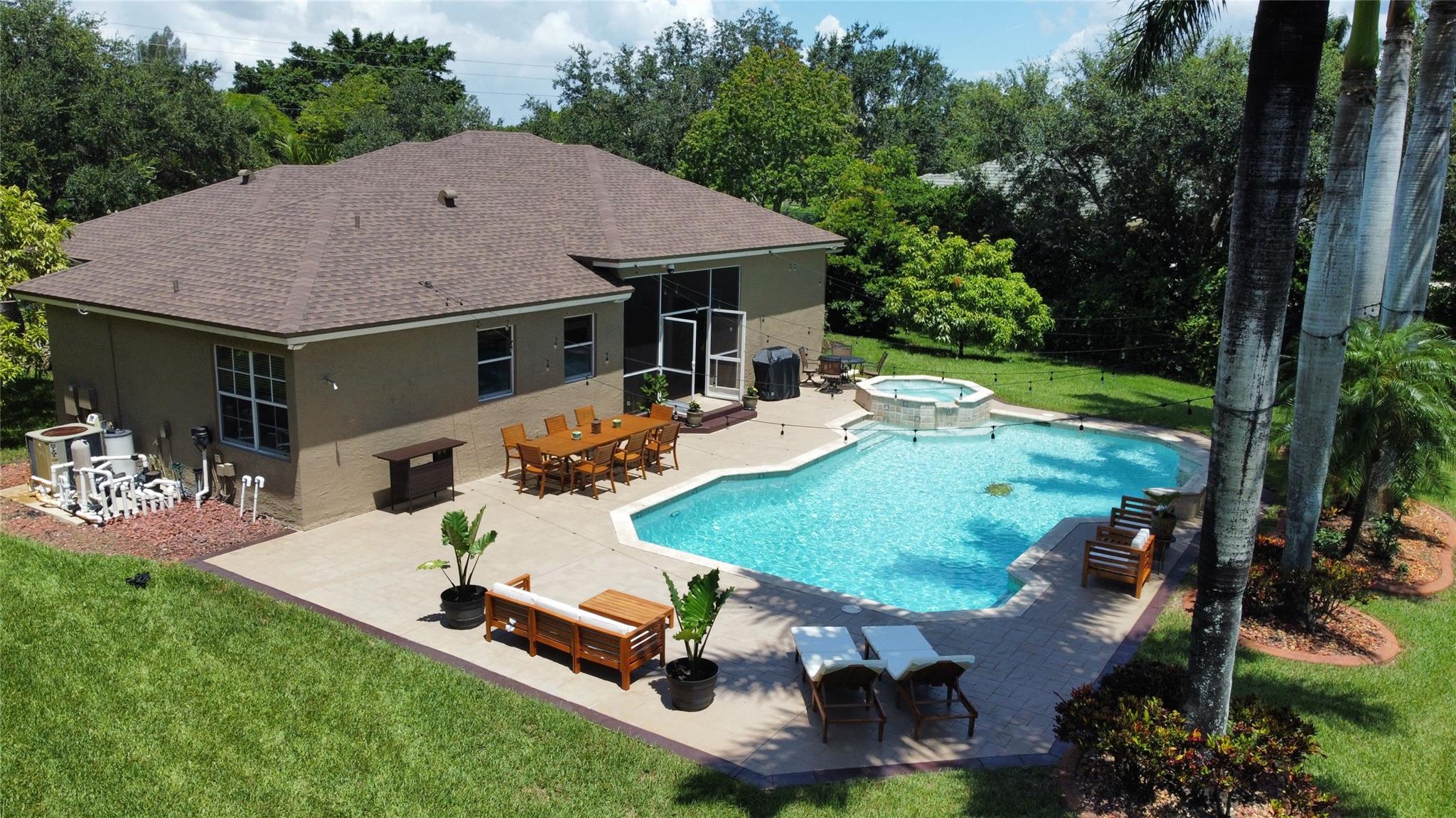 Spectacular 5 / 4 Durango Estates Home sitting on a HUGE 38,164 Sq ft. Interior Lot Surrounded by Matured Landscape for Total Privacy. Loaded with Extras, this property delivers - Covered Entry, Open Floor Plan, Volume Ceilings, Large Kitchen / Granit Counters, Stainless Appliances, 2 Primary Bedrooms Suits with His & Hers Walk In Closets, Marble MB Floors, Walk-In Shower and Bidet. Covered Patio overlooks a Huge 40x20 Heated Pool & Spa surrounded by Fully Matured Palms. Large Pool Deck for Parties, Newer Roof (2021), A/C Unit (2021), 3 Car Garage, Large Driveway with room for 10 Cars, New Impact Double Entrance Door, Hurricane Panels, Municiple Water, 20 x 10 Shed. Outdoors Lighting Design, Entertainment & Security Cameras. MAKE AN OFFER ON THIS HOME BEFORE IT IS GONE!