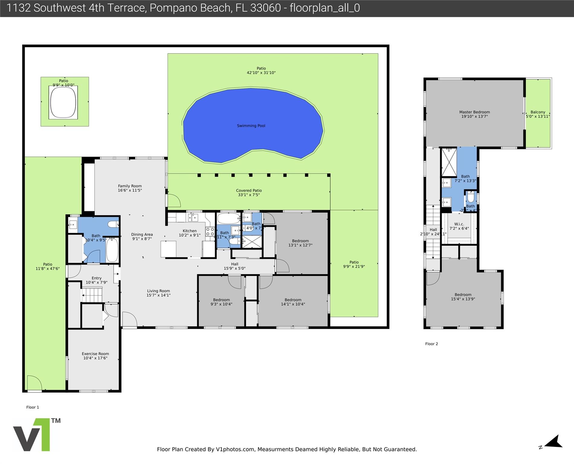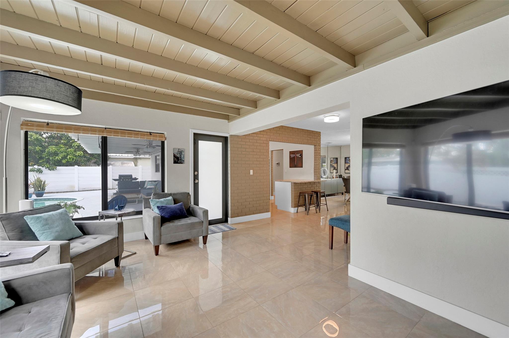 Large two story home with a pool, hot tub and great backyard perfect for entertaining in Lyons Park. Almost 2500 square ft under air living area with a formal dining area and family room. Kitchen has updated white cabinetry, granite counters, stainless steel appliances. New roof, new ac, solar panels, pvc pipes, and new hurricane impact windows and doors. One primary bedroom upstairs with vaulted ceilings, large walk in closet, double vanity, extra large shower with a deck overlooking the pool. One primary bedroom located on the first floor. Tile throughout, plenty of storage space. Close proximity to the newly renovated Pompano Beach pier and restaurants. Great home for year round living or Airbnb.