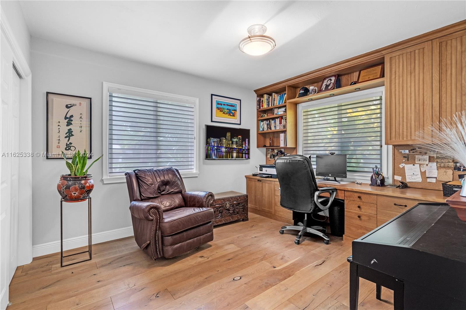 Welcome “Palm Zen Manor” - An updated & sleek single-family on a double lot in prime south Gables location. This residence boasts 1,661 sq ft with an open concept design & tons of natural light opening to relaxing garden views throughout. The moment you walk up you are greeted by a koi pond & fountain. When you step inside the home is decked w/ beautiful Oak Wood Floors, a new AC unit, updated plumbing, impact windows & doors, newer kitchen w/ S/S appliances. Spacious bedrooms & primary suite. The meticulously landscaped yard is a serene escape, ideal for relaxing or hosting gatherings & is the ultimate private escape. The home has an expansive deck ready for a possible addition. Covered lenai with sunsetter awning. Room for pool. Minutes from South Miami & Downtown Coral Gables.