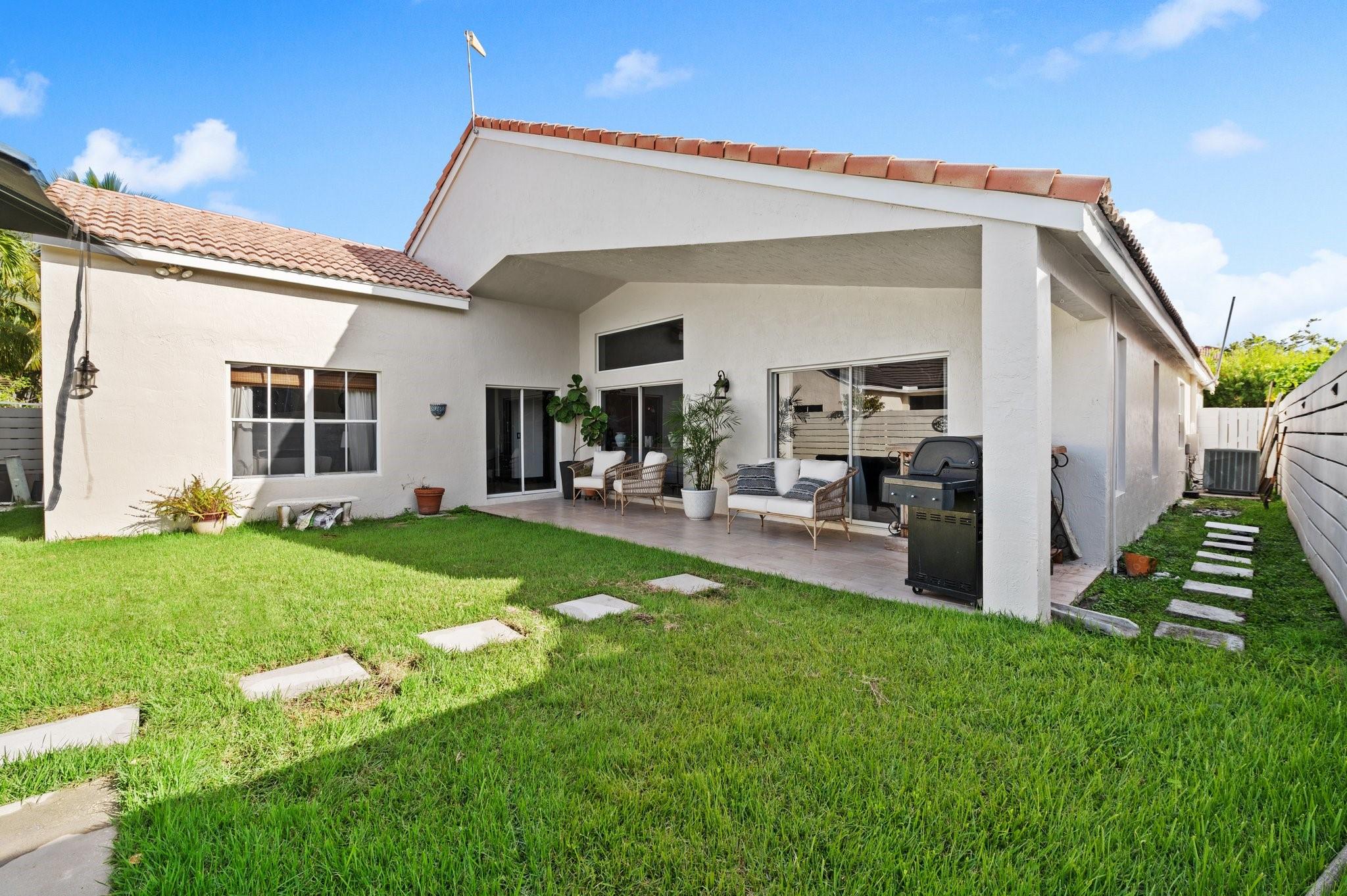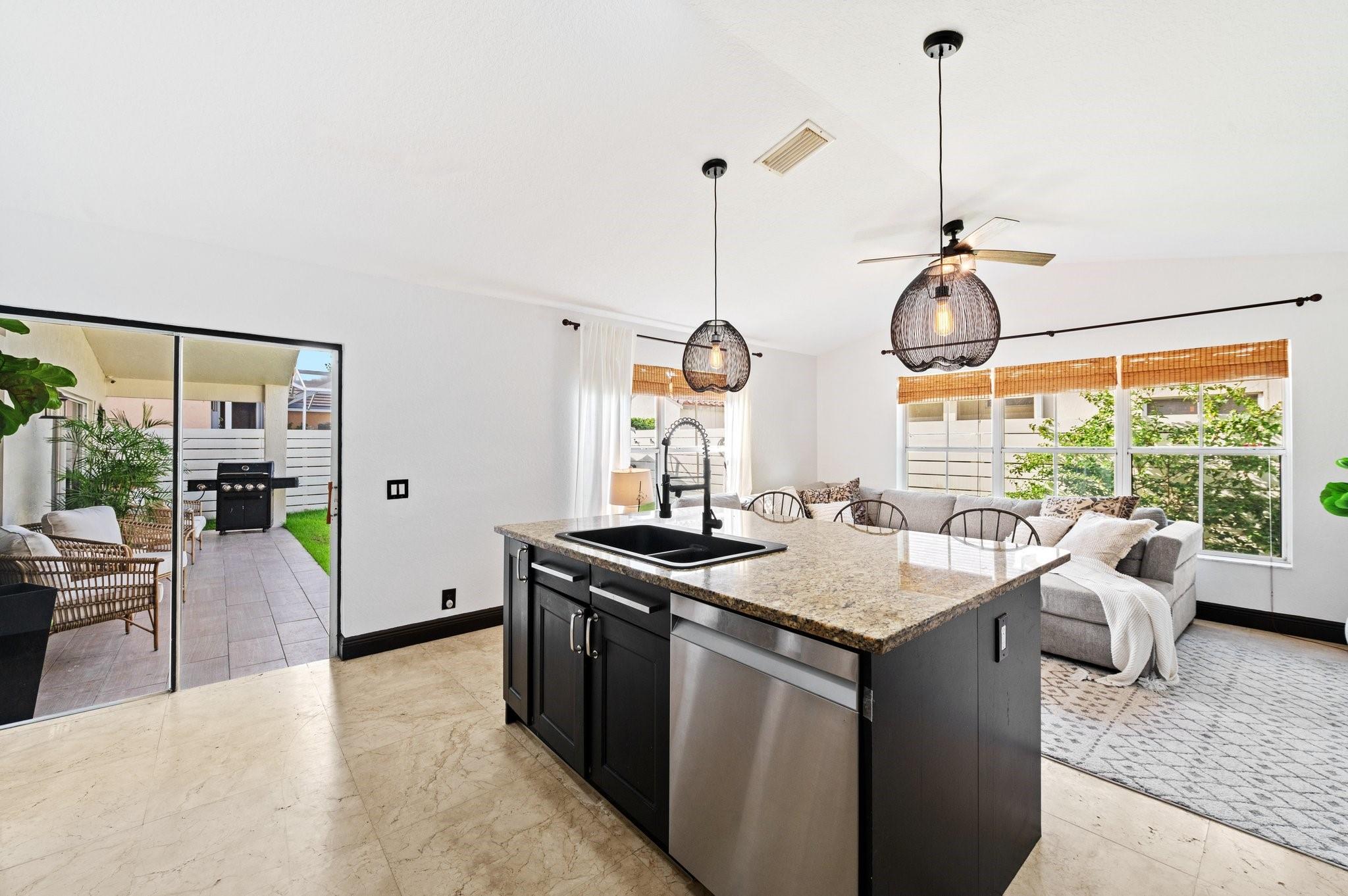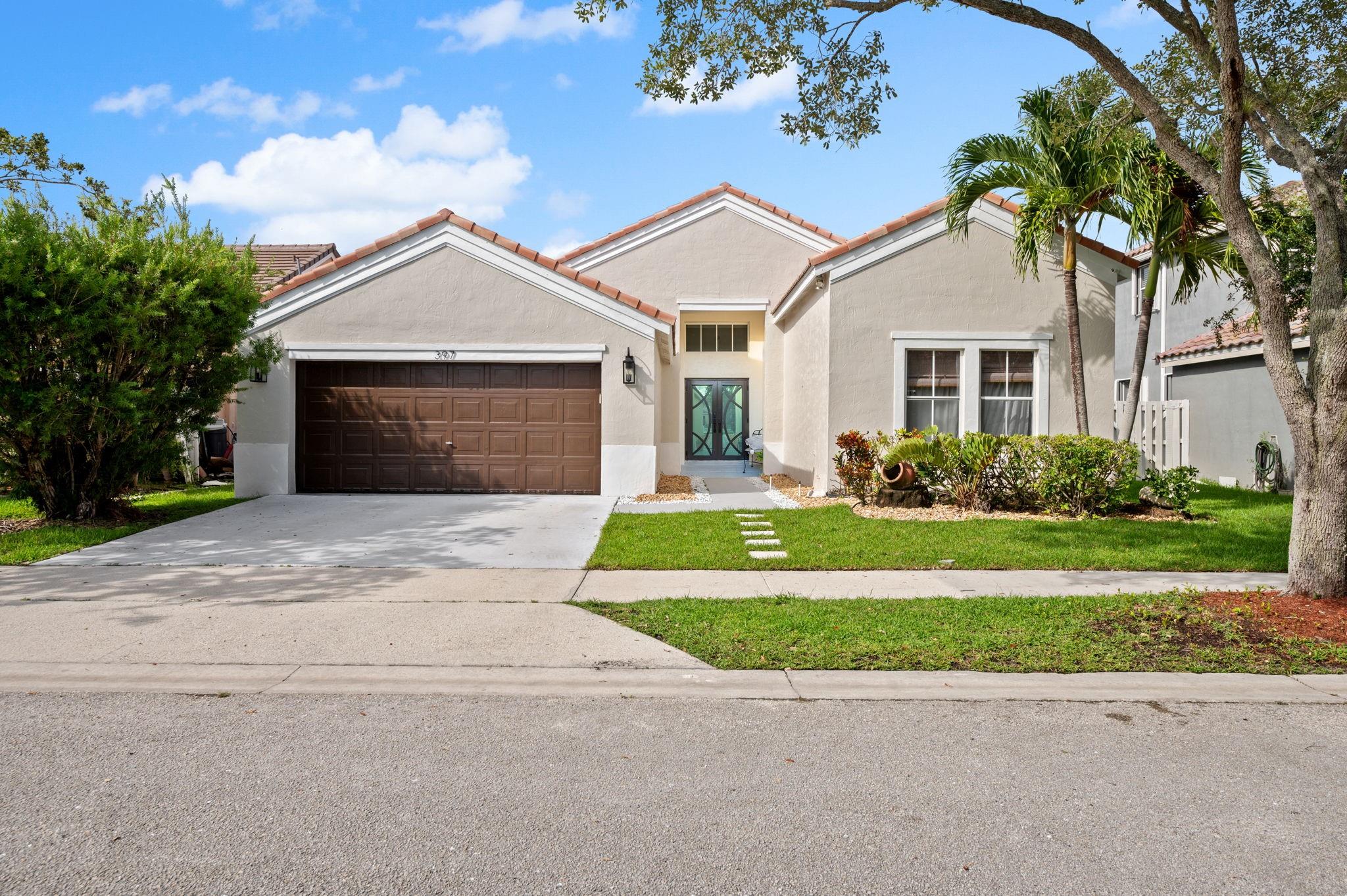 Gorgeous and highly upgraded. This one story split floor plan home boasts gorgeous new beautiful impact glass front doors, an updated open concept kitchen w/ wood cabinet, granite countertop, stainless steel appliances & counter bar that opens to the family rm. Marble floors in living areas, porcelain tile & wood laminate in bdrms. Formal dining rm & spacious light & bright liv. areas w/glass doors to private backyard w/privacy fence, covered patio w/ jacuzzi spa. Beautiful remodeled baths, primary suite w/ soaking tub, large spa style shower & dual vanities. Wardrobe style closets, high ceilings w/ lots of light, front loading washer & dryer & laundry sink. Laundry rm currently a private office. Covered patio w/ tile floor. Freshly painted exterior. Community amenities & A-schools!