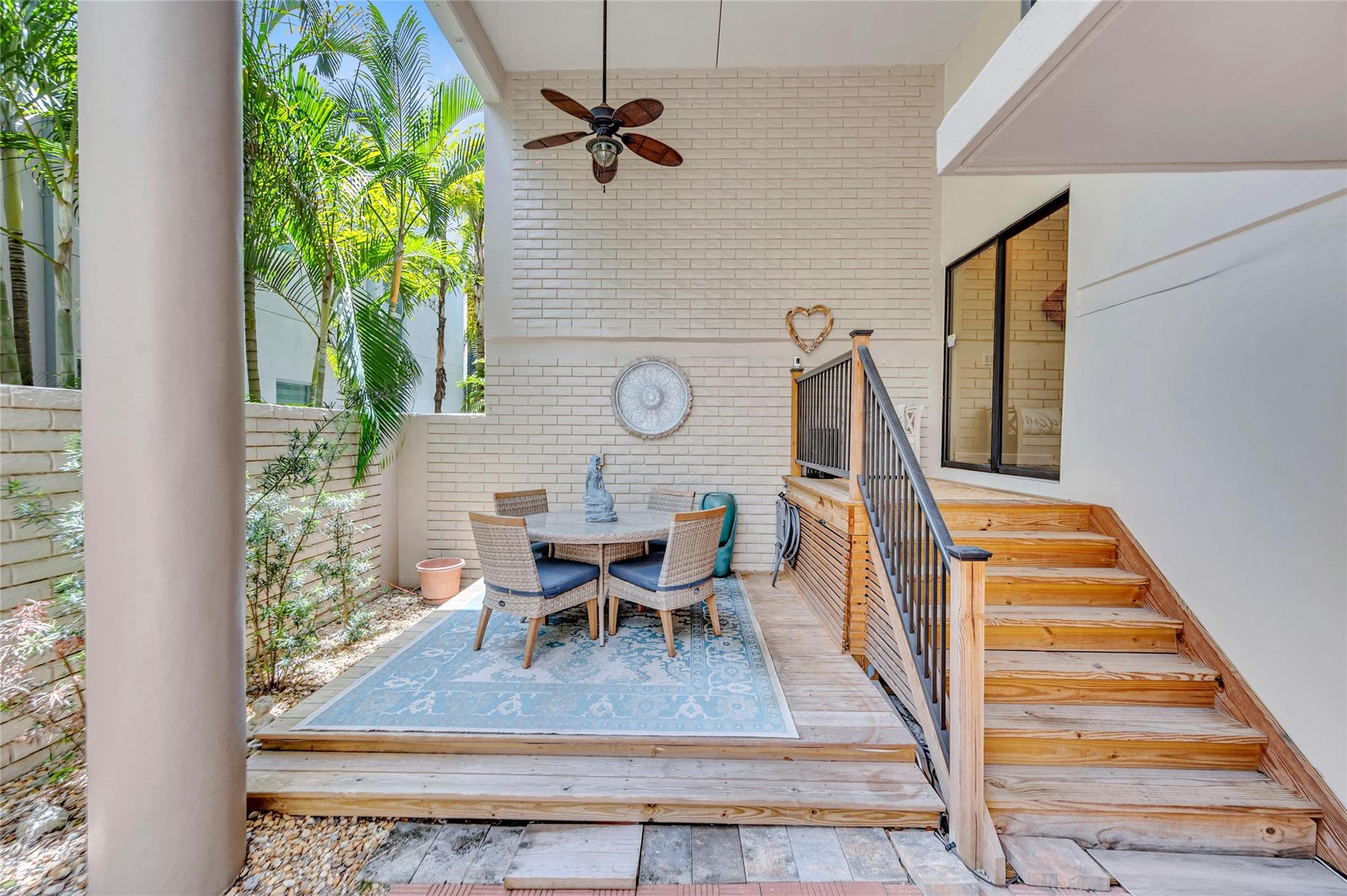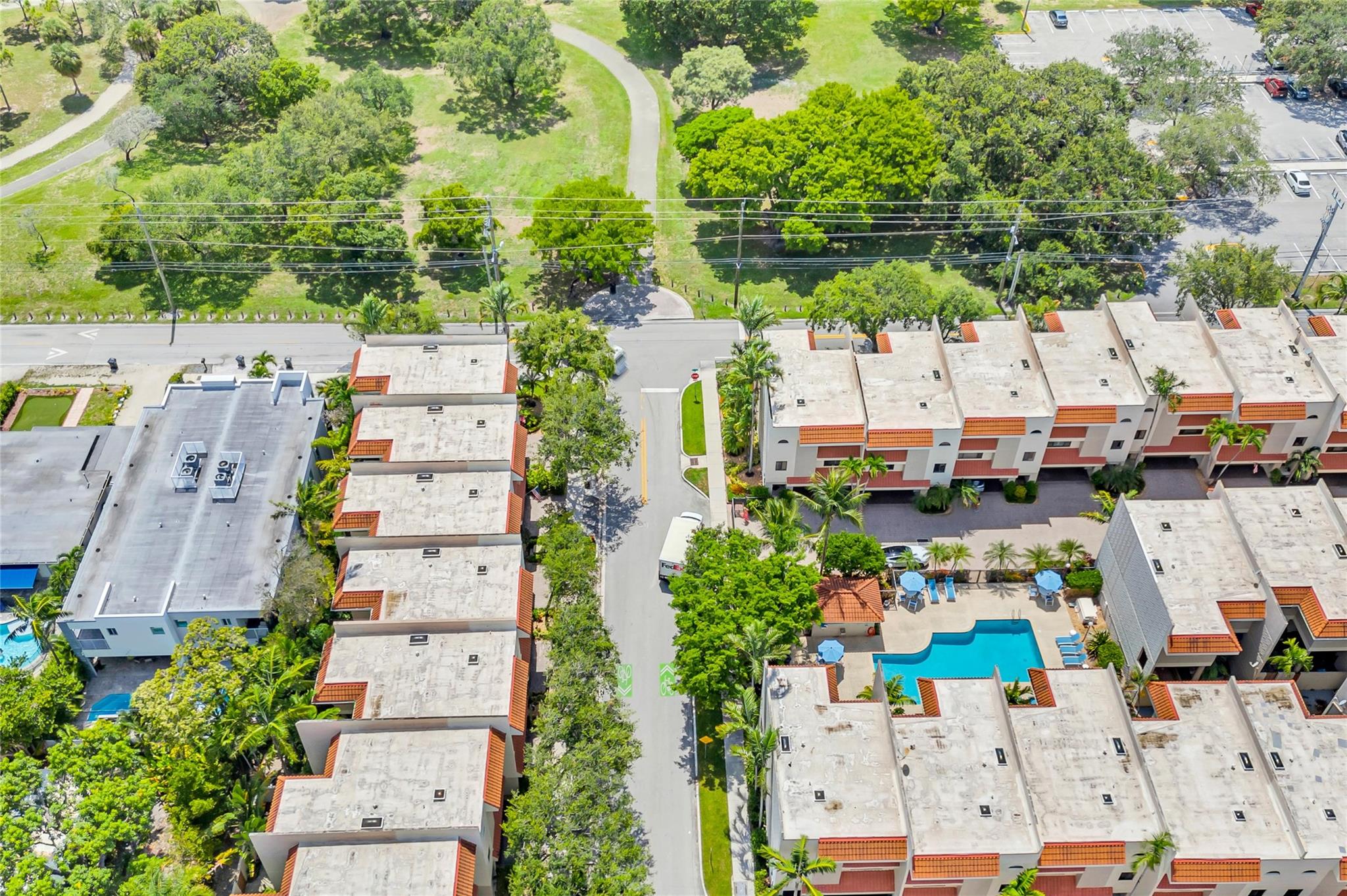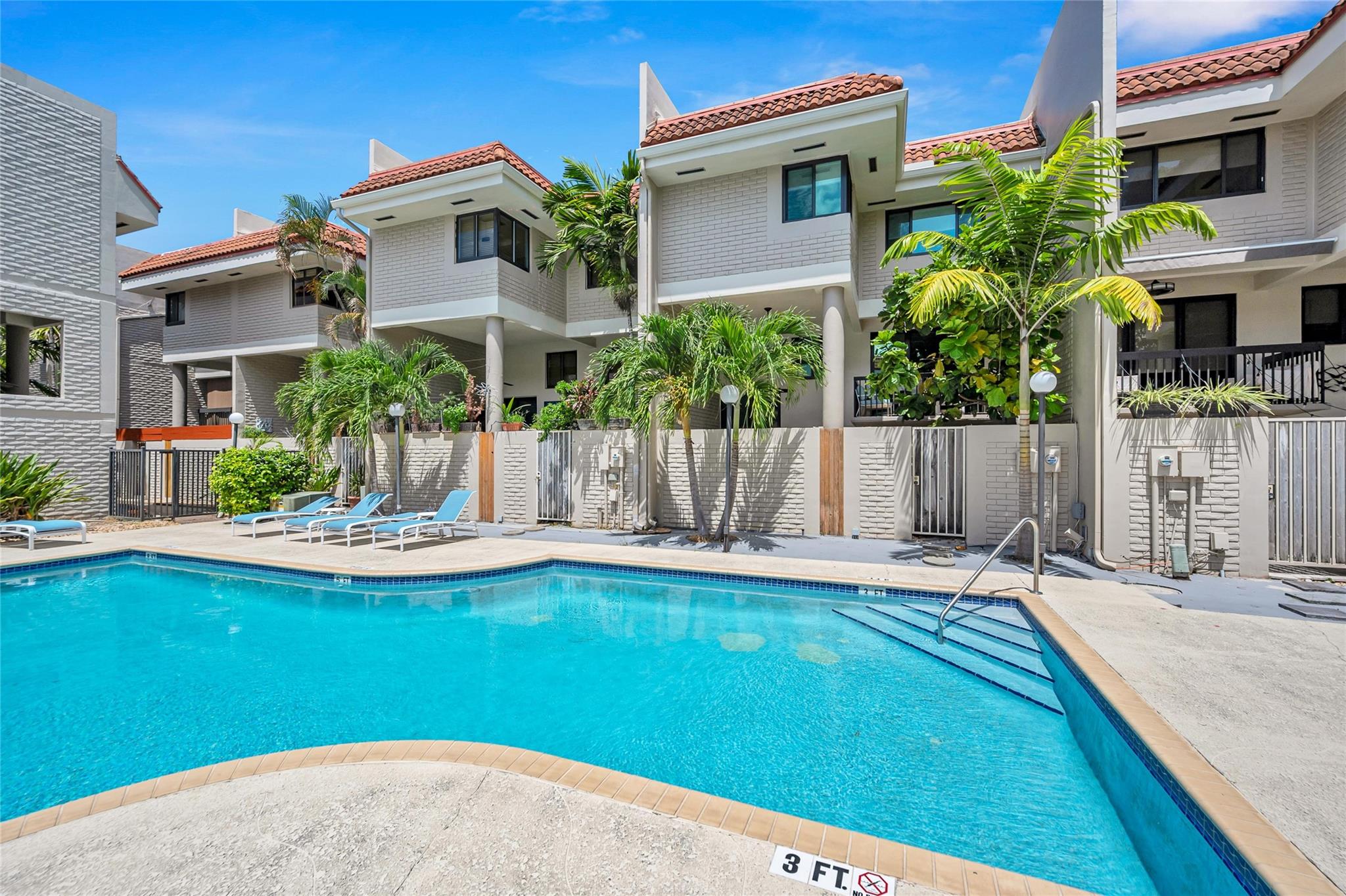 This fabulous, light-filled townhouse offers three bedrooms, its own driveway, and a two-car garage. Designer finishes adorn the spacious living-dining room and modern open kitchen, with a large window, pantry, and breakfast bar. Also, a renovated powder room and an open stairwell with skylights. Wide sliders open to a balcony overlooking a newer terraced deck and private walled courtyard. The first-floor foyer provides access to the wide garage and under-stair closet. The top floor features a spacious primary suite with a large shower and closet, plus a full-size laundry. A guest room, full guest bath, and potential 3rd bedroom, currently used as a den, are also on this level. The roof is recently new, and the home is next to Holiday Park, a library, and the Panthers' Iceplex.
