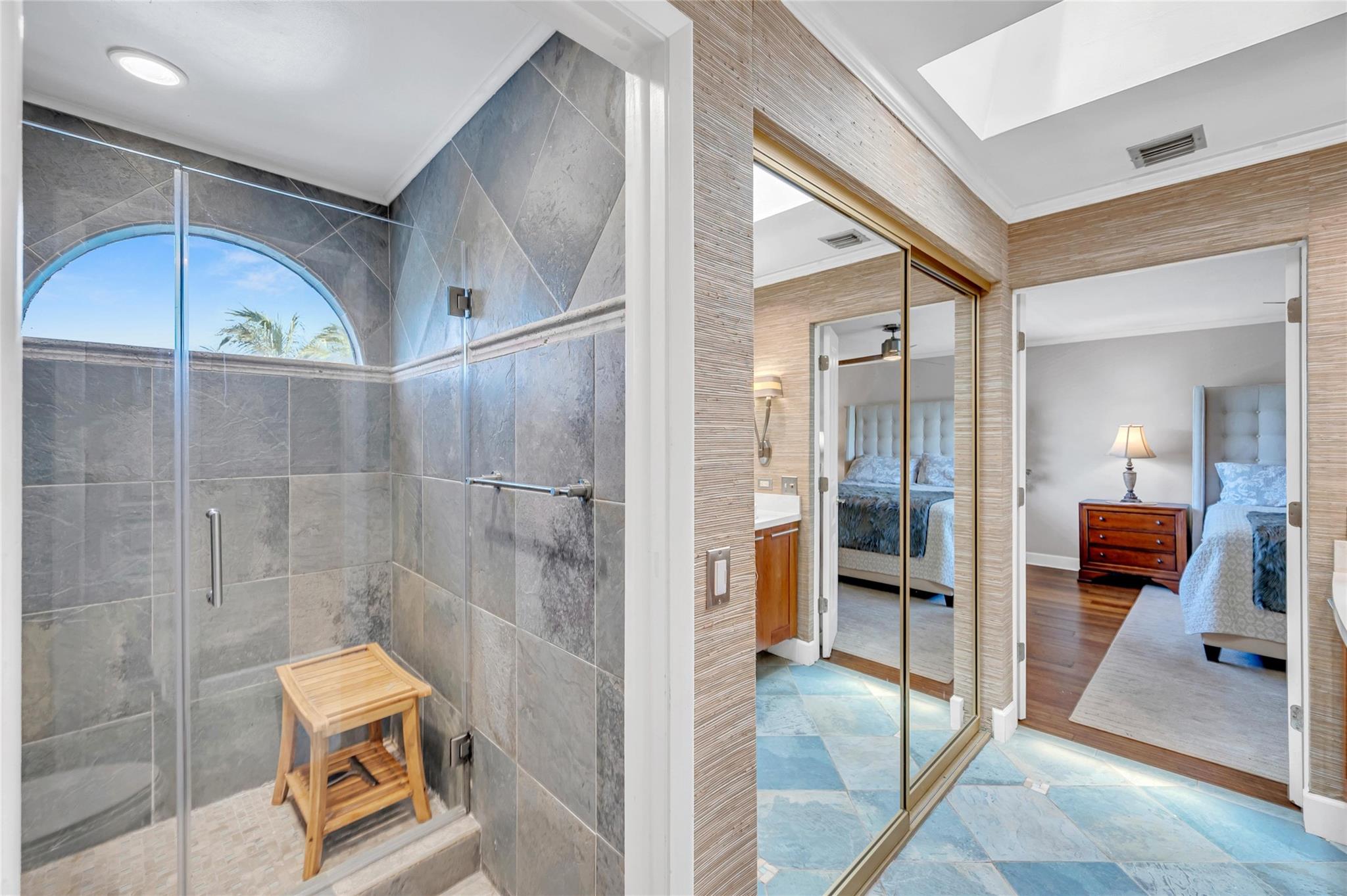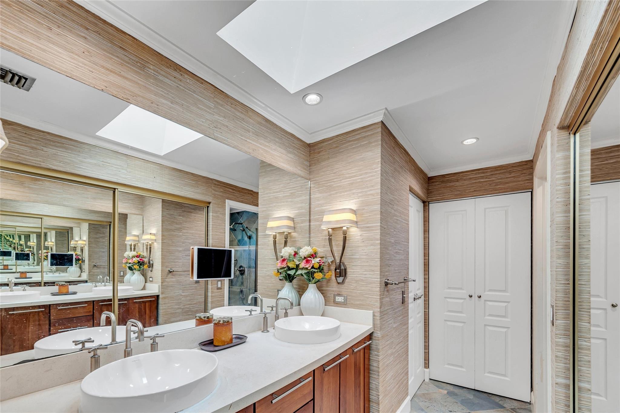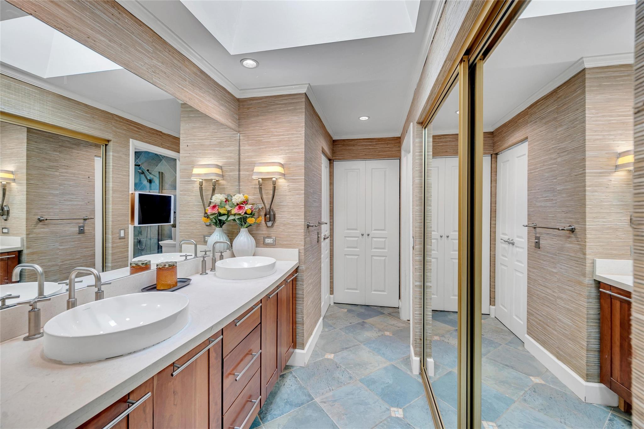 This fabulous, light-filled townhouse offers three bedrooms, its own driveway, and a two-car garage. Designer finishes adorn the spacious living-dining room and modern open kitchen, with a large window, pantry, and breakfast bar. Also, a renovated powder room and an open stairwell with skylights. Wide sliders open to a balcony overlooking a newer terraced deck and private walled courtyard. The first-floor foyer provides access to the wide garage and under-stair closet. The top floor features a spacious primary suite with a large shower and closet, plus a full-size laundry. A guest room, full guest bath, and potential 3rd bedroom, currently used as a den, are also on this level. The roof is recently new, and the home is next to Holiday Park, a library, and the Panthers' Iceplex.