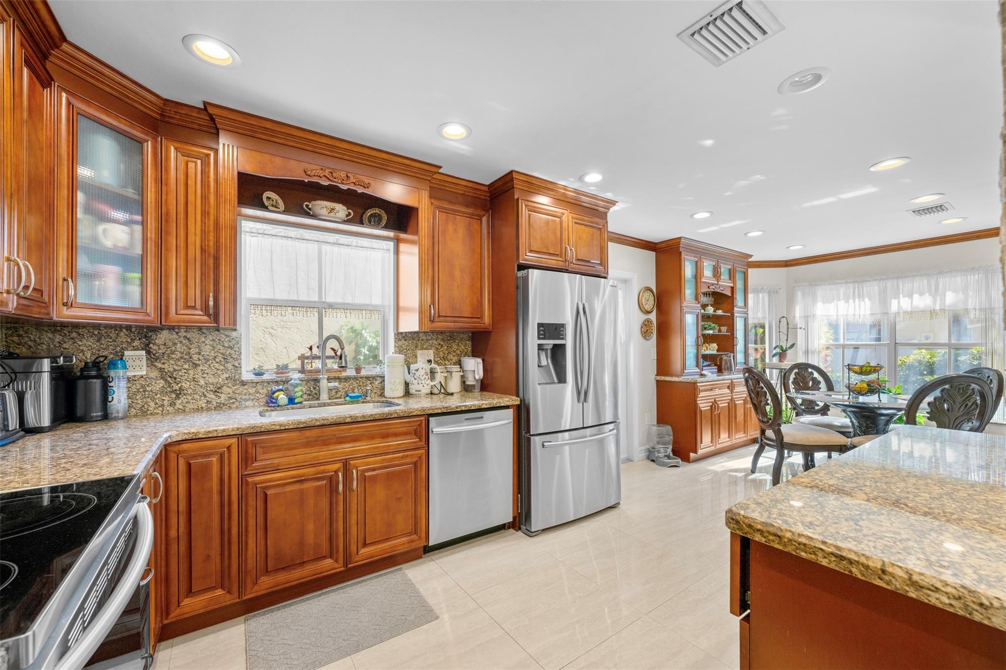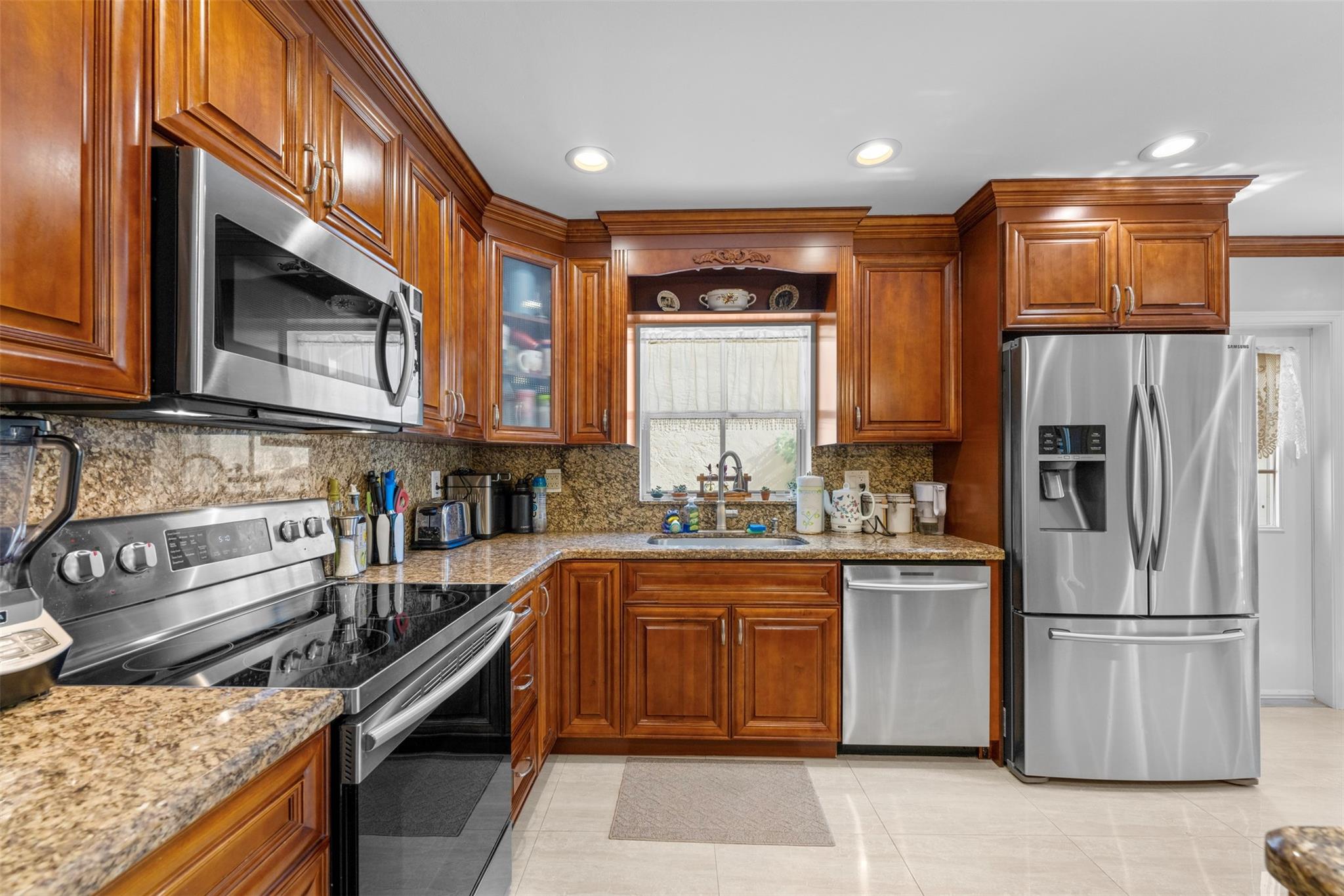 Welcome to L’etoile at Emerald Pointe in the heart of Hollywood. A split floor plan, 3 bedroom/2.5 bath all renovated with porcelain flooring throughout main areas, open concept kitchen with a beautiful island featuring stone pillars, granite countertops & backsplash, stainless steel appliances, cozy breakfast area. Master suite on main floor, bathroom with roman tub, spacious family room. Office with tasteful custom made furniture, A/C 2018, water heater 2021. Cozy fenced paved back yard & great for entertainment. Accordion shutters, Community Pool, exercise room. Good schools. Emerald hills walking distance. Near oakwood plaza shopping, restaurants, houses of worship, hard rock Casino and FLL Airport. Low HOA includes cable & fiber optic internet. Night security patrol 7 days/week.