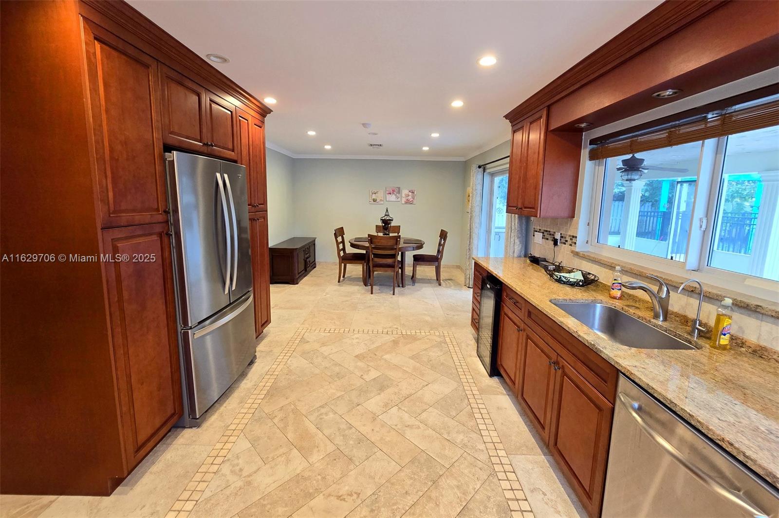 Motivated Seller: This single-family home has three bedrooms and three bathrooms and is situated in a very convenient area in Fort Lauderdale. It features a heated saltwater pool and hot tub area, direct access to a full bathroom, and a spacious family/Florida room with a built-in grill. The fenced-in lot is perfect for safely securing family and pets. The property also features a paved circular driveway on a quiet street with tasteful landscaping. The spacious kitchen has stainless steel appliances, a mini wine fridge, an eating area leading to the pool, and a Florida room; excellent lines of sight oversee the family room and pool area. And the best part? The property is just minutes away from the vibrant heart of Fort Lauderdale, offering a wealth of amenities and attractions.