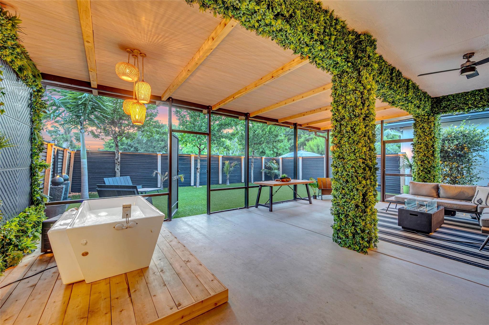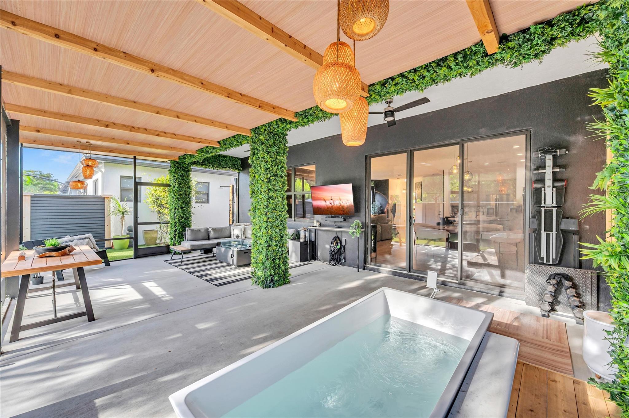 STUNNING MODERN STYLE -2019 built 2-story home in private gated community with upgraded modern finishes. Open floor plan with 10’ ceilings on both floors add to spaciousness. Huge primary suite includes walk-in closet and large bath with duel sinks, tub and shower. Extended 20’ x 30’ covered screened patio. Backyard is fenced with turf and nice trees. Custom window treatments, light fixtures, upgraded Frigidaire Gallery appliances, 2-car garage has Container Store shelving. 4th bedroom has been made into a spa with sauna (easily converted back) Energy-efficient construction, Carrier air system, wired security system, gas tankless water heater/dryer. All impact doors/windows. Largest floor plan in community. Located close to beaches, Dania Point, Hard Rock, major highways, Airport and Port