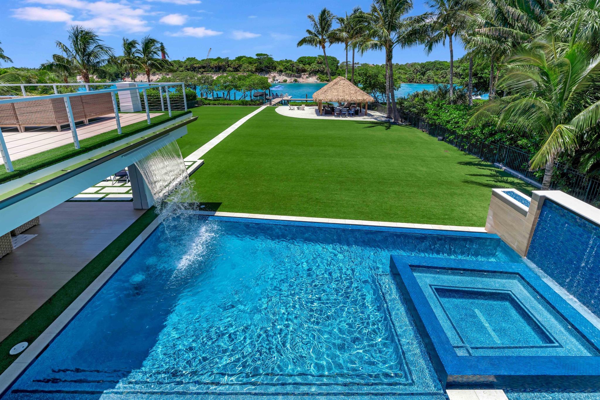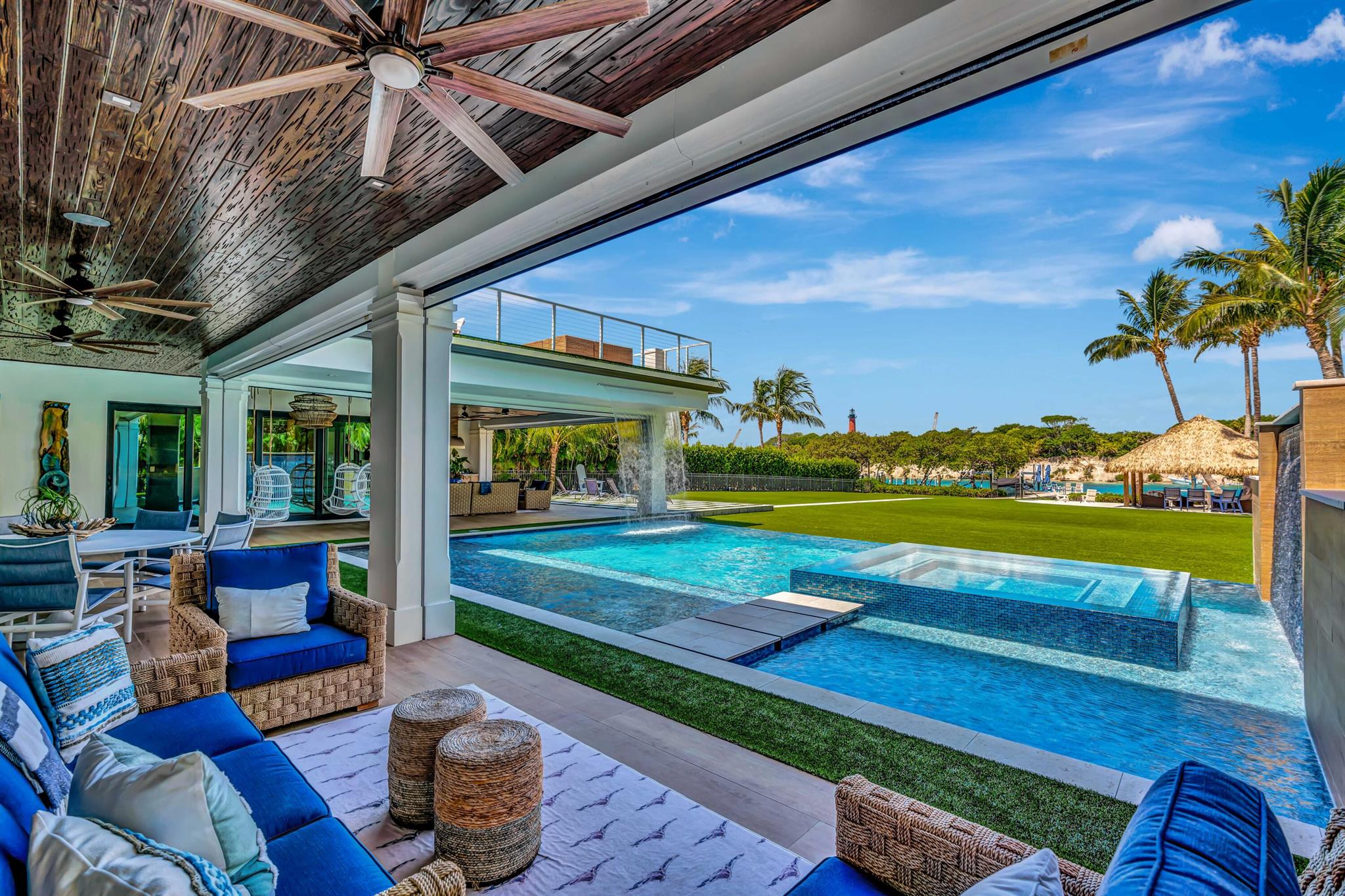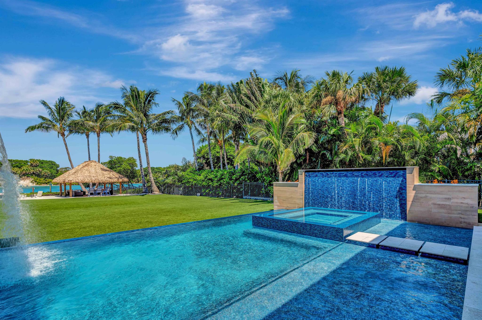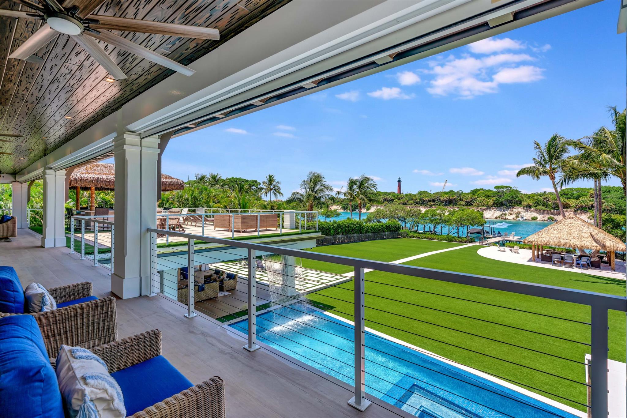 Looking for a waterfront property that checks all the boxes? Welcome to the best of Jupiter Inlet Colony - directly on the crystal clear, blue water of the Intracoastal Waterway, just a few hundred yards from the Jupiter Inlet. This amazing two-story residence, designed by Dennis Rainho of YRA Design Architects, and built in 2023 by Tony Hernandez of High Tide Waterfront Properties, defines today's ultra-luxury real estate for those with an active lifestyle. In fact, the entire property has a solar power back-up system that eliminates the need for a back-up generator. The 3/4 acre lot provides plenty of space for entertainment and relaxation. The pool and spa have unique features like a waterfall spillway from the 2nd floor deck, custom fire bowls, and a stepping stone bridge to the