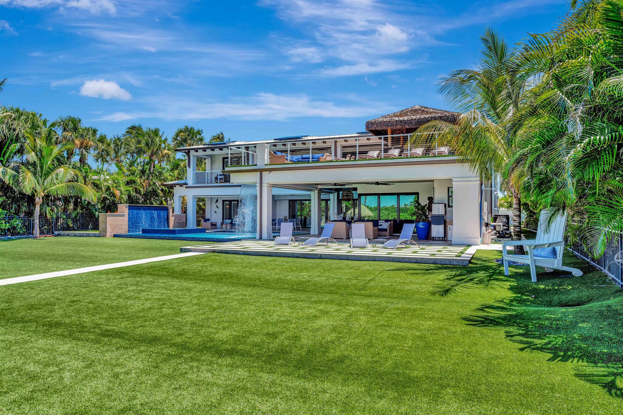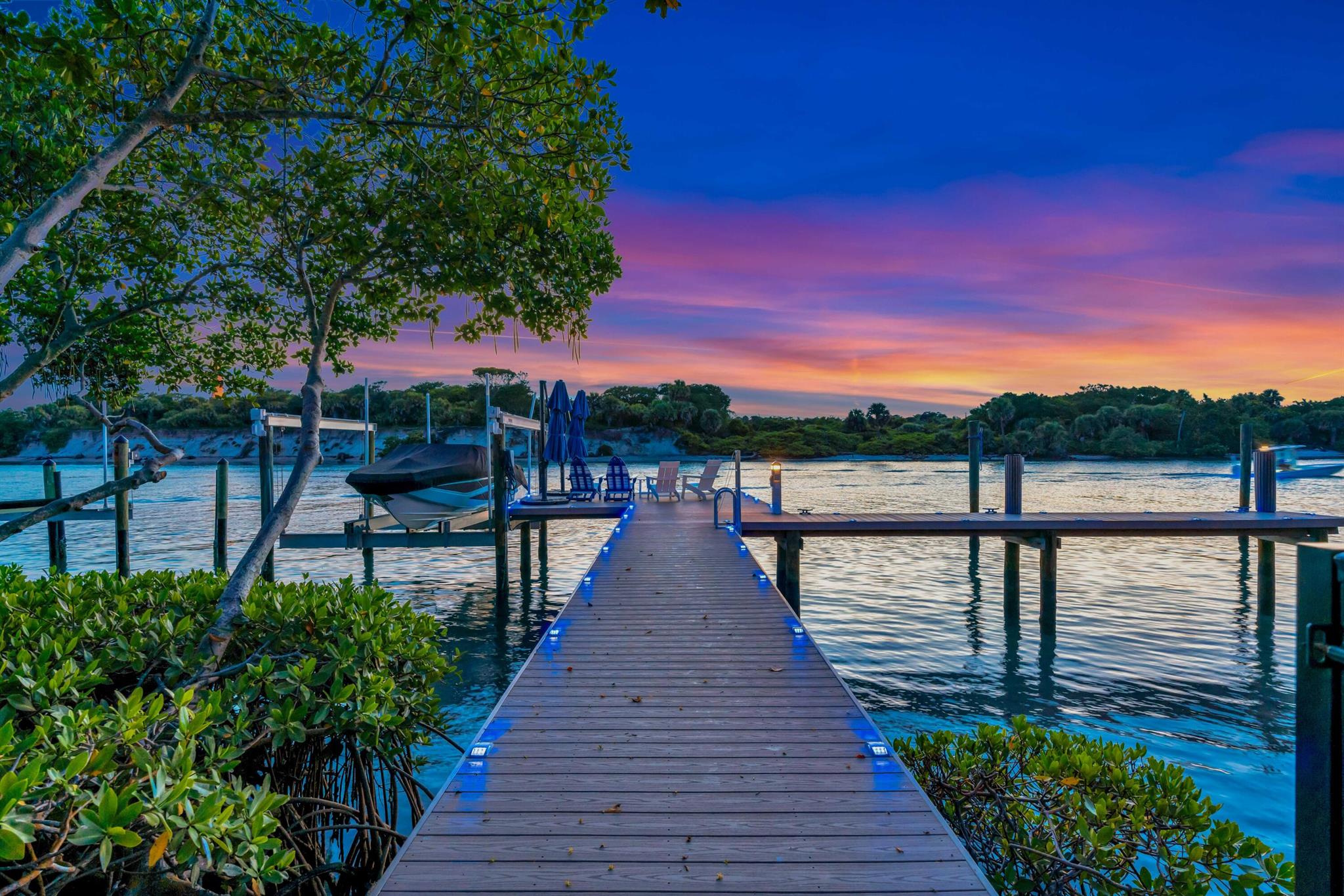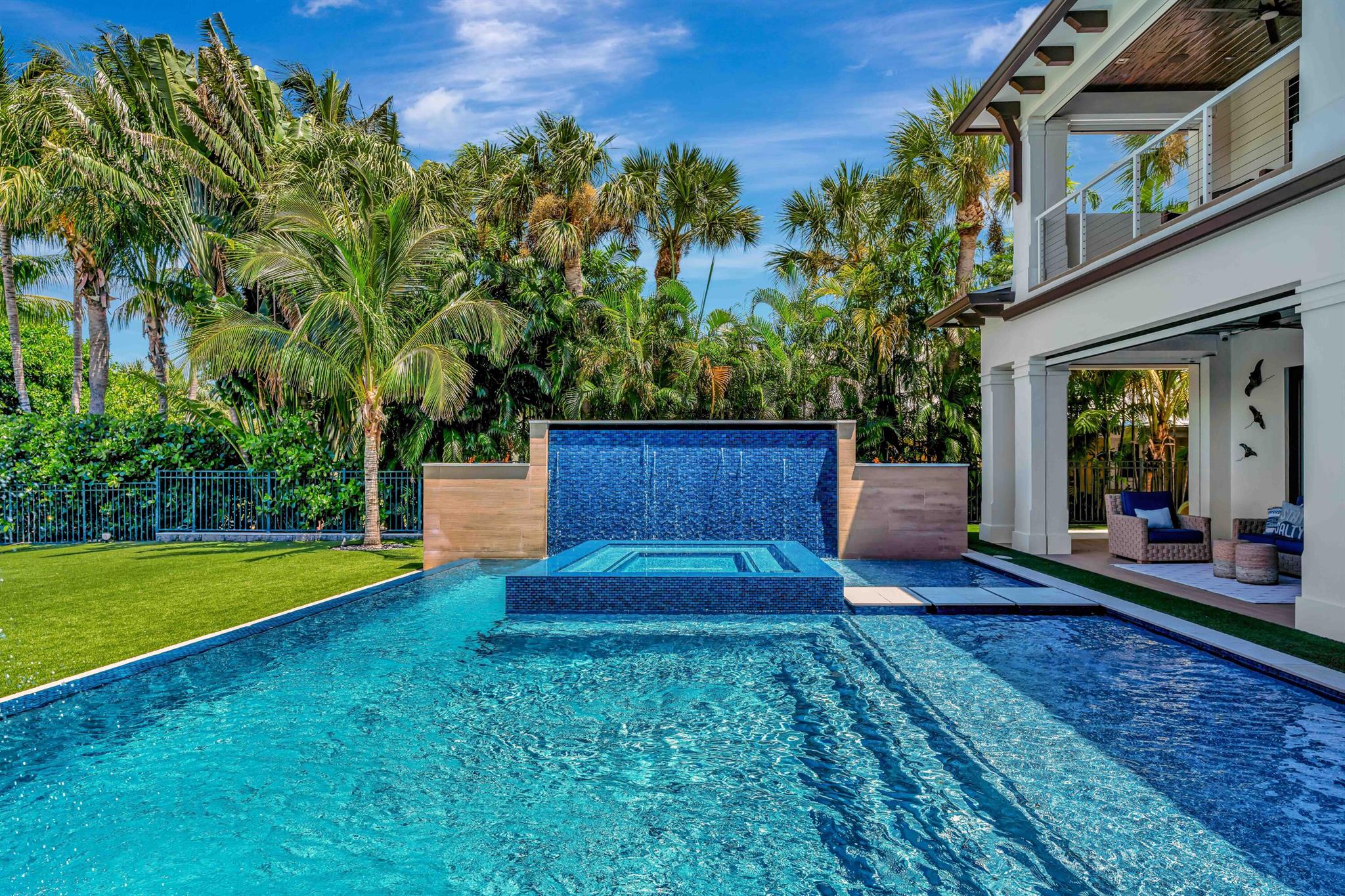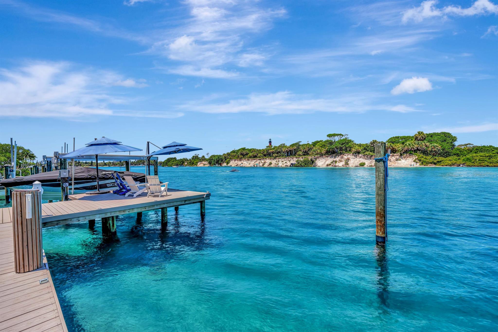 Looking for a waterfront property that checks all the boxes? Welcome to the best of Jupiter Inlet Colony - directly on the crystal clear, blue water of the Intracoastal Waterway, just a few hundred yards from the Jupiter Inlet. This amazing two-story residence, designed by Dennis Rainho of YRA Design Architects, and built in 2023 by Tony Hernandez of High Tide Waterfront Properties, defines today's ultra-luxury real estate for those with an active lifestyle. In fact, the entire property has a solar power back-up system that eliminates the need for a back-up generator. The 3/4 acre lot provides plenty of space for entertainment and relaxation. The pool and spa have unique features like a waterfall spillway from the 2nd floor deck, custom fire bowls, and a stepping stone bridge to the