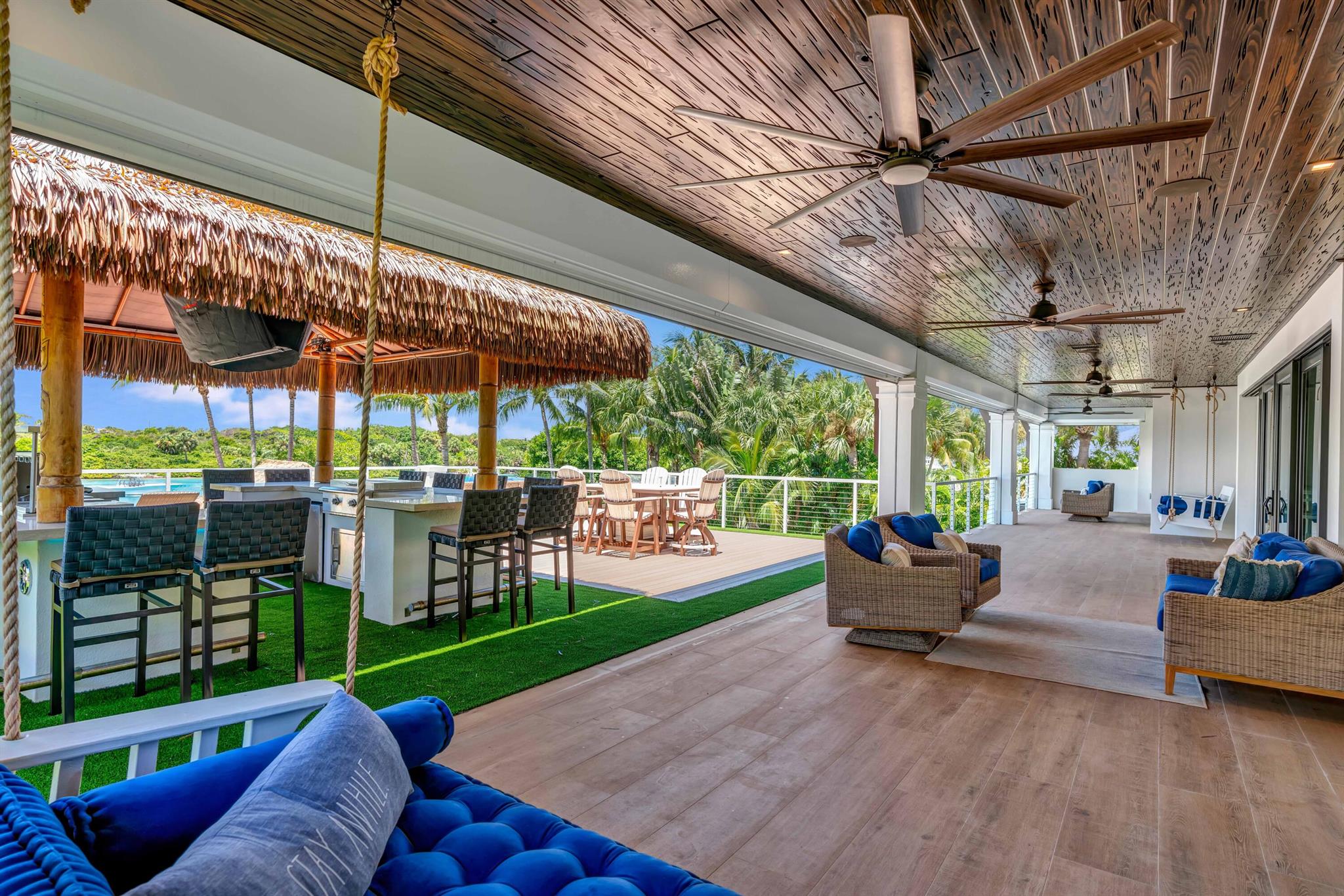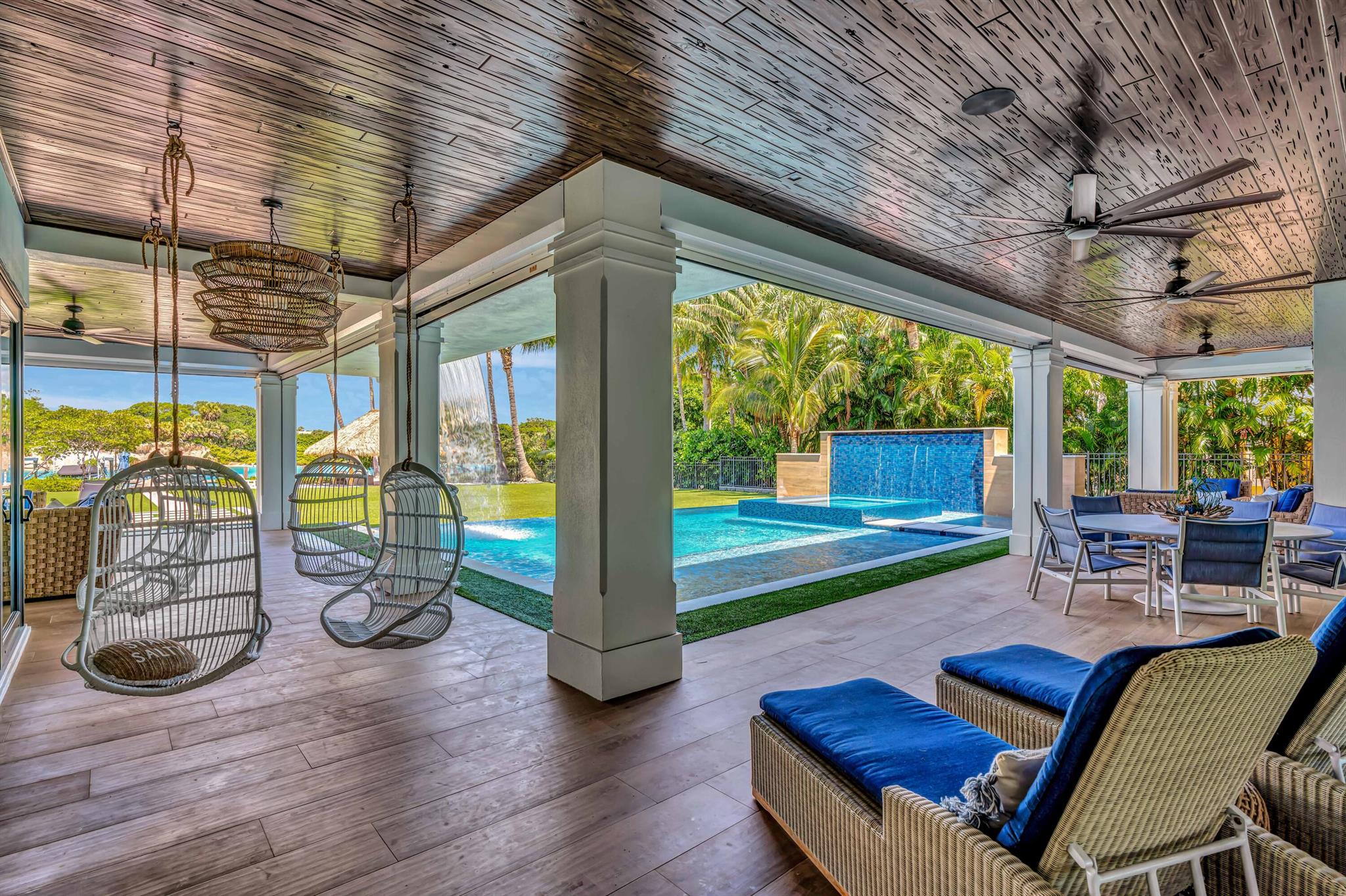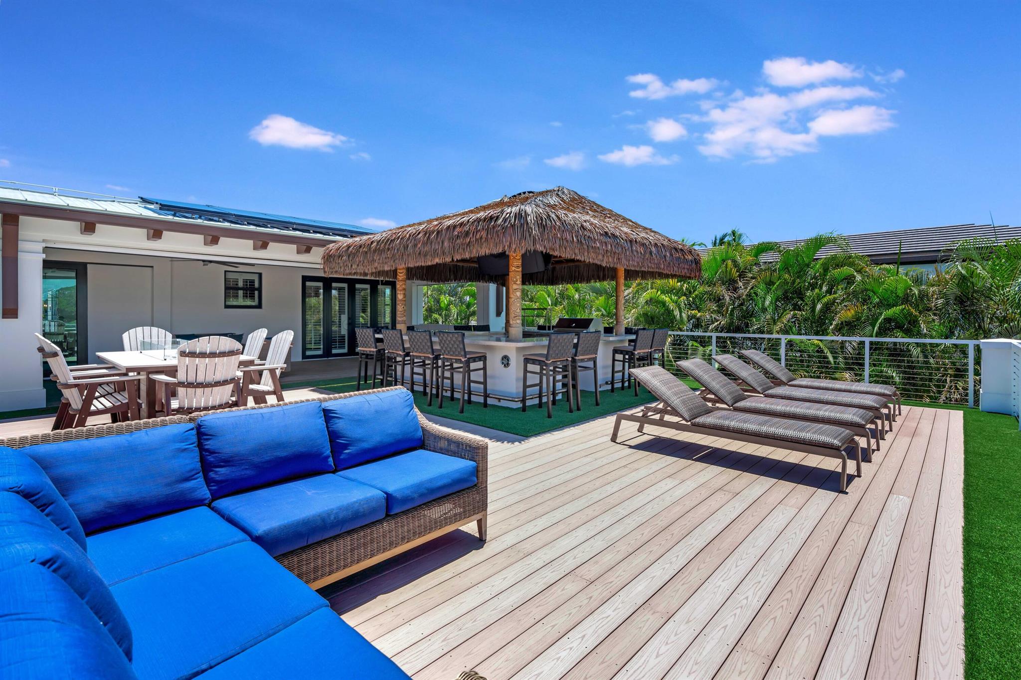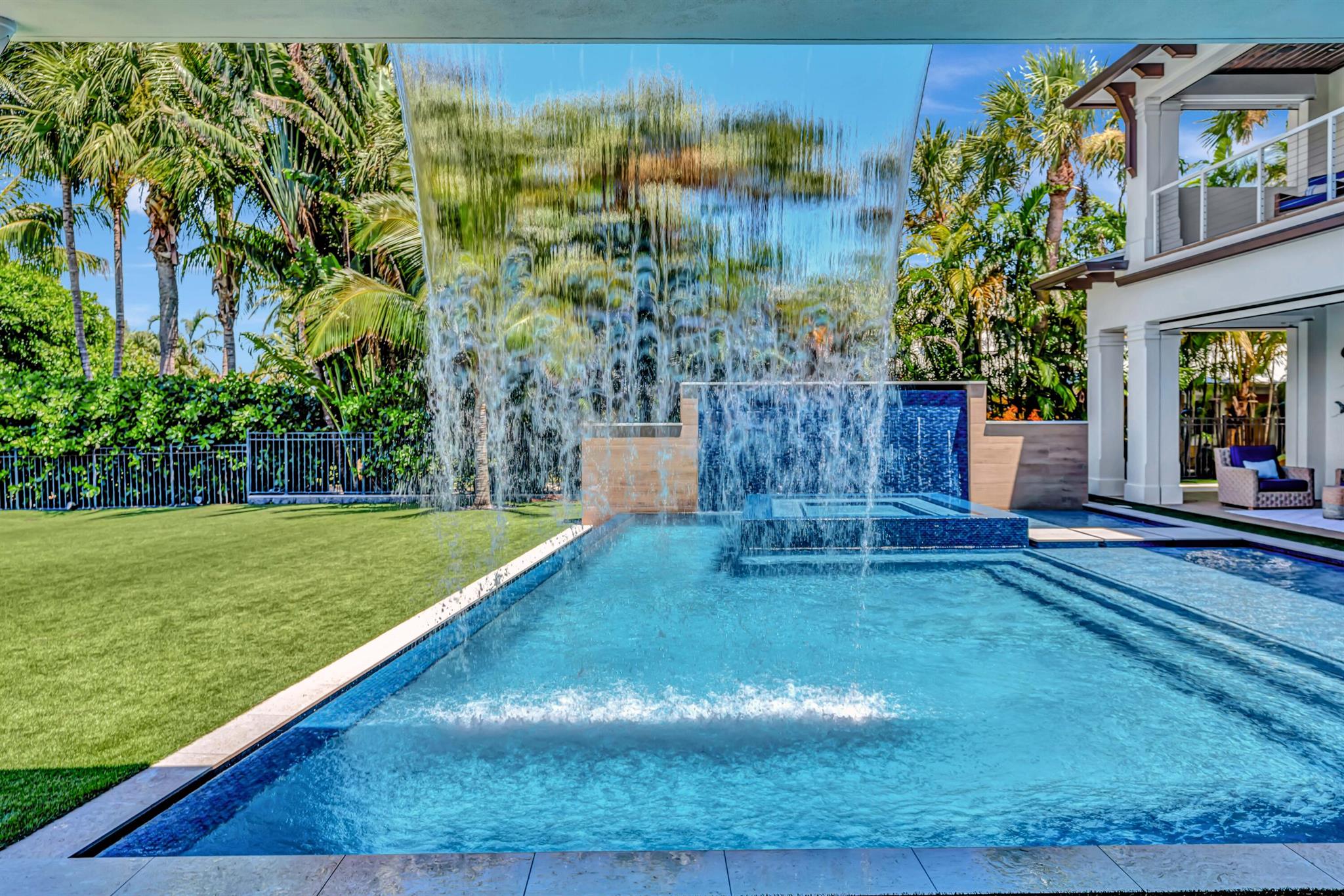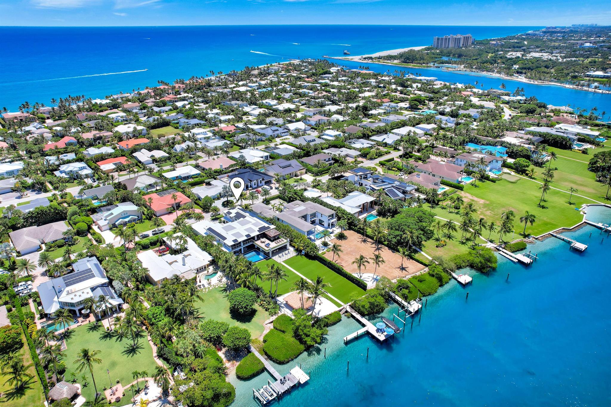 Looking for a waterfront property that checks all the boxes? Welcome to the best of Jupiter Inlet Colony - directly on the crystal clear, blue water of the Intracoastal Waterway, just a few hundred yards from the Jupiter Inlet. This amazing two-story residence, designed by Dennis Rainho of YRA Design Architects, and built in 2023 by Tony Hernandez of High Tide Waterfront Properties, defines today's ultra-luxury real estate for those with an active lifestyle. In fact, the entire property has a solar power back-up system that eliminates the need for a back-up generator. The 3/4 acre lot provides plenty of space for entertainment and relaxation. The pool and spa have unique features like a waterfall spillway from the 2nd floor deck, custom fire bowls, and a stepping stone bridge to the