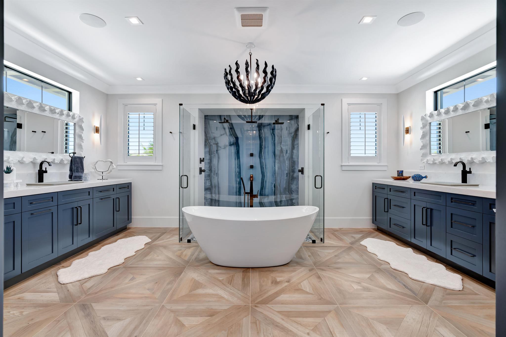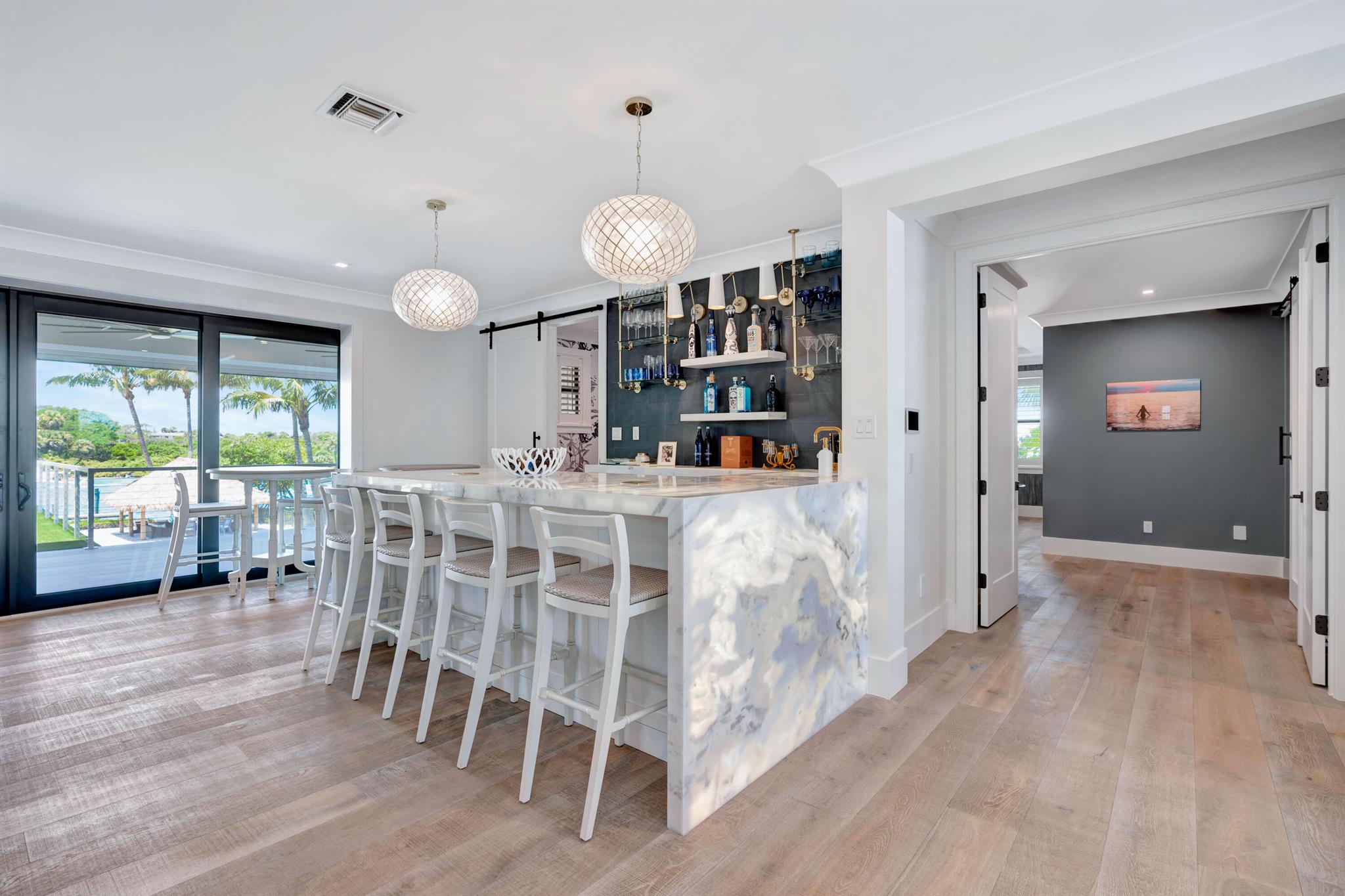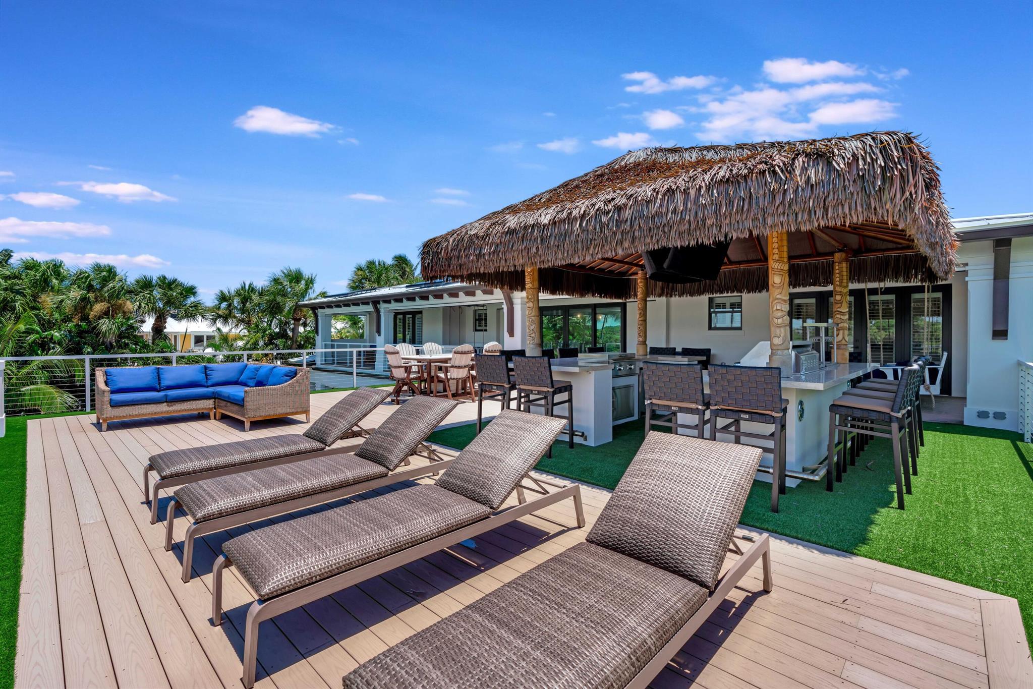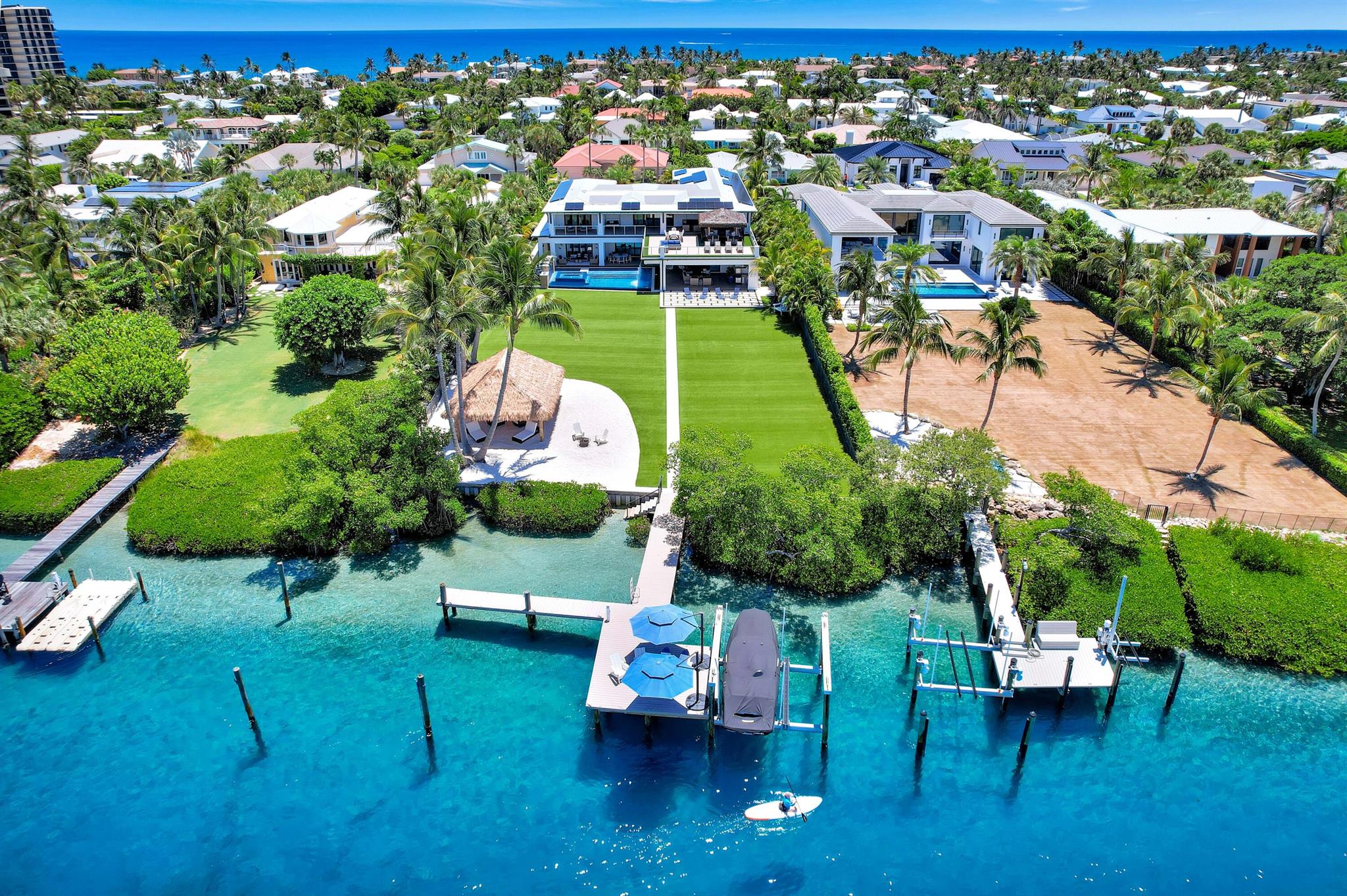 Looking for a waterfront property that checks all the boxes? Welcome to the best of Jupiter Inlet Colony - directly on the crystal clear, blue water of the Intracoastal Waterway, just a few hundred yards from the Jupiter Inlet. This amazing two-story residence, designed by Dennis Rainho of YRA Design Architects, and built in 2023 by Tony Hernandez of High Tide Waterfront Properties, defines today's ultra-luxury real estate for those with an active lifestyle. In fact, the entire property has a solar power back-up system that eliminates the need for a back-up generator. The 3/4 acre lot provides plenty of space for entertainment and relaxation. The pool and spa have unique features like a waterfall spillway from the 2nd floor deck, custom fire bowls, and a stepping stone bridge to the