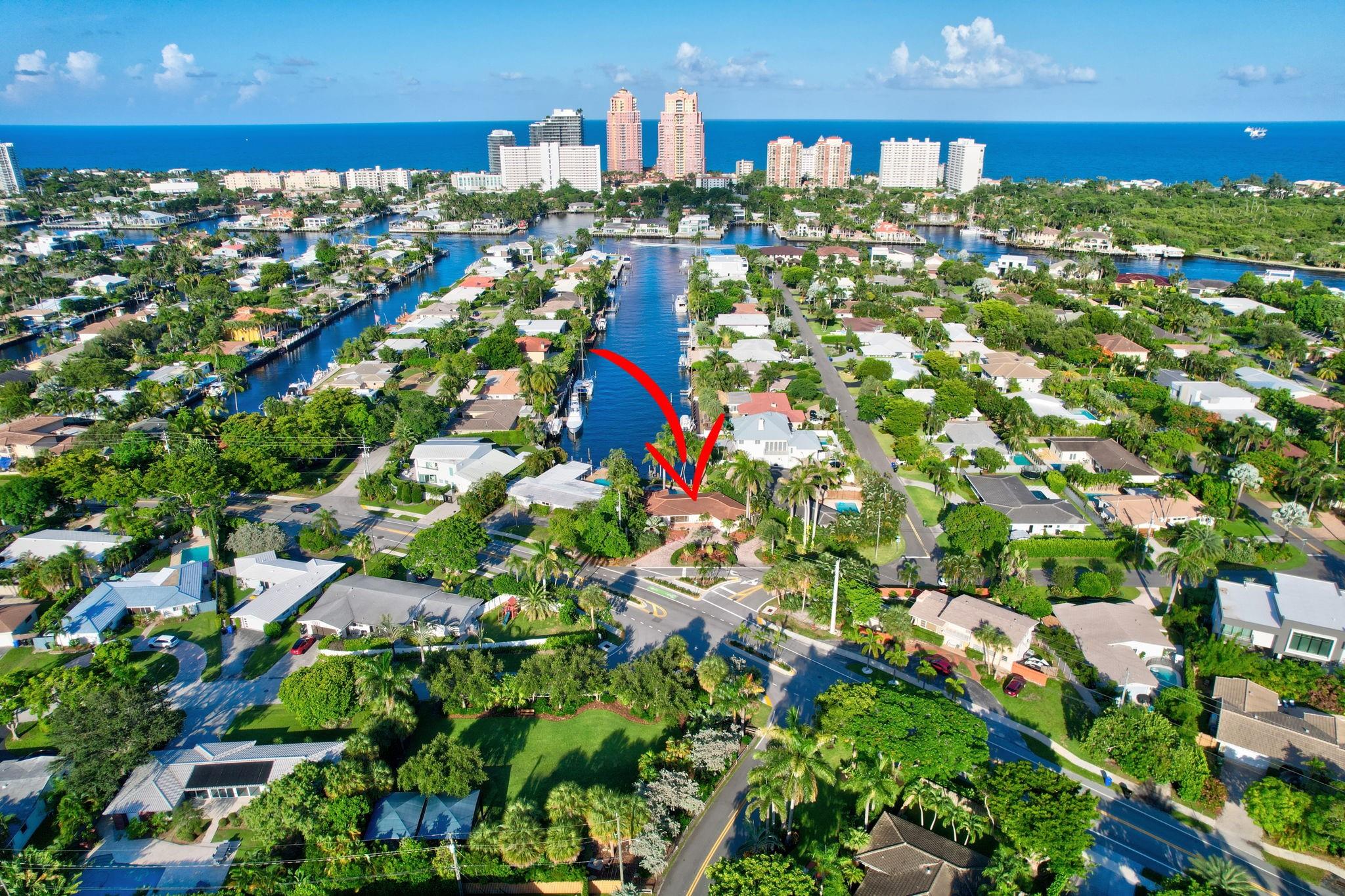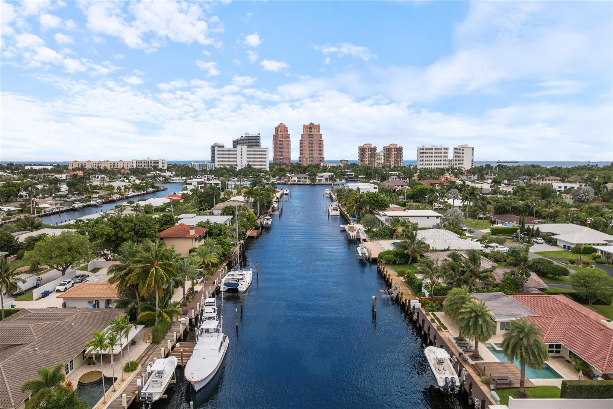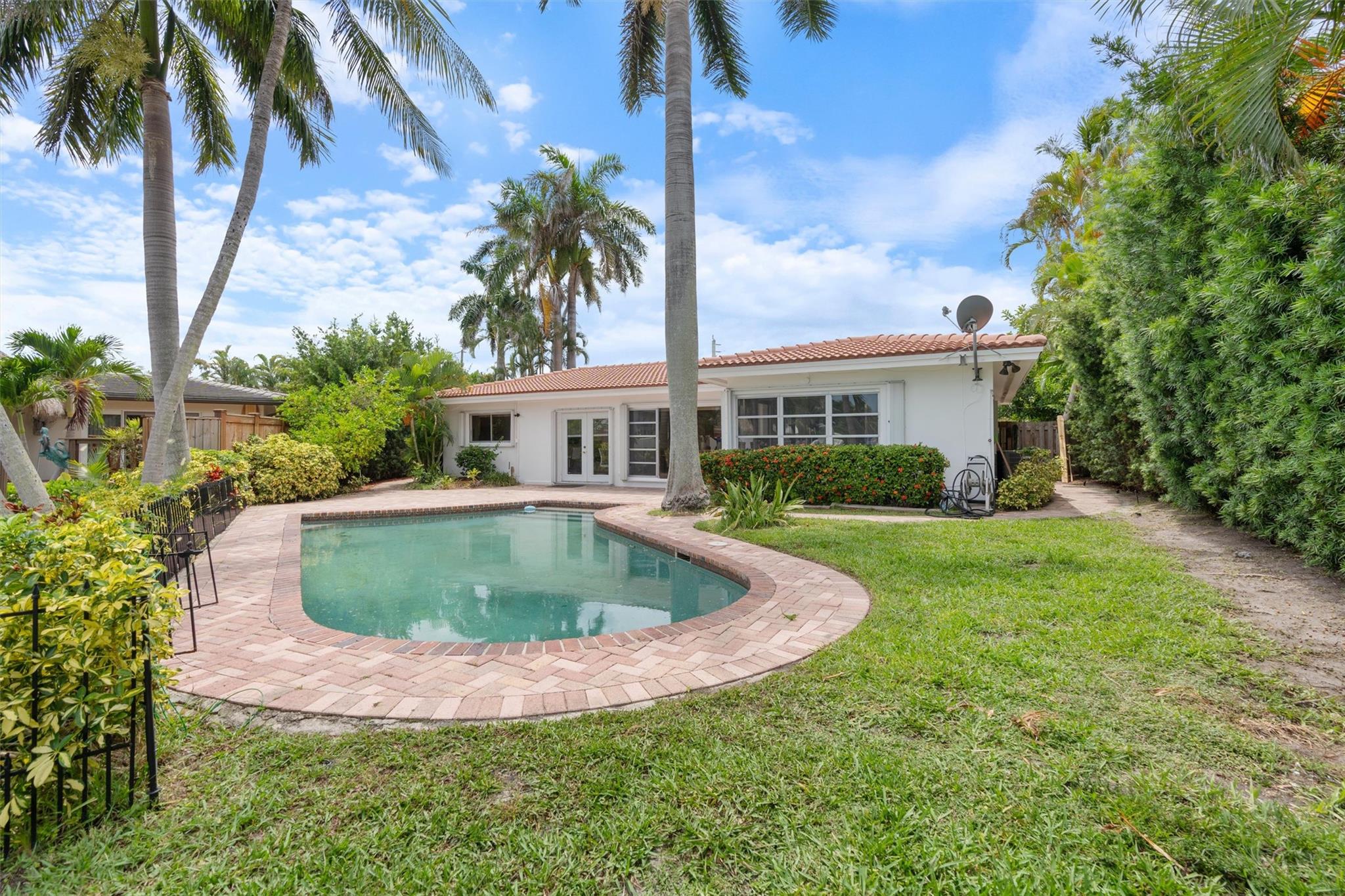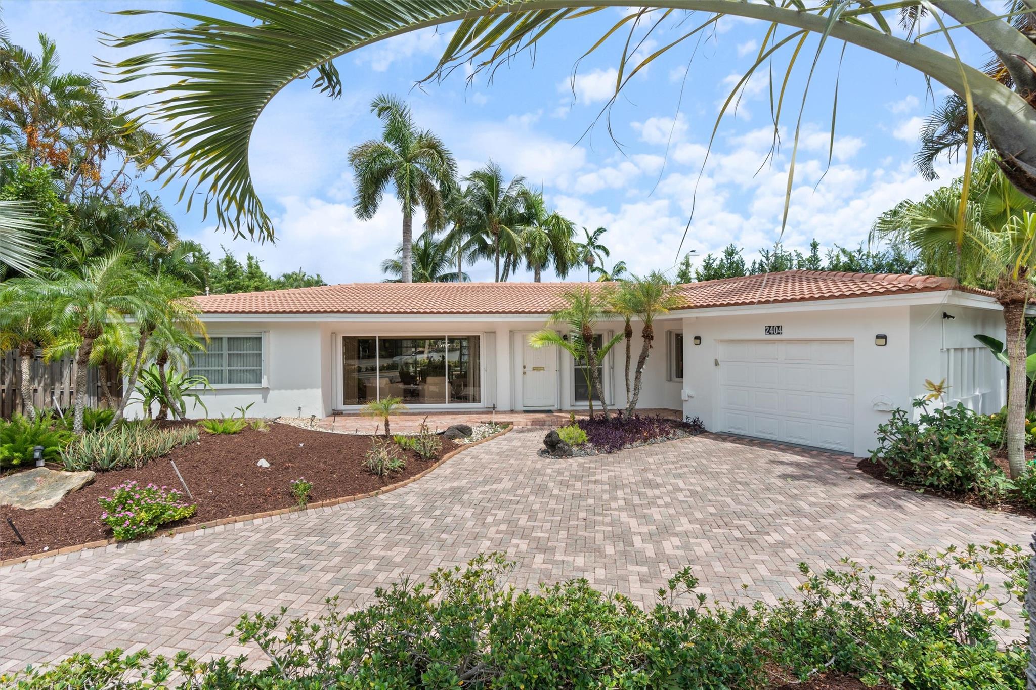 Want to live on the water in Coral Ridge for an amazing Price! Look No Further! Experience exceptional views directly down the canal to the Intracoastal Waterway with the iconic buildings of Auberge & The Palms in the background! This Deep Water, No Fixed Bridges Waterfront home is one of the best WF opportunity in Coral Ridge! With 70 feet of waterfront, perpendicular docking, this 3 bed 2 bath, pool home is perfect. Interior features 2 primary bedrooms, open floorplan, breakfast bar with open kitchen(granite tops) & tile throughout. The exterior offers 10 year roof, a one-car garage, circular pavered driveway. Unwind by the pool or take advantage of the serene private dock - ideal for the avid boater. Located across from a lovely neighborhood park , A+ Bayview Elementary School District!