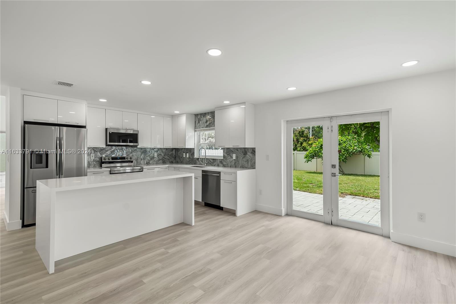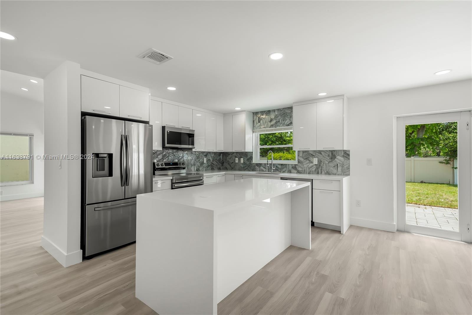 STUNNING !!! Beautifully remodeled and spacious 4bed/2.5bath home in the great neighborhood of Shenandoah in Davie with impact windows and newer roof. This home has been completely remodeled from head to toe with all high-end finishes. New modern kitchen with lacquered white cabinets, quartz counter with waterfall, designer glass tiles, large island with pop-up outlets and new stainless steel appliances. All bathrooms have been upgraded with porcelain tiles, modern vanities, lighted mirrors and double shower heads in the master bath. Brand new LVP waterproof flooring throughout, new doors and trims. New electrical panels and new hurricane grade garage door. Roof installed in 2022. Too many extras to list. Prime location surrounded by the best schools and close to everything. HURRY !