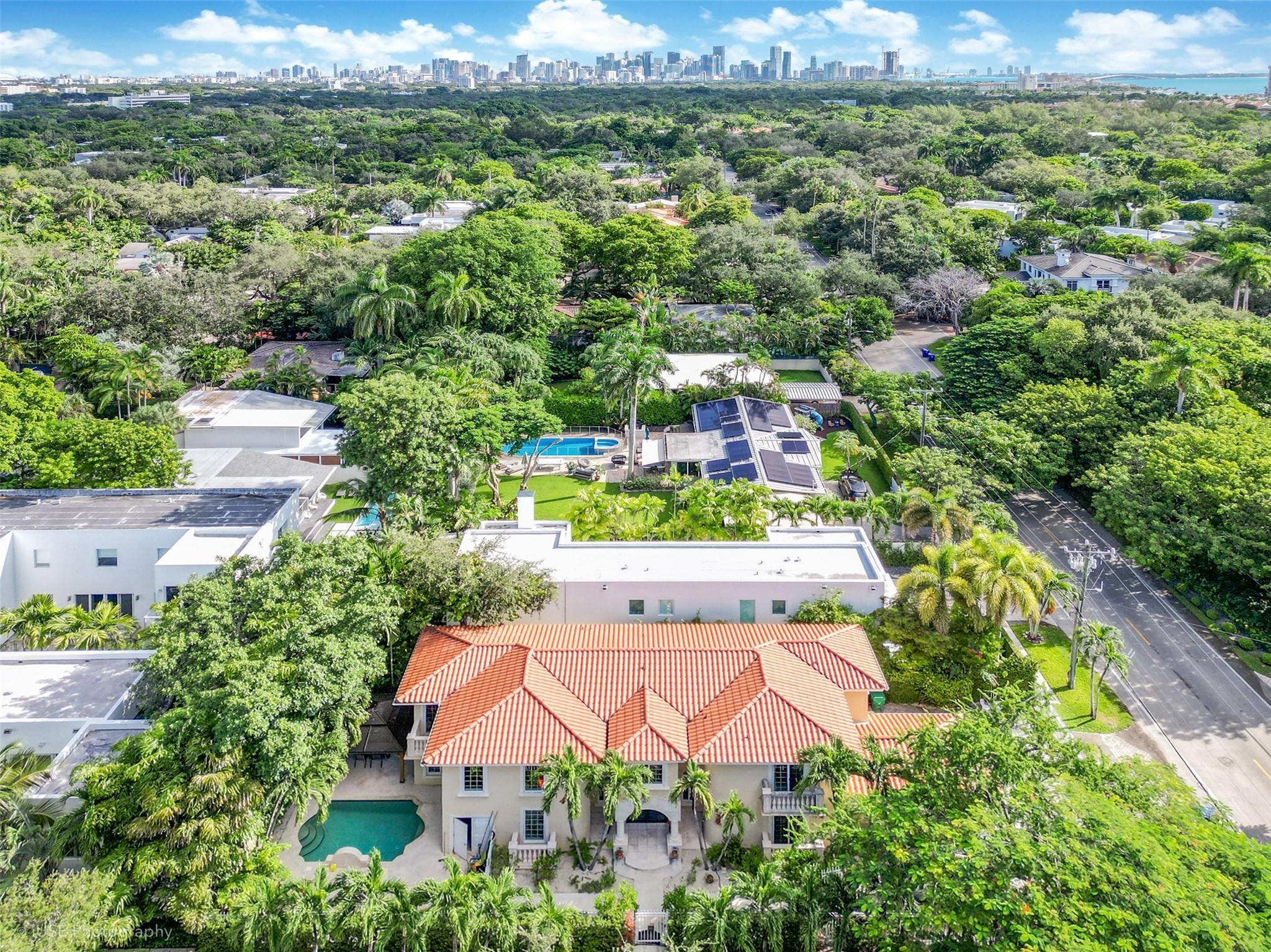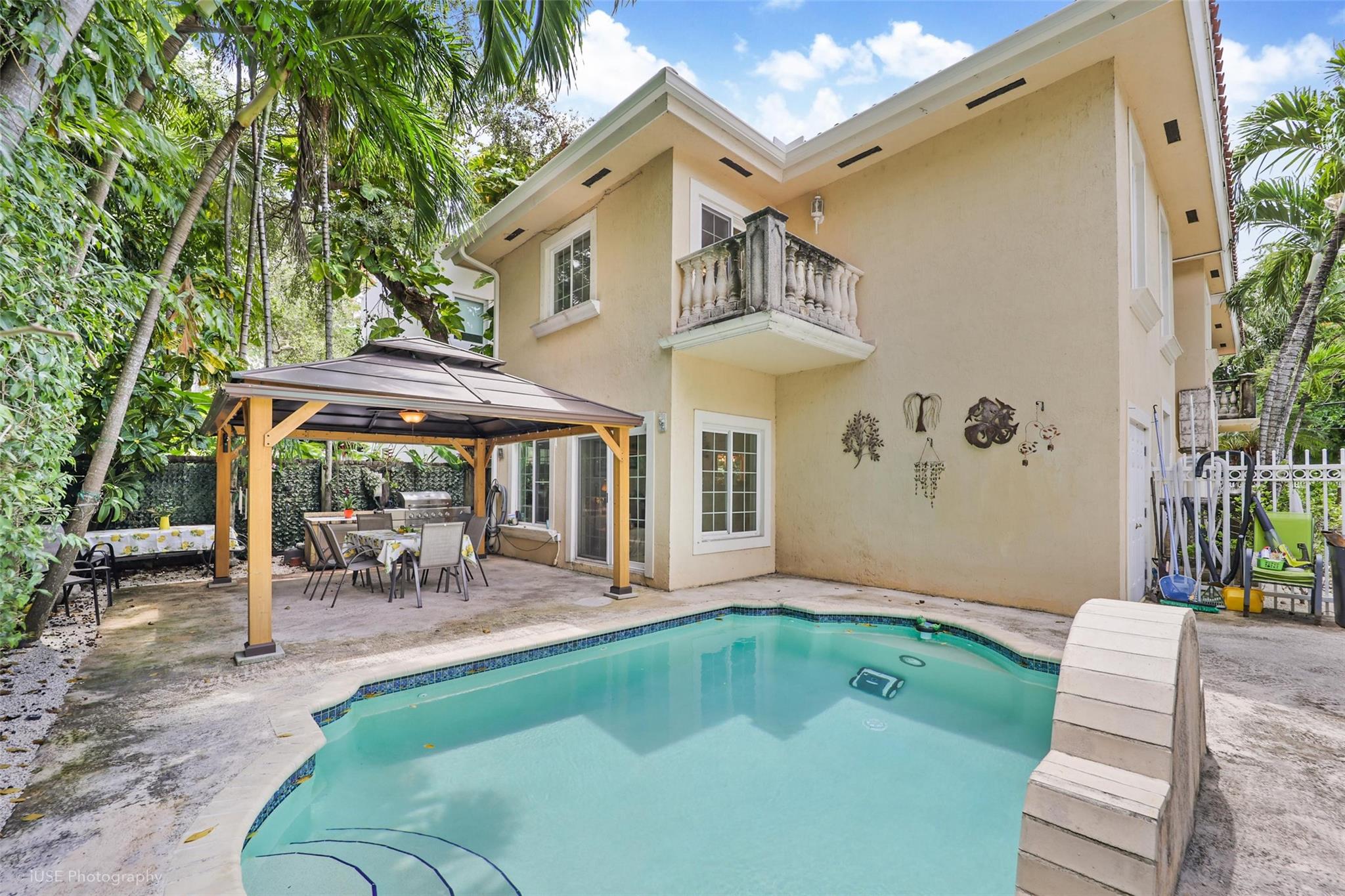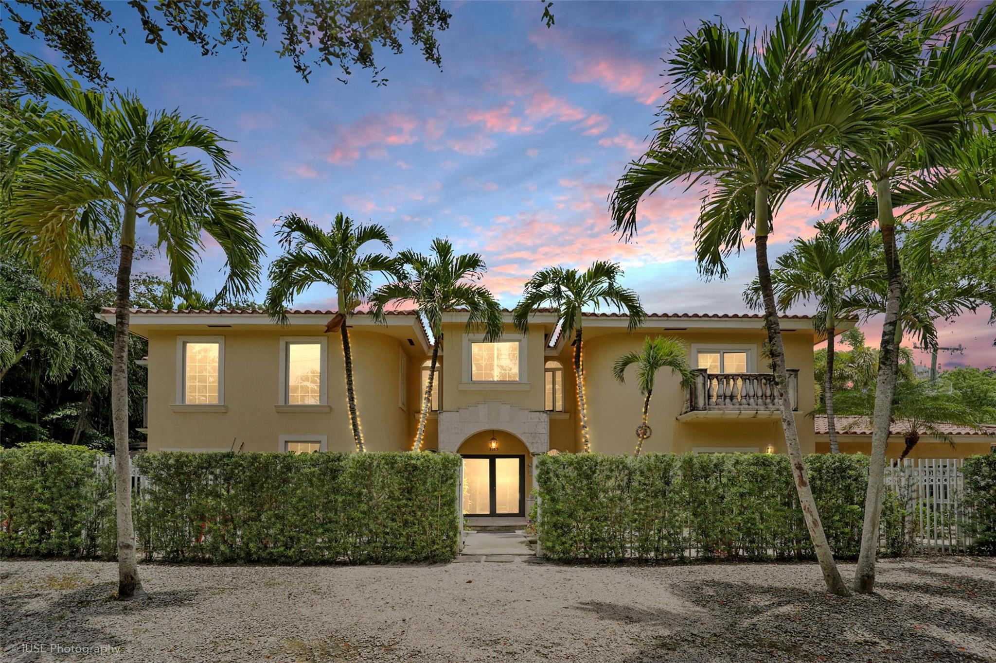 Elegant Mediterranean two-story home in highly sought after North Grove. Quiet, higher elevation location situated just 1 block from Biscayne Bay & marinas, minutes from waterfront parks & the booming Coconut Grove Village center. Full ensuite baths and walk-in closets in all bedrooms. All bedrooms with private balconies. Large master w/roman tub & double walk-in closet. Marble flooring throughout 1st floor and beautiful polished hardwood floors on 2nd level. Kitchen has granite countertops and new stainless steel appliances. Covered patio area with built-in gas grill and in-ground pool for entertaining guests. Master + 2 bed/2 bath upstairs, ground level 1 bd/1 ba perfect as a studio. Double garage with brick paver driveway and electric gate. Full impact windows and doors throughout.