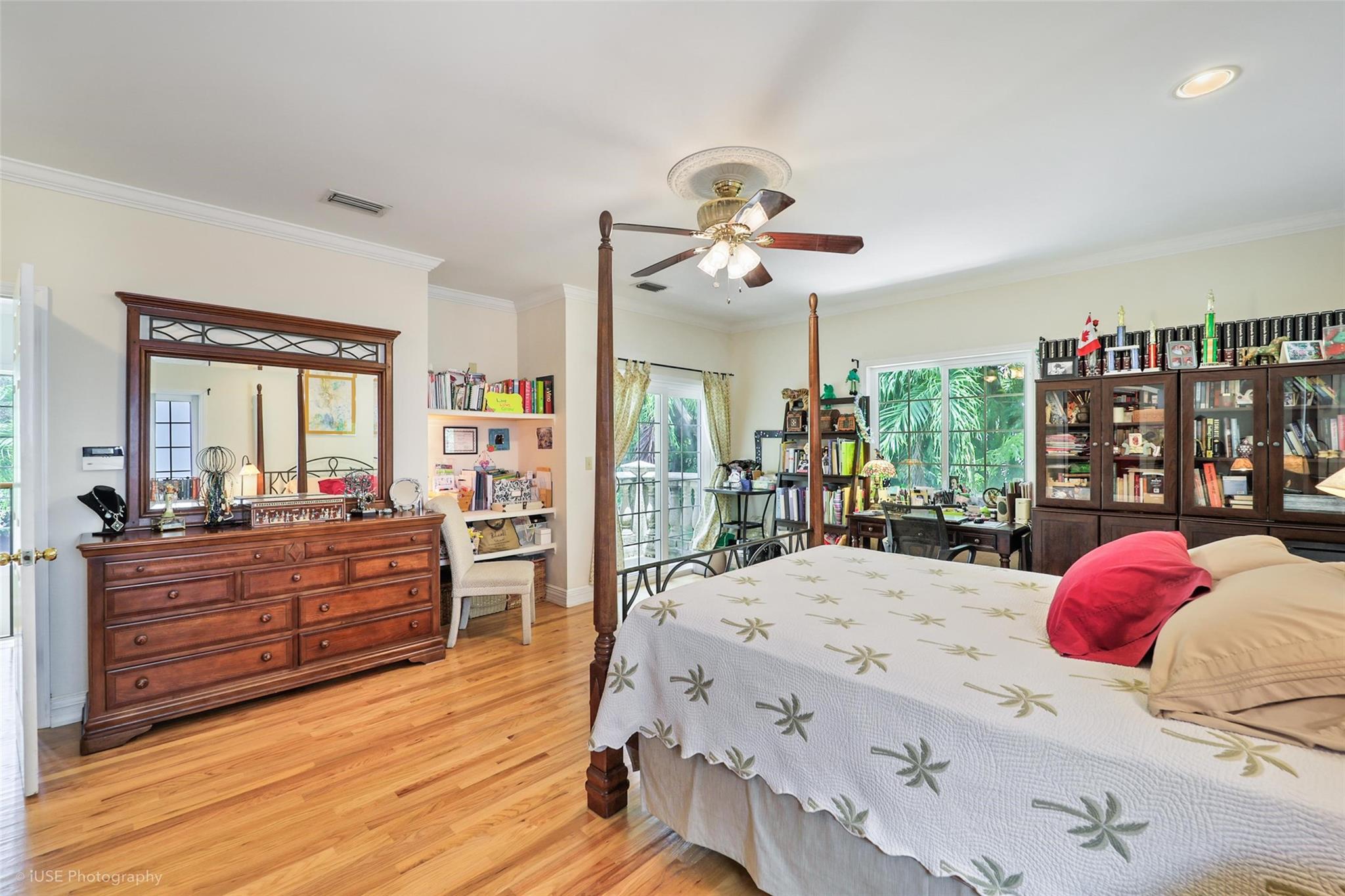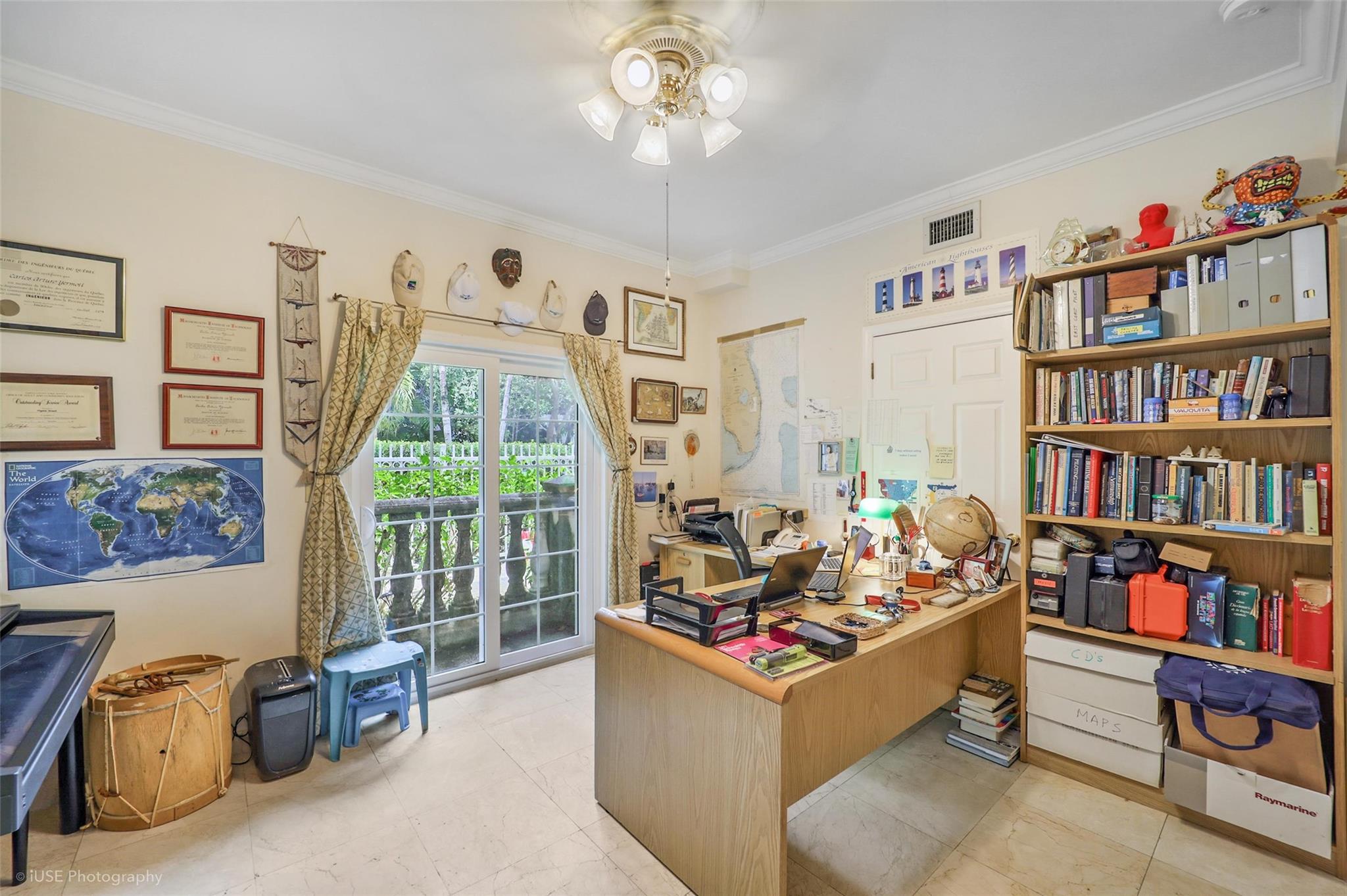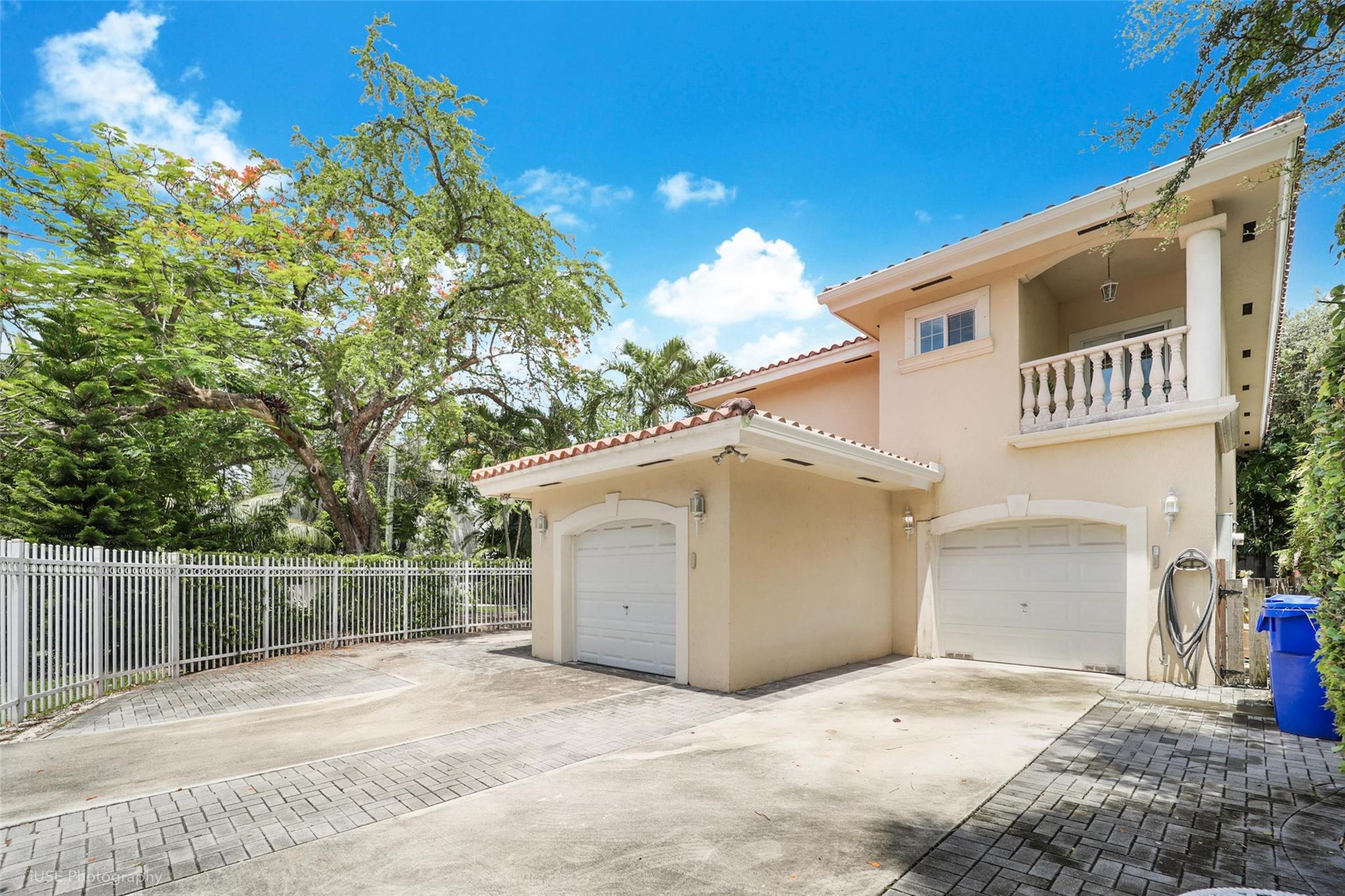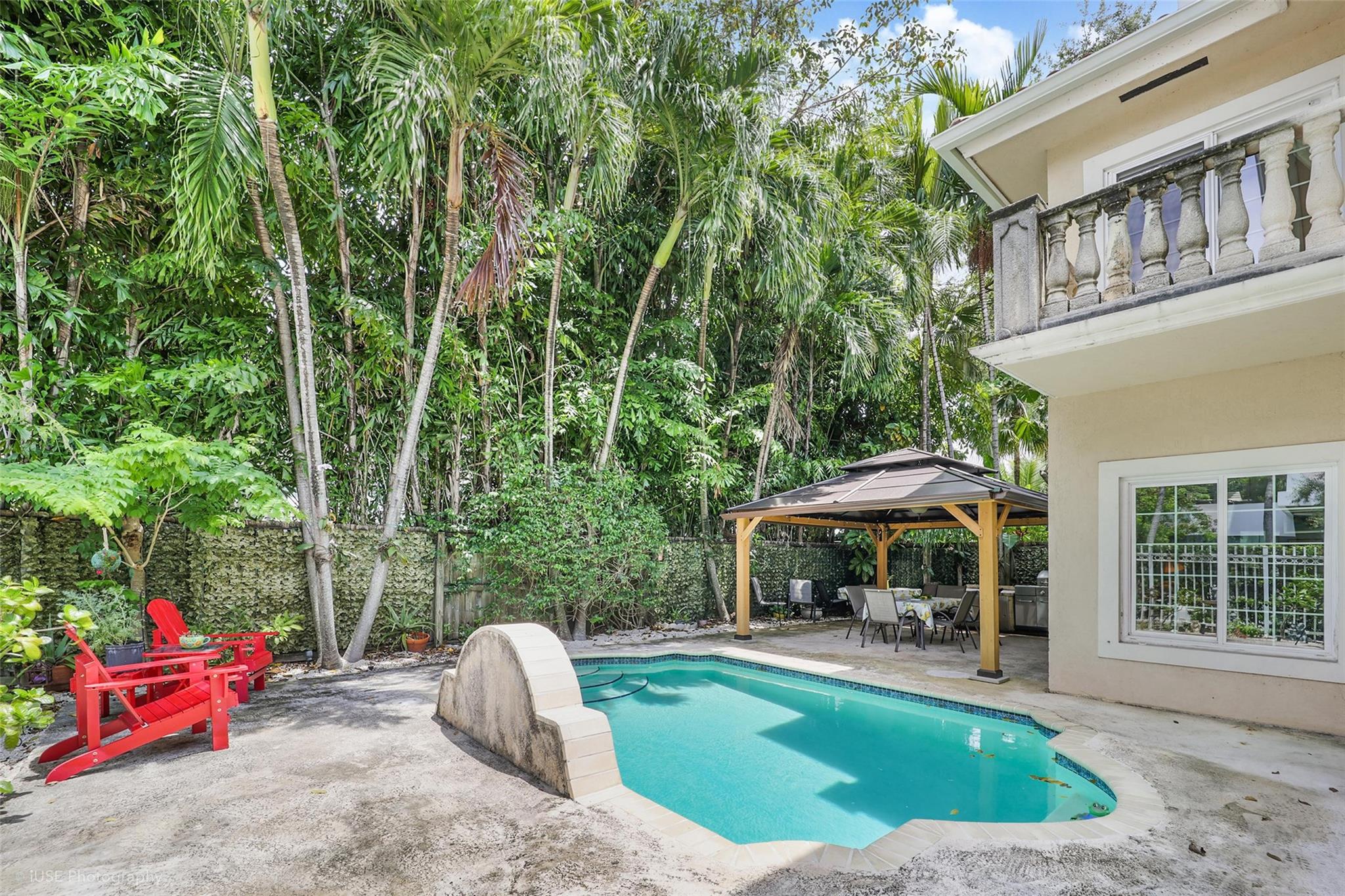 Elegant Mediterranean two-story home in highly sought after North Grove. Quiet, higher elevation location situated just 1 block from Biscayne Bay & marinas, minutes from waterfront parks & the booming Coconut Grove Village center. Full ensuite baths and walk-in closets in all bedrooms. All bedrooms with private balconies. Large master w/roman tub & double walk-in closet. Marble flooring throughout 1st floor and beautiful polished hardwood floors on 2nd level. Kitchen has granite countertops and new stainless steel appliances. Covered patio area with built-in gas grill and in-ground pool for entertaining guests. Master + 2 bed/2 bath upstairs, ground level 1 bd/1 ba perfect as a studio. Double garage with brick paver driveway and electric gate. Full impact windows and doors throughout.
