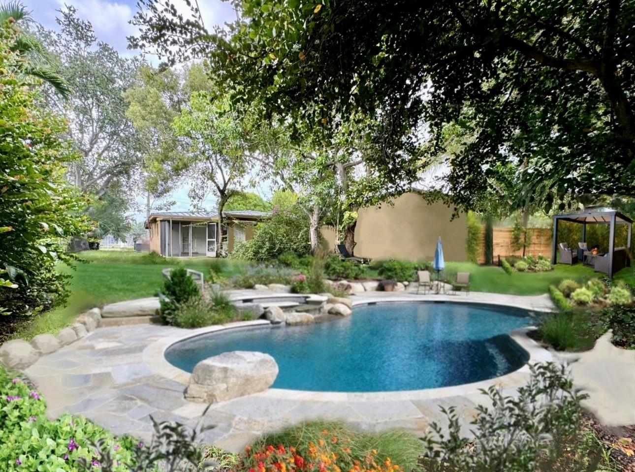 THIS 2/1 HAS A VERY UNIQUE SIZED LOT WITH 2 LONG DRIVEWAYS! SEPARATE GARAGE IN THE BACK WITH A LOFT. CREATE YOUR OWN BACKYARD OASIS. PLENTY OF ROOM FOR A POOL! HOME IS READY FOR YOUR OWN PERSONAL TOUCHES. LARGE LAUNDRY ROOM. WOOD CABINET DOORS IN KITCHEN. STAINLESS STEEL REFRIGERATOR. FAMILY ROOM HAS UPDATED WOOD-LOOKING TILE FLOORING. METAL ROOFS (2023) SCREENED PATIO. AVOCADO TREE. THIS PROPERTY HAS SO MUCH POTENTIAL! SOLD AS IS. (THE POOL PHOTO IS AN EXAMPLE OF AN ARTIST RENDERING IF YOU WERE TO ADD A POOL IN THE BACKYARD.)