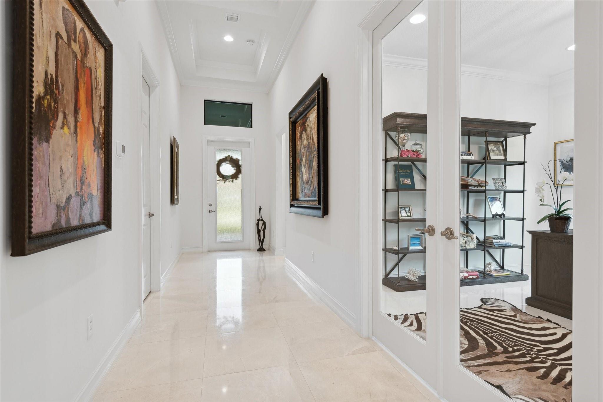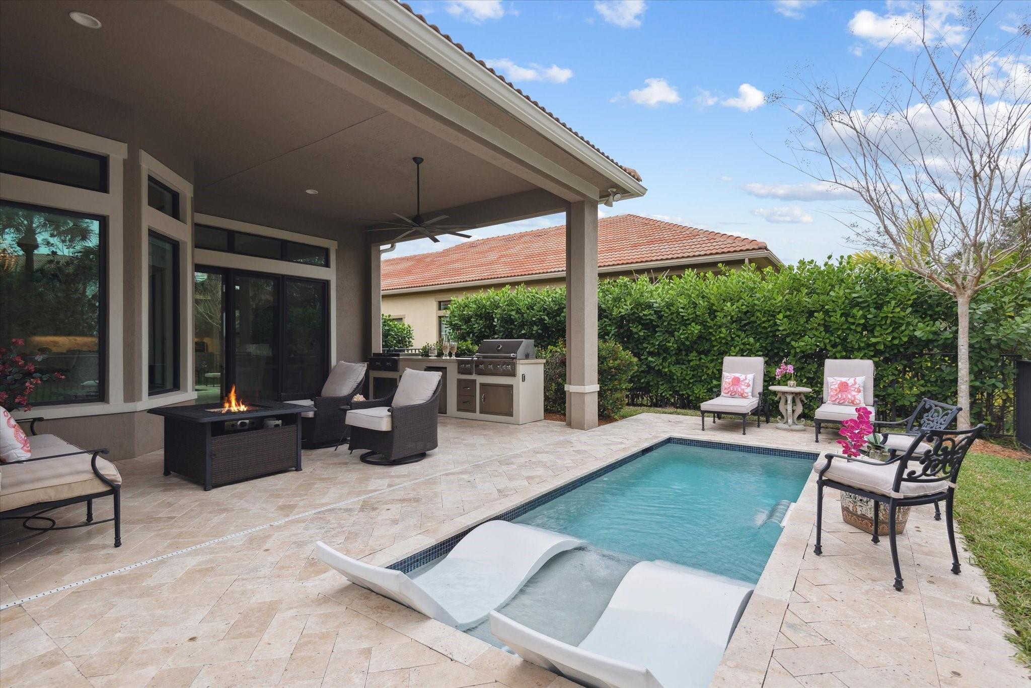 Seller motivated! Price slashed by $40,000.00! This stunning 2-bedroom, 2.5-bath home features a versatile den that can be converted into a 3rd bedroom. Designer high-end improvements are evident thru-out, marble floors in great room, halls and den, 14’ volume ceilings add to the spacious feel. The lg. island kitchen boasts cabinets on both sides, a walk-in pantry, a natural gas 5-burner stove, and double ovens. Quartz countertops grace the kitchen and baths, while a custom beverage center w/a wine cooler enhances the great room. Step outside to a lg, covered patio w/a summer kitchen just steps from a splash pool/sun shelf. The fully fenced back yard offers privacy, & a prime location w/no homes immediately in front or in back. Full house gas generator gives peace of mind during a storm!