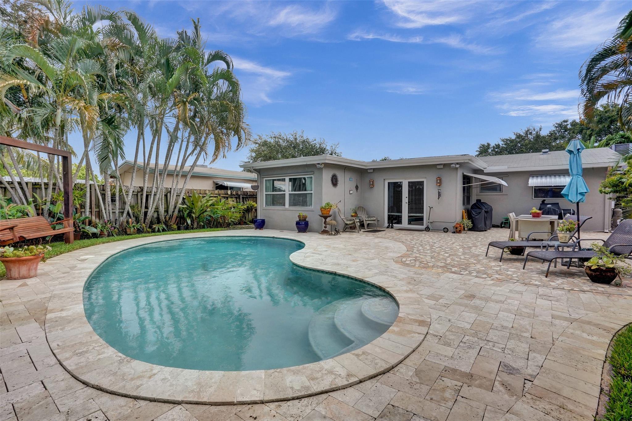 Welcome to your south Florida dream home! This beautiful 3-bed, 2-bath residence perfectly blends comfort and style. Enclosed Florida room is the 3rd bedroom, currently used as a den. With a 1-car garage and a stylish paved circular driveway you will have plenty of room to park all your vehicles. Featuring an updated kitchen and a dedicated laundry room including washer and dryer, the true highlight of this home is the stunning fenced backyard, complete with a sparkling pool and a solid wood swing bench making it perfect for entertaining and relaxation. Located in a serene and convenient neighborhood of Hollywood Hills, you’ll be just a short walk from schools, shops, and places of worship. Don't miss this incredible opportunity—call now and make this dream home yours!
