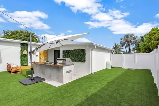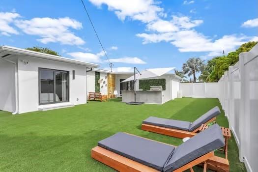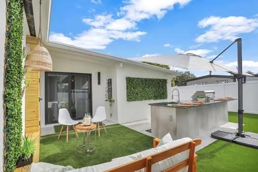 Absolutely stunning 3 Bdrm 2 bath home with 1 CG. Completely updated and remodeled with no expense spared! New plumbing, new electric including new panels, new impact windows&doors, new AC & ductwork, new Bathrooms, new Kitchen, new luxury wood look vinyl floors, honestly almost New everything! From the second you walk into the foyer you will be impressed with all the custom features and designer touches. Gorgeous accent walls throughout! The oversized Master Bdrm has a sitting area & custom walk-in closet. Have fun entertaining in your own private oasis outback with a fabulous built in summer kitchen w/gas grill, refrigerator and snack bar all covered with an oversized umbrella for shade! All New PVC fence and artificial turf. Pictures don’t do this home justice, come fall in love!