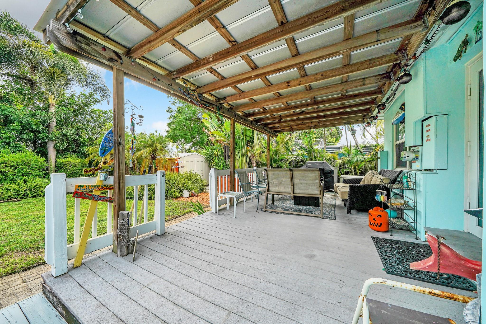 Charming Old Pompano home less than a mile from the beach. Originally relocated in 1971, this home features impact windows,solar panels, new electrical panel, and attic insulation for energy efficiency. Built with durable Dade County Pine and CBS construction, it boasts polished terrazzo and wood floors. Modern amenities include a gas stove, washer, dryer, BBQ, and a new water heater. The spacious yard offers a tropical garden, hot tub, and covered deck, with room for a pool. Ample parking for RVs, boats, or multiple cars. Enjoy beachside living with easy access to restaurants, shops, and parks. Schedule a viewing today!