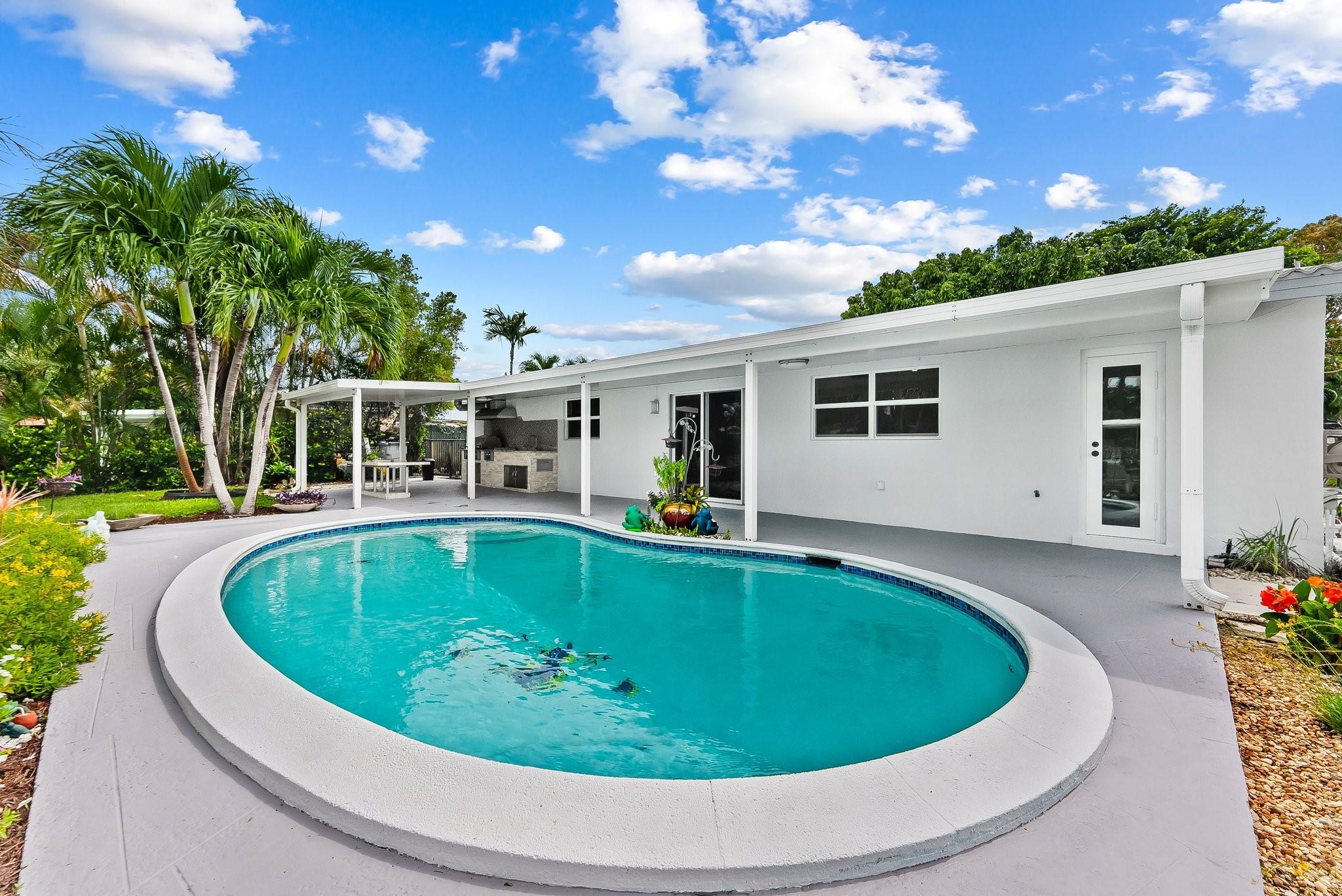 Welcome to your dream oasis! This stunning waterfront home in Pompano Beach offers the perfect blend of luxury and coastal living. Featuring three spacious bedrooms and two beautifully appointed bathrooms, this residence is designed for comfort and style. Step outside to your private paradise, complete with a 50-foot dock and a boat lift, perfect for water enthusiasts. With 75 feet of water frontage, you can enjoy breathtaking views and easy access to the ocean. The outdoor space is an entertainer's dream, featuring an amazing outdoor kitchen and barbecue area, ideal for hosting family and friends while soaking up the sun and enjoying the gentle sea breeze. Hurricane impact doors and windows. Bonus room and closet can easily make this a four bedroom home. Hurricane Impact windows & doors.