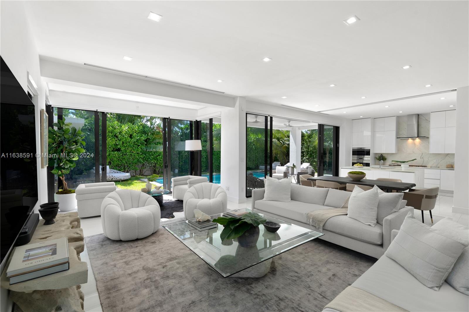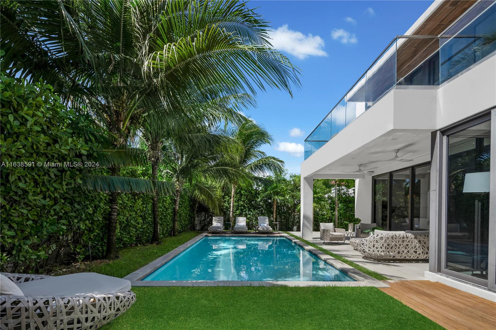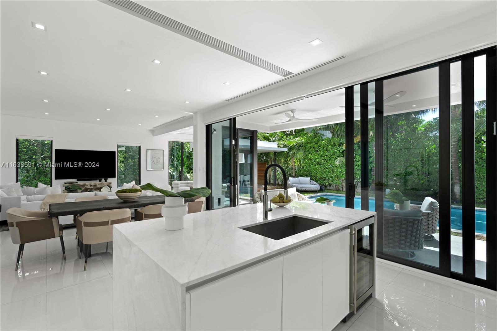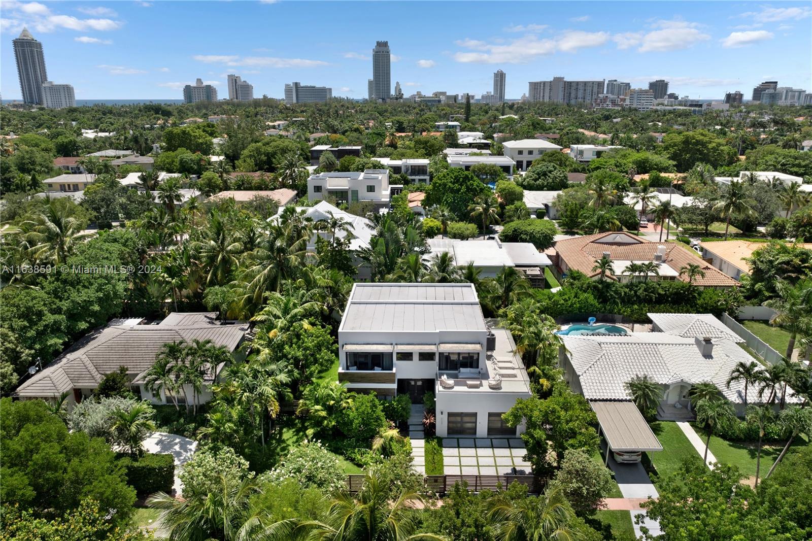 Welcome to your dream home in Miami Beach, where modern luxury meets serene privacy. This recently built modern masterpiece boasts an impressive 3,867 SF of living space, designed to maximize natural light and create an inviting atmosphere. With a perfect open floor plan, this home is an entertainer's paradise, seamlessly blending indoor and outdoor living, highlighted by a large pool, complete outdoor kitchen, and dining area. With 3 spacious bedrooms upstairs and 2 downstairs, this home is designed for both comfort and elegance. The primary suite is a retreat unto itself, offering a luxurious sitting area, a spa-like bathroom, and an expansive walk-in closet. Situated on a beautifully landscaped and secluded st, this gated property combines sophisticated design with unparalleled privacy.