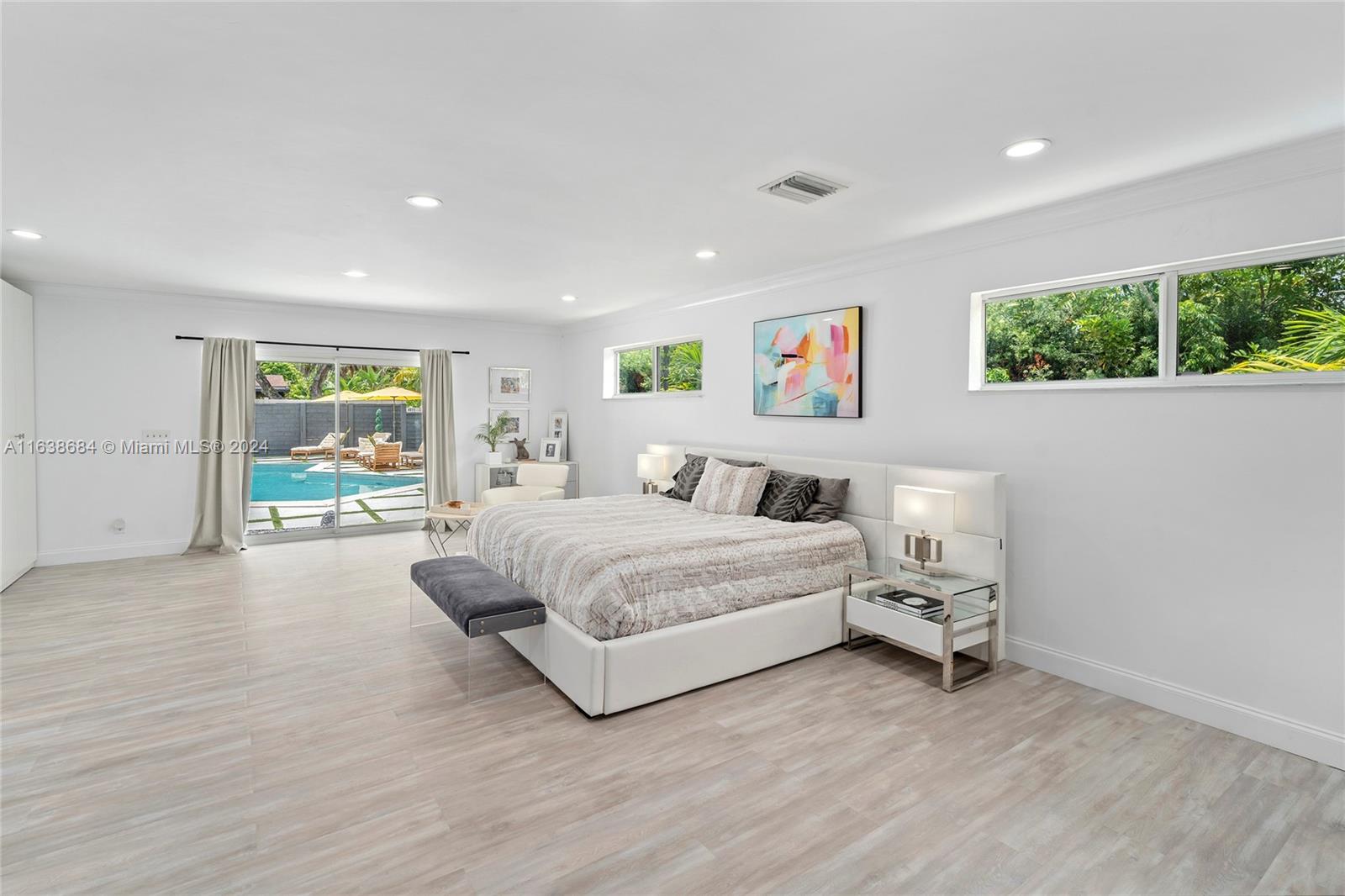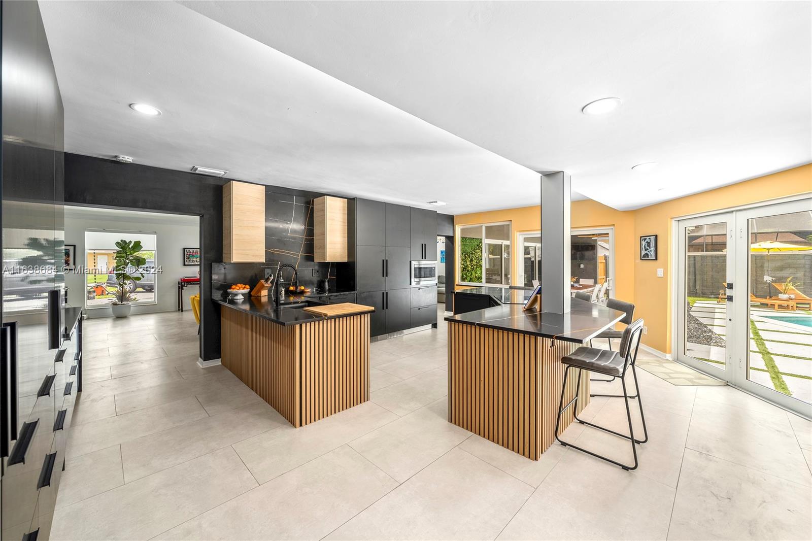 Welcome to this classic renovated 5 BD / 4 BA mid-century pool home, exuding a luxurious Palm Springs vibe. Nestled in Hollywood Hills, this gorgeous home boasts one of the largest lots in the neighborhood, and a resort-style rear yard complete with oversized pool, pristine putting green, outdoor TV, elegant covered Florida room, and cabana bath with relaxing sauna. The expansive primary bedroom offers a stunning view of the pool. Four additional spacious bedrooms and a fully renovated, state-of-the-art kitchen. Enjoy new porcelain floors throughout, spacious two-car garage, and brand-new, high-impact windows and doors. Recent updates include new roof, modern pool lining, and advanced electrical system. Don't miss this opportunity!