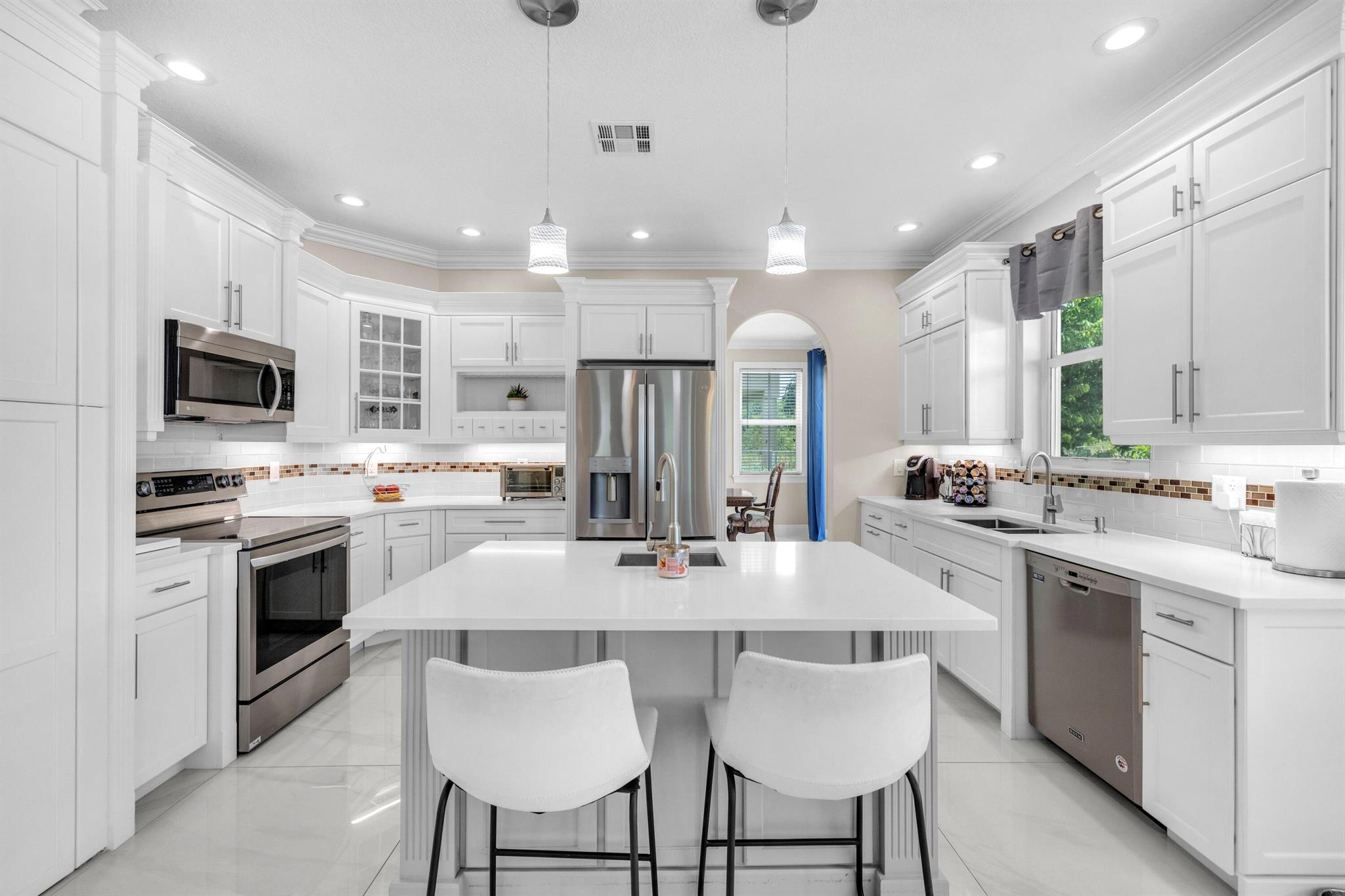 Welcome to this beautifully remodeled 6-bedroom, 4-bathroom home in Wellington's prestigious Olympia community. The open floor plan features stunning new tile flooring and a gorgeous staircase. The modern kitchen includes new appliances, elegant finishes, and a spacious walk-in pantry. The master suite offers a private balcony overlooking a fenced-in yard with a pool and serene garden view, ensuring privacy with no homes behind due to a preserve. The home also boasts a three-car garage. Rest easy during storm season with all new impact windows. Enjoy resort-style amenities like pools, a gorgeous clubhouse, and more in this family-friendly community with top-rated schools. Offering home warranty as well. This is a MUST SEE!