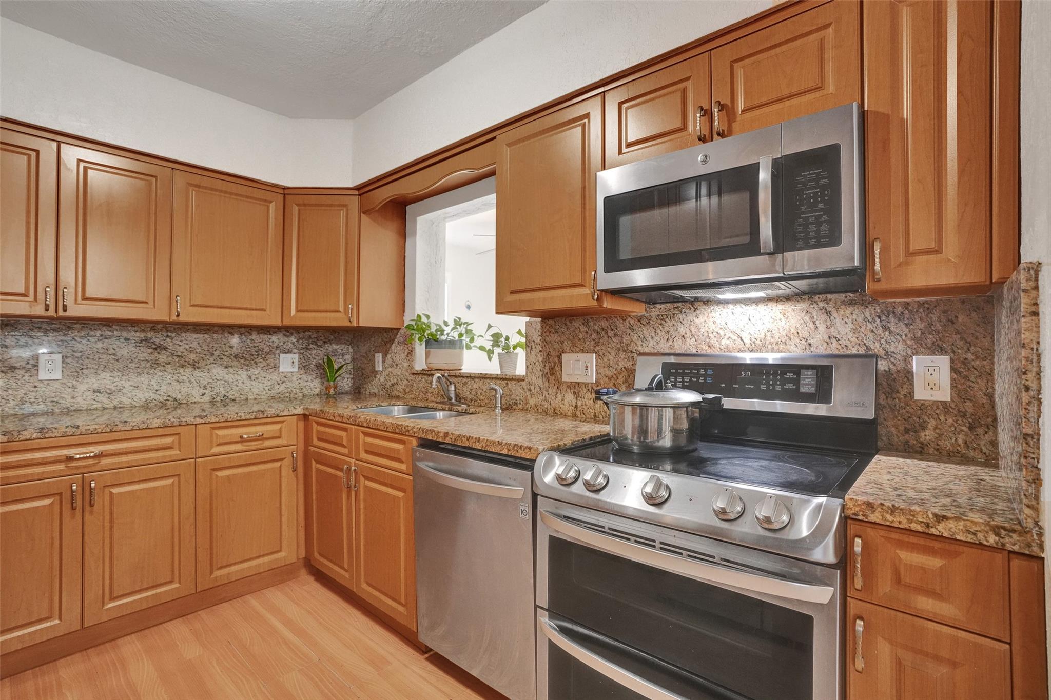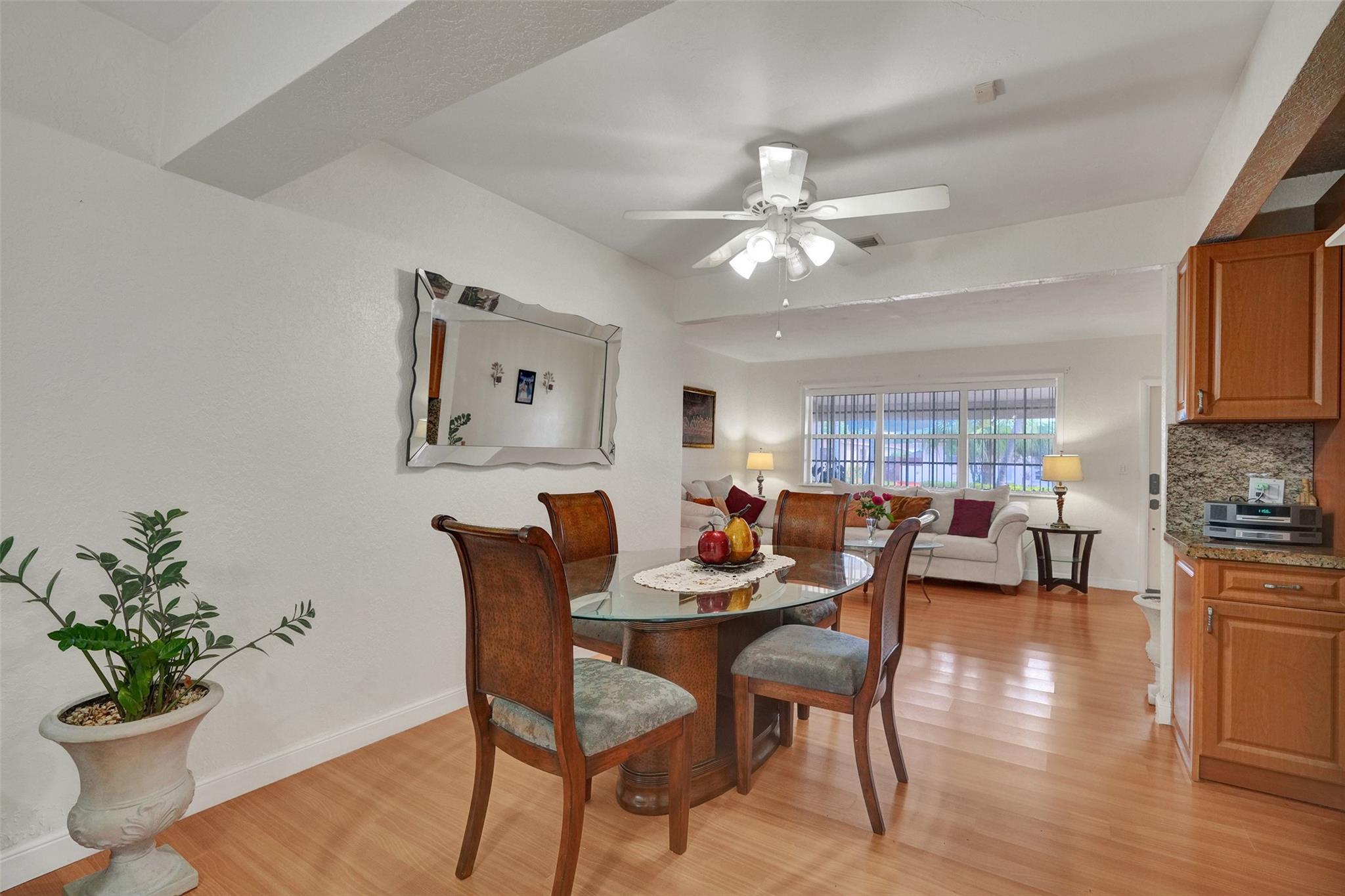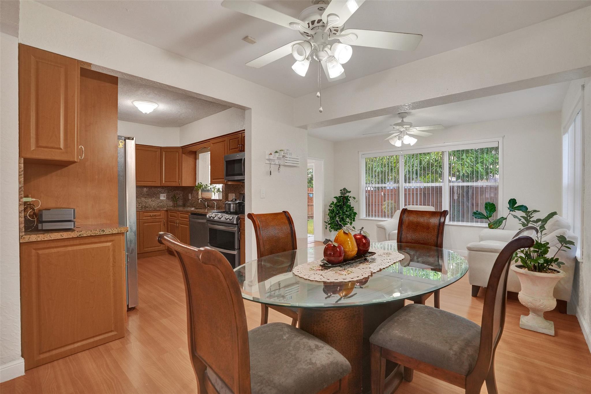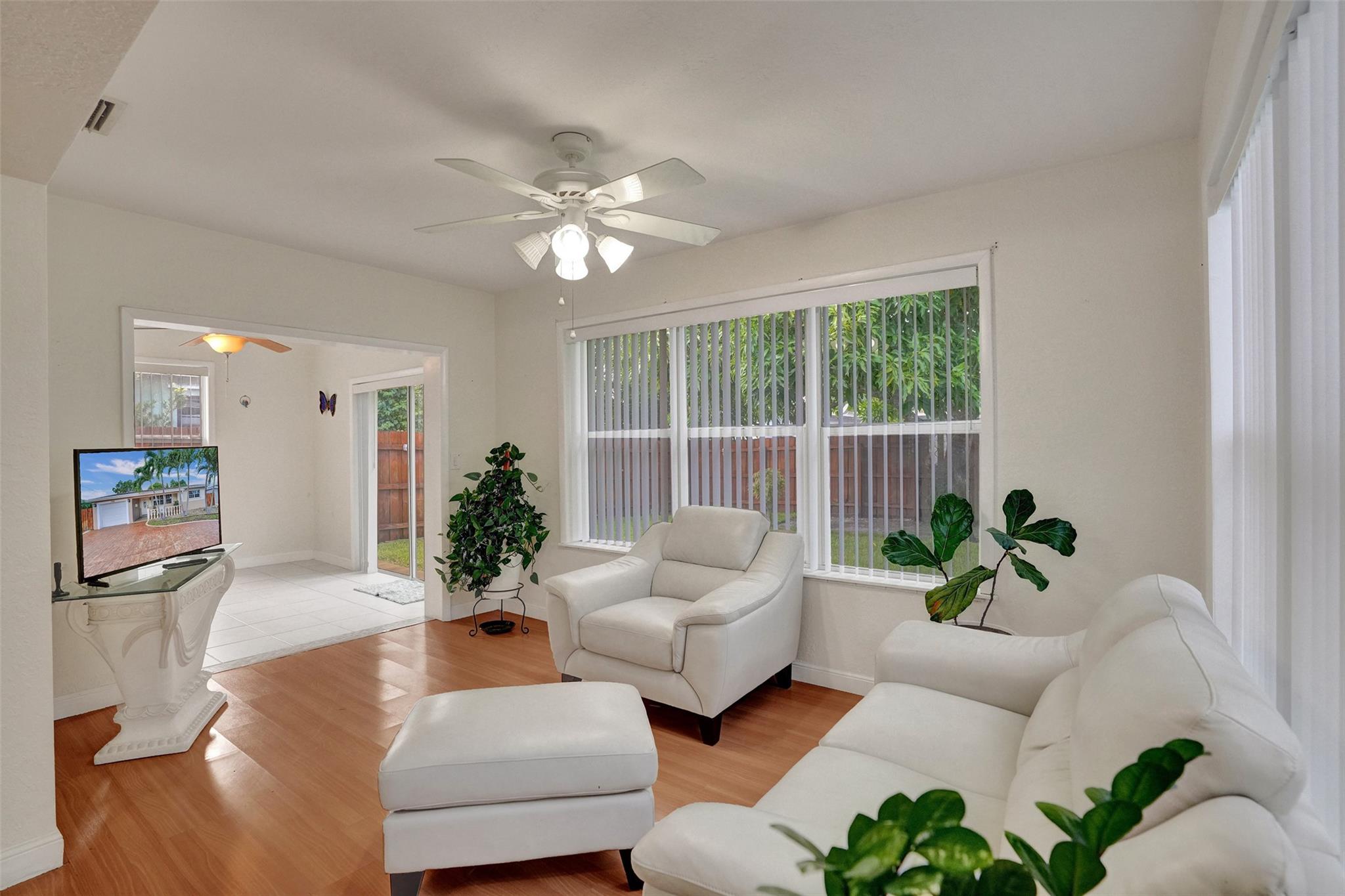 Cozy and well-maintained 2-bedroom, 2-bath home in Miramar, offering 1,319 sq. ft. of cozy living space. This home has a remodeled kitchen and updated baths and is move-in ready. Laminate floors throughout. The family room overlooks a beautifully landscaped backyard. The property has a sprinkler system with a well. New roof 2020. and A/C 2018. All doors are impacted, including the garage door—Accordion Hurricane shutters on all windows. The property boasts a beautiful large driveway—a fully fenced backyard with mango, avocado and soursop trees. You’ll fall in love with this home's warm and inviting energy—don’t miss out!