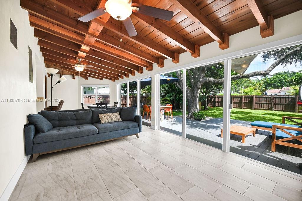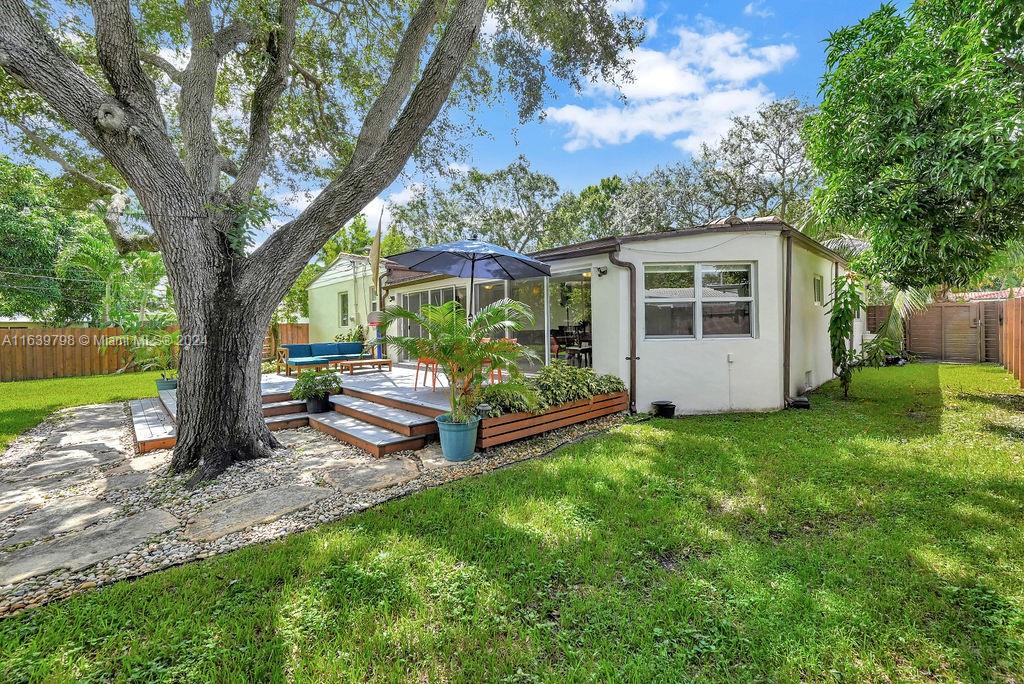 Discover this beautiful Miami Shores home, offering 3 bedrooms, 2 bathrooms, and a versatile office/flex room. Enjoy generous living and dining spaces, an updated kitchen that seamlessly flows into the family room, and abundant natural light throughout. The spacious backyard features a large deck with ample room for a pool, all nestled on a tranquil dead-end street framed by beautiful mature oak trees. With impact windows and doors, a newer roof, a laundry room, and ample parking, this home provides both comfort and convenience. Located in a NO FLOOD ZONE with easy access to the Miami Business District, Miami Beach, Wynwood, and the Design District.