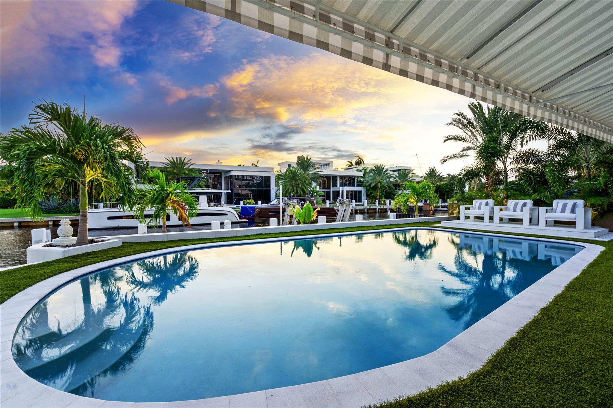 The Hamptons meets Fort Lauderdale on the prestigious South Las Olas Isles in this Reimagined Chic Coastal deepwater estate sited on 75+/-ft of waterfrontage with 25,000+/-lb lift on a concrete dock, 4 off the point & overlooking all new waterfront estates. Stately Royal Palms greet guests to the steel-case double entry doors & Great Room oasis of bleached wood floors, dreamy white walls, skylit vaulted ceilings & cozy fireplace. Primary suite w/dual wardrobes, spa bath w/dble vanity, free-standing tub, & sep shower. Sleek Gourmet kitchen w/ S/S appliances opens to the Family Rm & Dining Rm. The 2nd level floor boasts 2 bedrooms. Resort-like pool patio w/ Lg lanai. Other amenities: Designer furnished, impact windows &doors & 2 bay tiled garage. Minutes to Las Olas Village & famed Beaches.