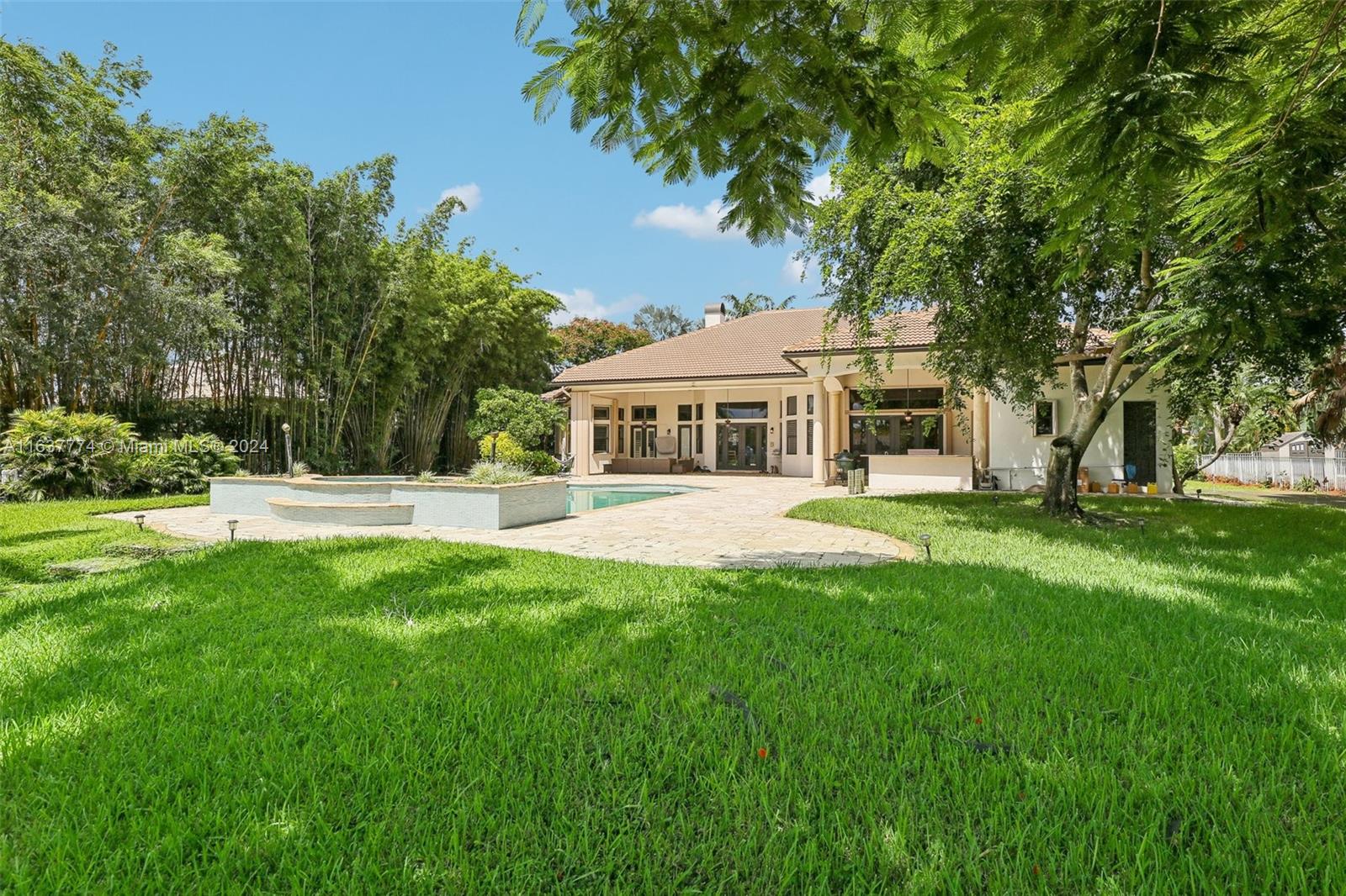 Step into your own tropical oasis with this stunning backyard retreat! Featuring a shimmering pool, lush greenery, and serene water views, your outdoor space is perfectly crafted for relaxation and entertainment. Dive into a life of luxury in this exquisite setting, Tankless water heater, beautiful Jerusalem stone floors in all main living areas, office & one bedroom, 6/6.5+office, plantation shutters,Whole house generator, accordion shutters, gas stove, double oven, bread warmer, microwave.
