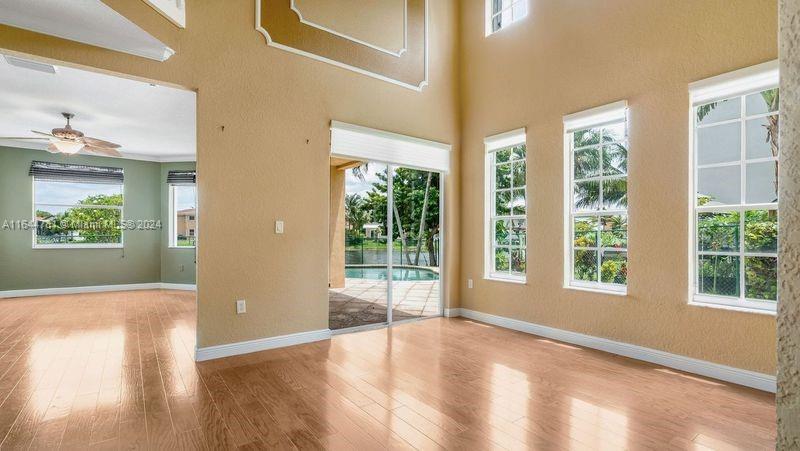 Spacious 2-Story Single Family Waterfront Pool Home in a Quiet Cul-de-sac & Security Guard Gated Community - 2622 Sq Ft - 4 Bed / 2.5 Bath / 2 Car Garage - Paved Driveway - Vaulted Ceilings in the Formal Living Room / Separate Dining room / Breakfast area / Kitchen & Family Room with beautiful Views of the Pool and Lake - Solid Wood Flooring throughout - Separate and Large Laundry Room - The home has a stairlift in the garage if needed for a disabled or Elderly Person - Large Master Bedroom with Separate lounge area, Walk-in Closet, and large Master bathroom - Split Bedrooms - Lots of Natural Lighting - Clubhouse, Community Pool with Jacuzzi and Fitness Center - 5 Minutes to the Turnpike, Publix, Restaurants and Shops