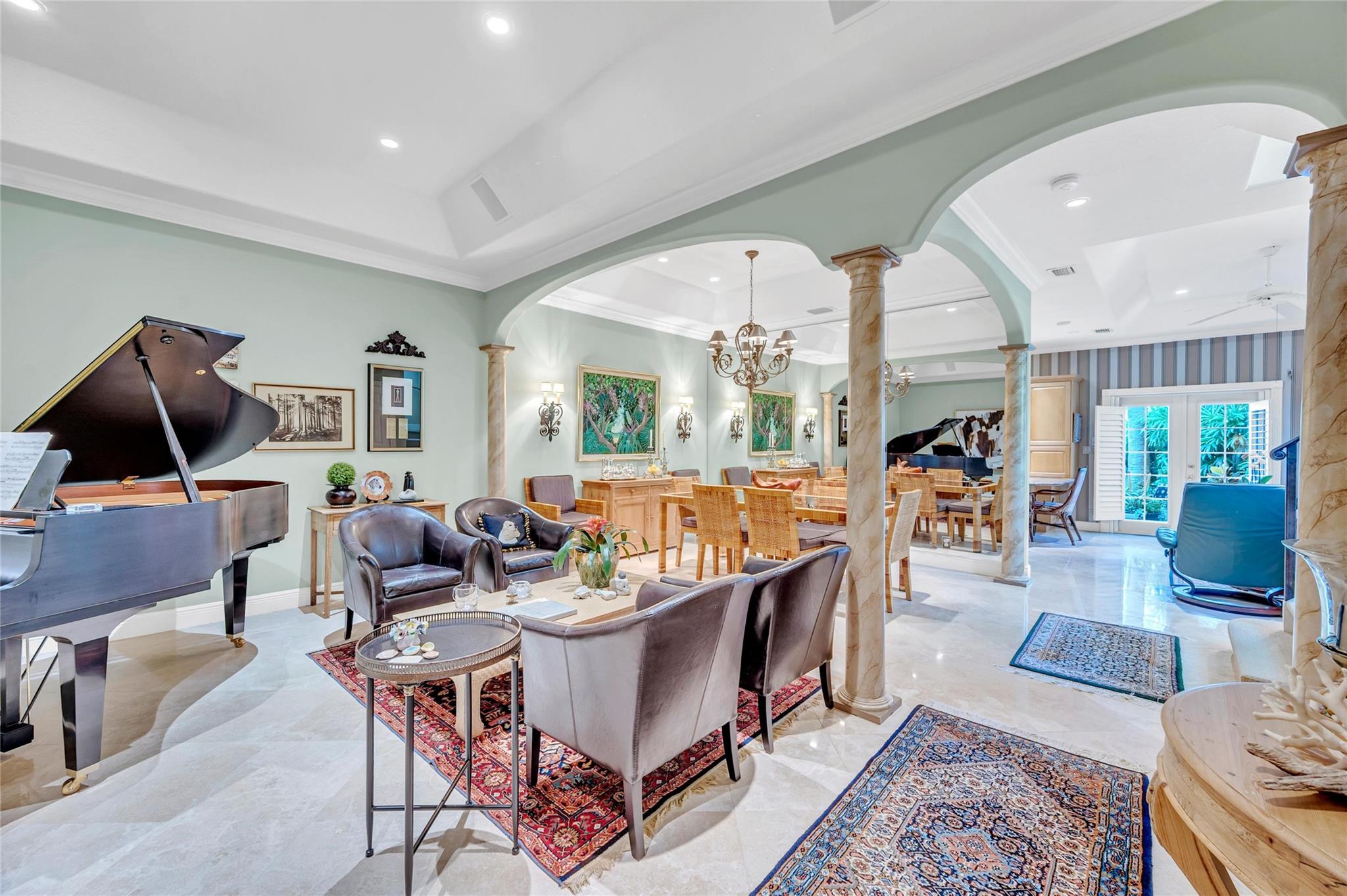 • Интерьер:BreakfastBar, BreakfastArea, DiningArea, SeparateFormalDiningRoom, DualSinks, EntranceFoyer, FrenchDoorsAtriumDoors, FirstFloorEntry, HighCeilings, MainLivingAreaEntryLevel, SittingAreaInPrimary, SplitBedrooms, SeparateShower, UpperLevelPrimary, WalkInClosets, Attic