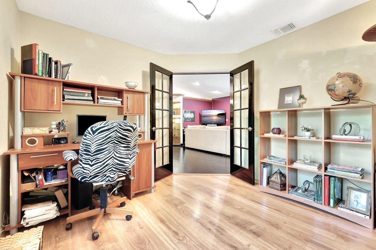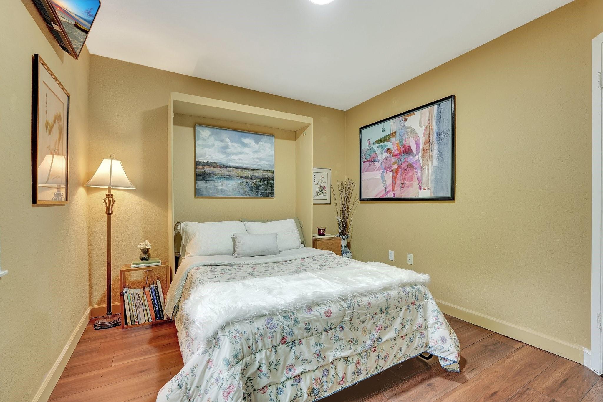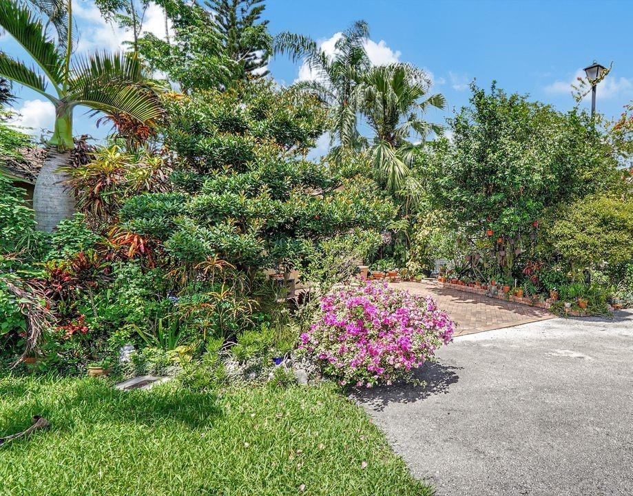Welcome to a world of enchantment! Follow the brick paver driveway to this whimsical abode, enveloped by lush landscaping that seems to have sprung from the pages of a fairytale. Located on the largest cul-de-sac in the comm w/extra guest parking, this lovingly maintained 3/2 cottage boasts all IMPACT GLASS windows/doors, rain-soft water filtration system, freshly painted interior areas, bamboo water resistant flooring, new electrical panel. The charming Positano farmhouse kitchen with concrete counters leads to huge 400SF screened tiled Zen patio with yoga niche. The fenced backyard is a kaleidoscope of vibrant hues, flanked by exotic flora & a butterfly garden. Original model home & owner-occupied for the last 20-years. Roof is 40-yr shingle, installed 2007. Comm pool & park up the road!