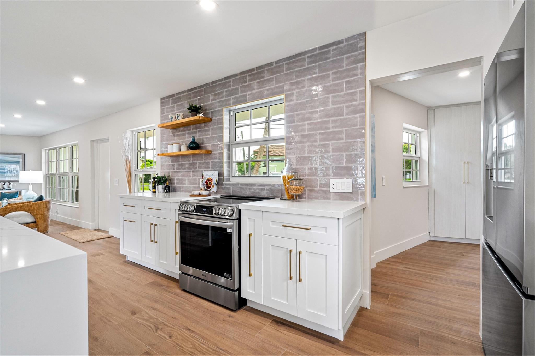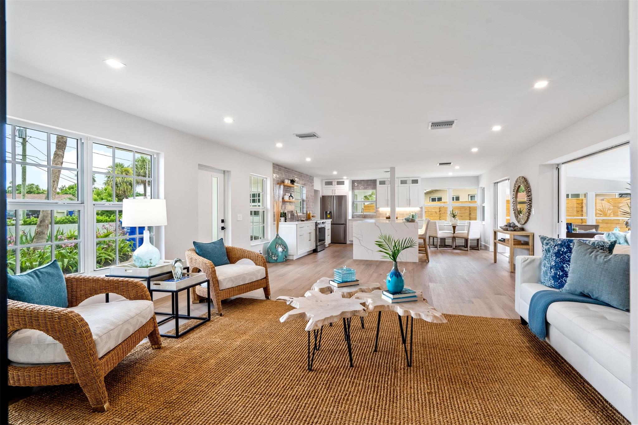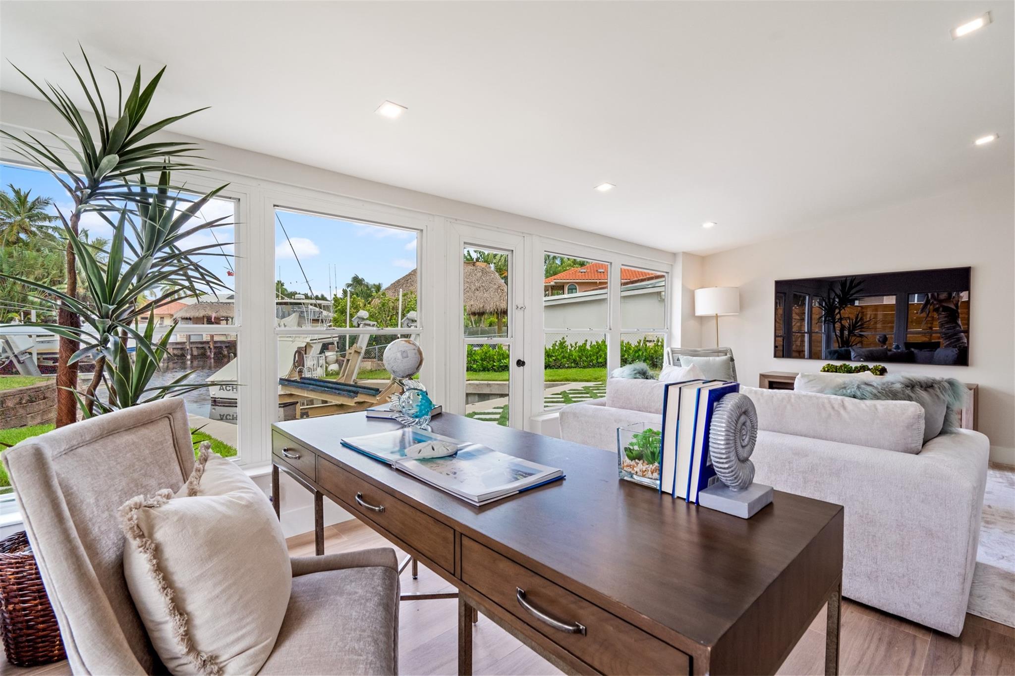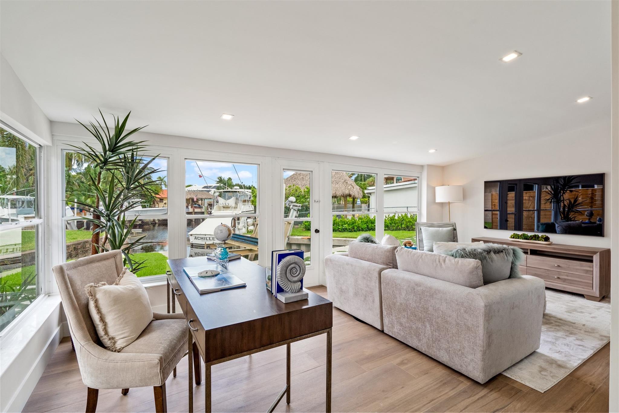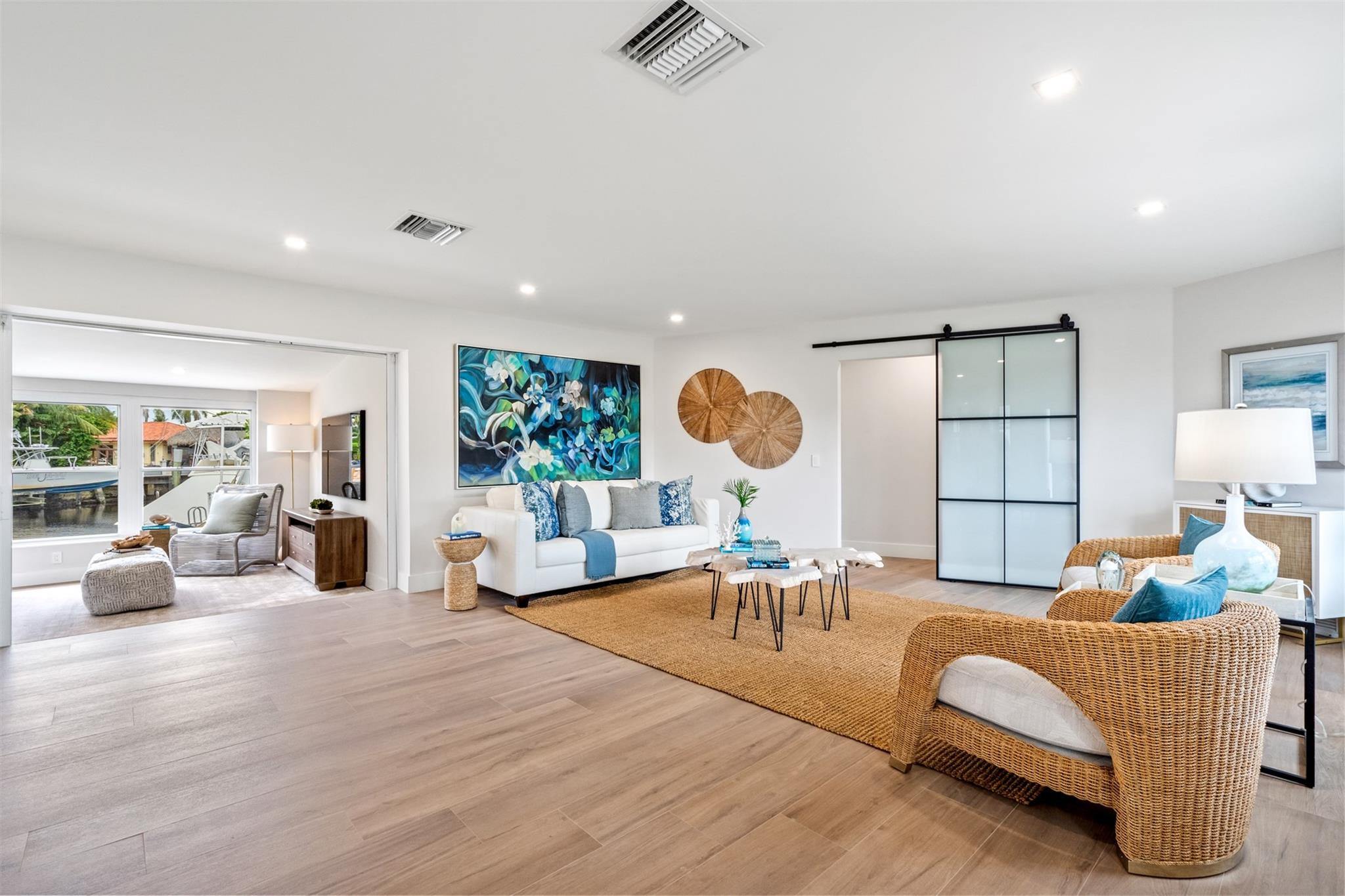 Fully updated Pompano Beach home on intercoastal w/ direct ocean access. This modern-coastal home sits on oversized corner lot featuring 2 bed, 2 full bath, Florida room, laundry room, 2-car garage. Open kitchen with oversize island, under cabinet lighting, stainless steel appliances. Private boat lift- NO FIXED BRIDGES availing open access to the Hillsboro Inlet and Atlantic Ocean. Custom built-in closets. Brand new 2024 aluminum roof, impact windows. Amazing location: 5-min. to Whole Foods, Publix, Pompano Beach Community Park & Airfield. 15-min. to Beaches & Pier. 10-min. by boat to the Hillsboro Inlet. Lighthouse Point shopping and amenities. This intercoastal waterfront property offers the perfect blend of luxury, convenience, and coastal charm.