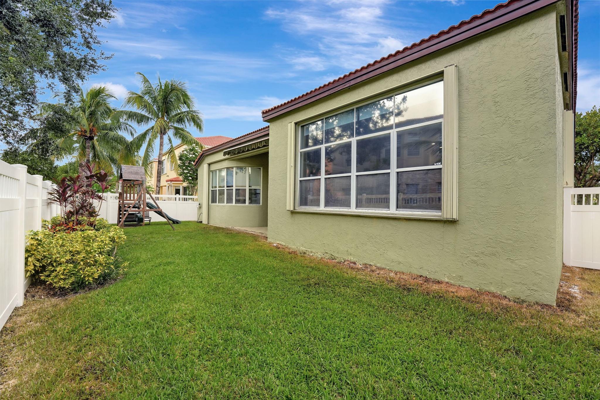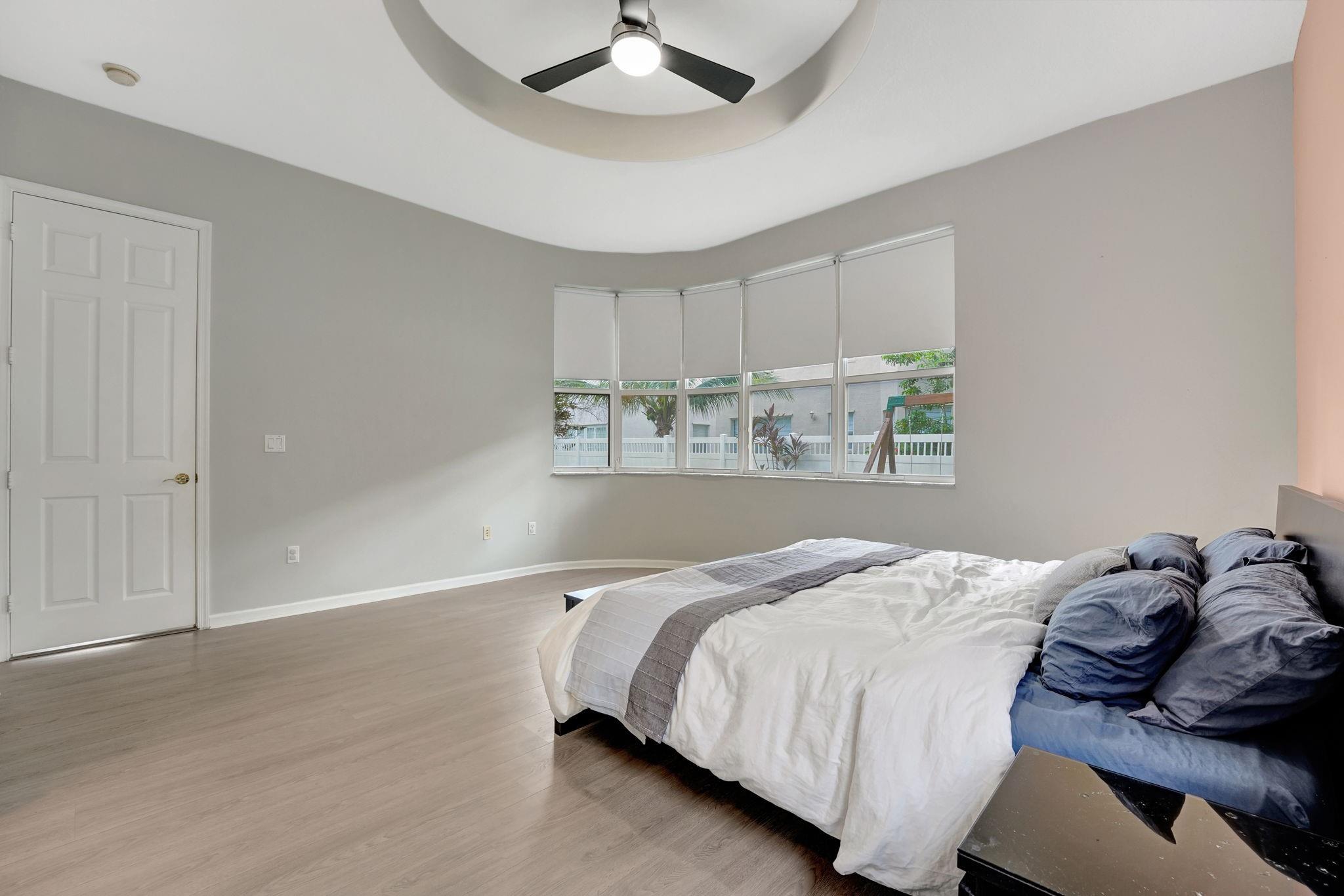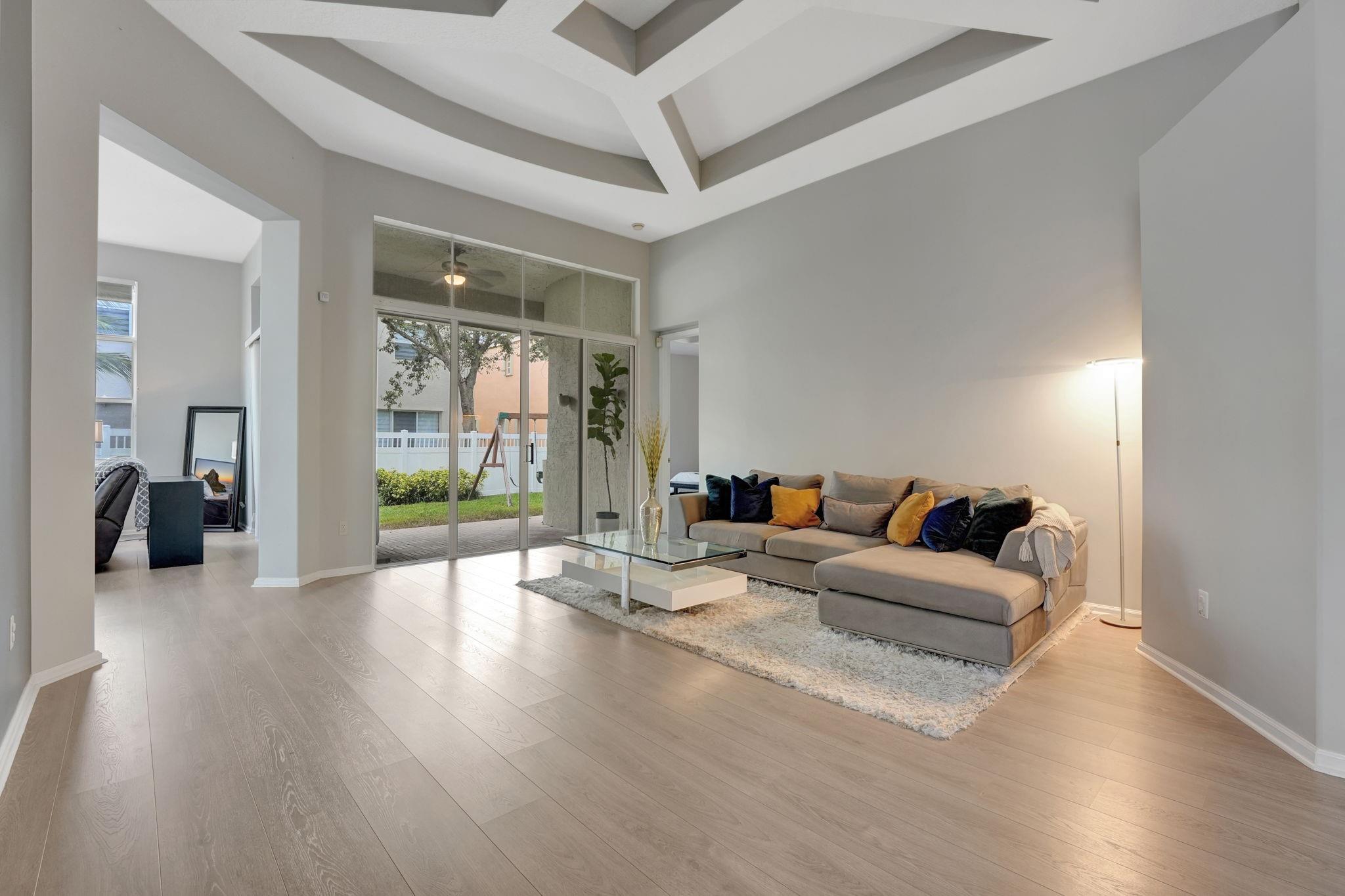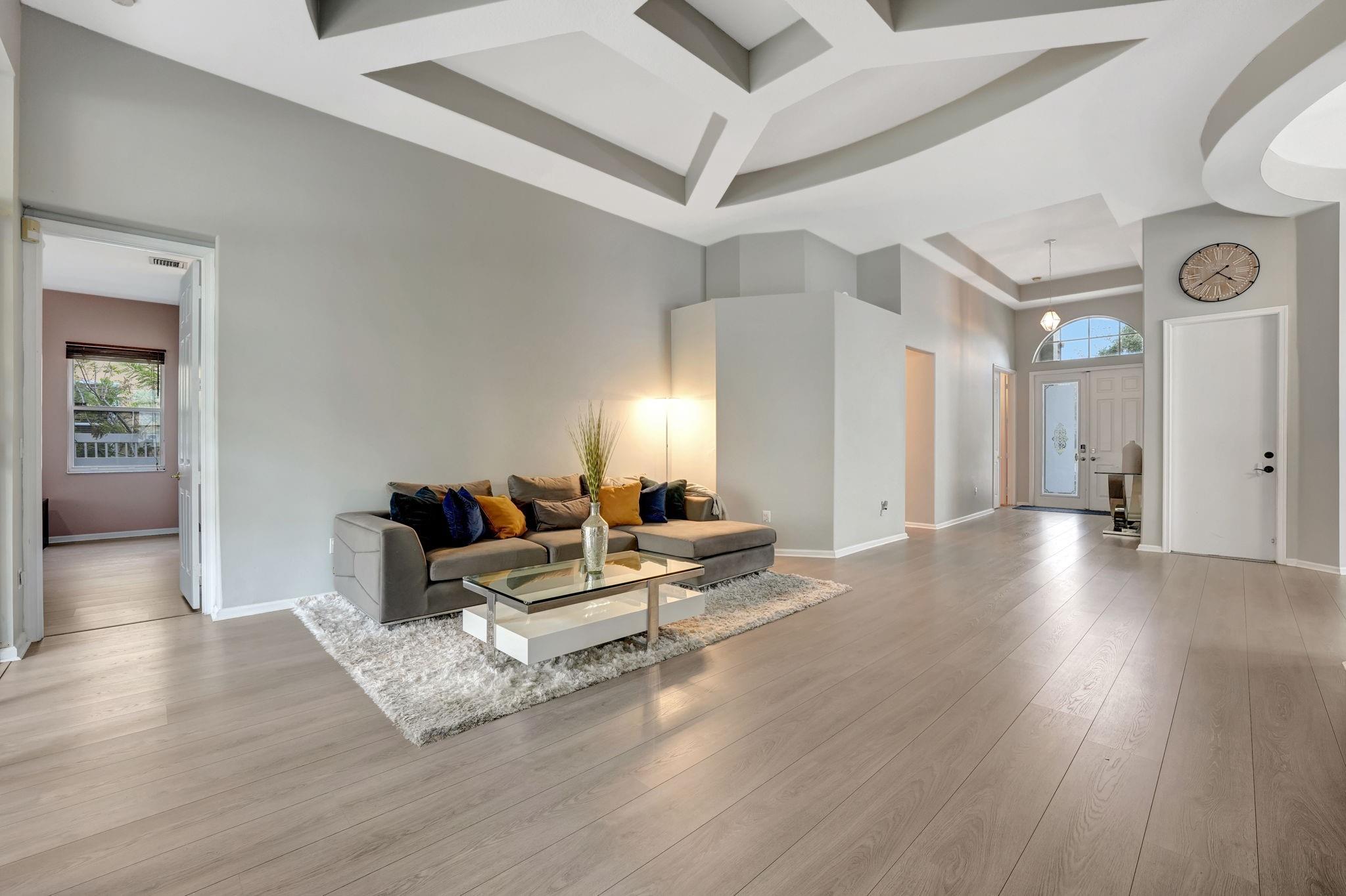 Discover this remarkable 4-bedroom, 3-bath home featuring stunning vaulted coffered ceilings that serve as the focal point of the home. The open floor plan is enhanced by neutral paint and expansive picture windows, allowing natural light to highlight the beautiful vinyl flooring throughout. Step outside to a fenced yard with room for a pool and a covered patio that is ideal for entertaining. Enjoy the perks of a community that includes a resort-style clubhouse, 2 pools, 24 hr guard gate, gym, basketball, tennis and more, all within easy reach of shopping and major highways. Situated on a private cul-de-sac in a highly-rated school district. Roof 2001 with recent clear 4pt, AC 2012, Water Heater 2015, Accordion shutters throughout including rated garage door. Priced to sell.