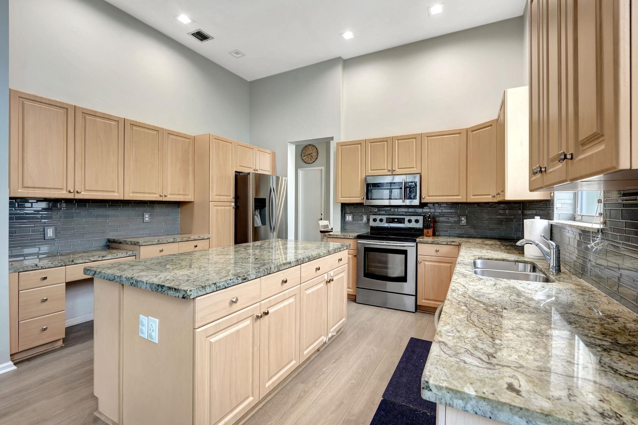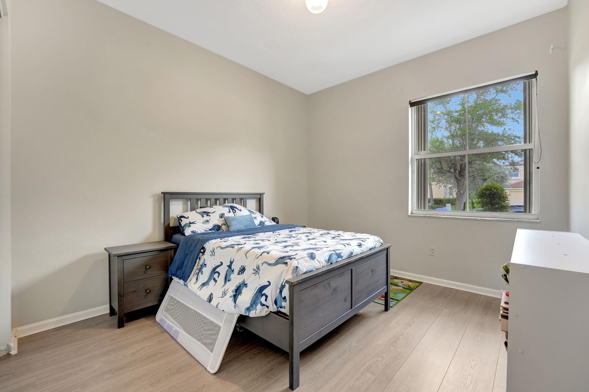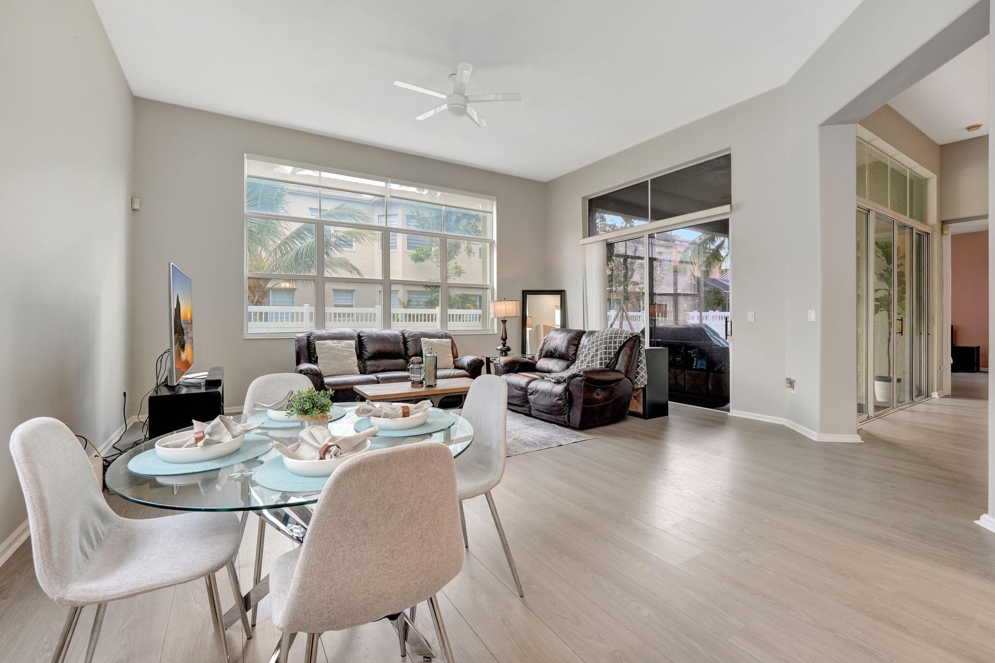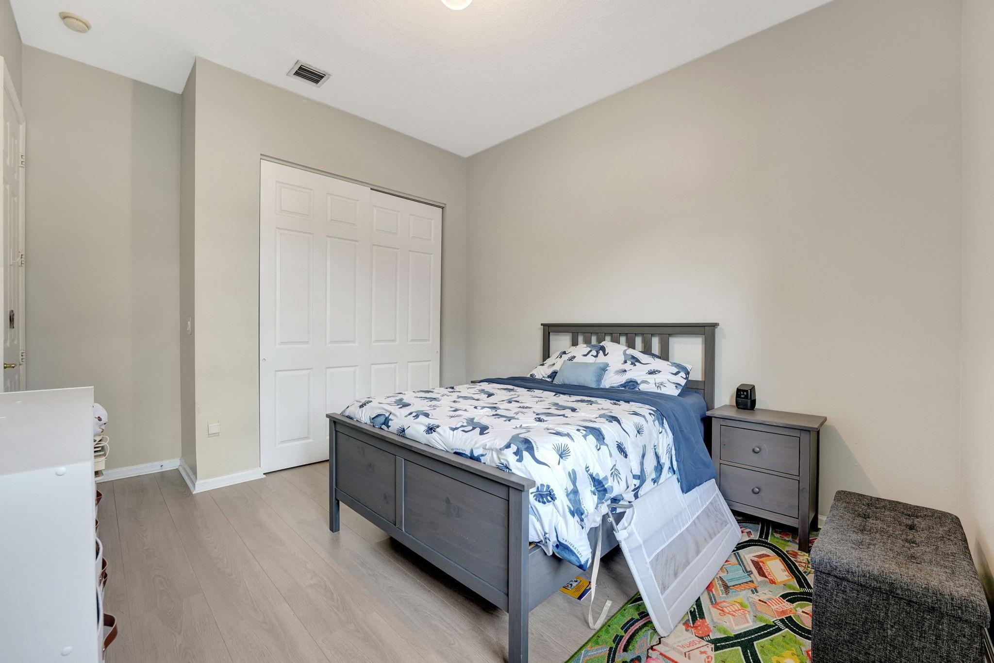 Discover this remarkable 4-bedroom, 3-bath home featuring stunning vaulted coffered ceilings that serve as the focal point of the home. The open floor plan is enhanced by neutral paint and expansive picture windows, allowing natural light to highlight the beautiful vinyl flooring throughout. Step outside to a fenced yard with room for a pool and a covered patio that is ideal for entertaining. Enjoy the perks of a community that includes a resort-style clubhouse, 2 pools, 24 hr guard gate, gym, basketball, tennis and more, all within easy reach of shopping and major highways. Situated on a private cul-de-sac in a highly-rated school district. Roof 2001 with recent clear 4pt, AC 2012, Water Heater 2015, Accordion shutters throughout including rated garage door. Priced to sell.