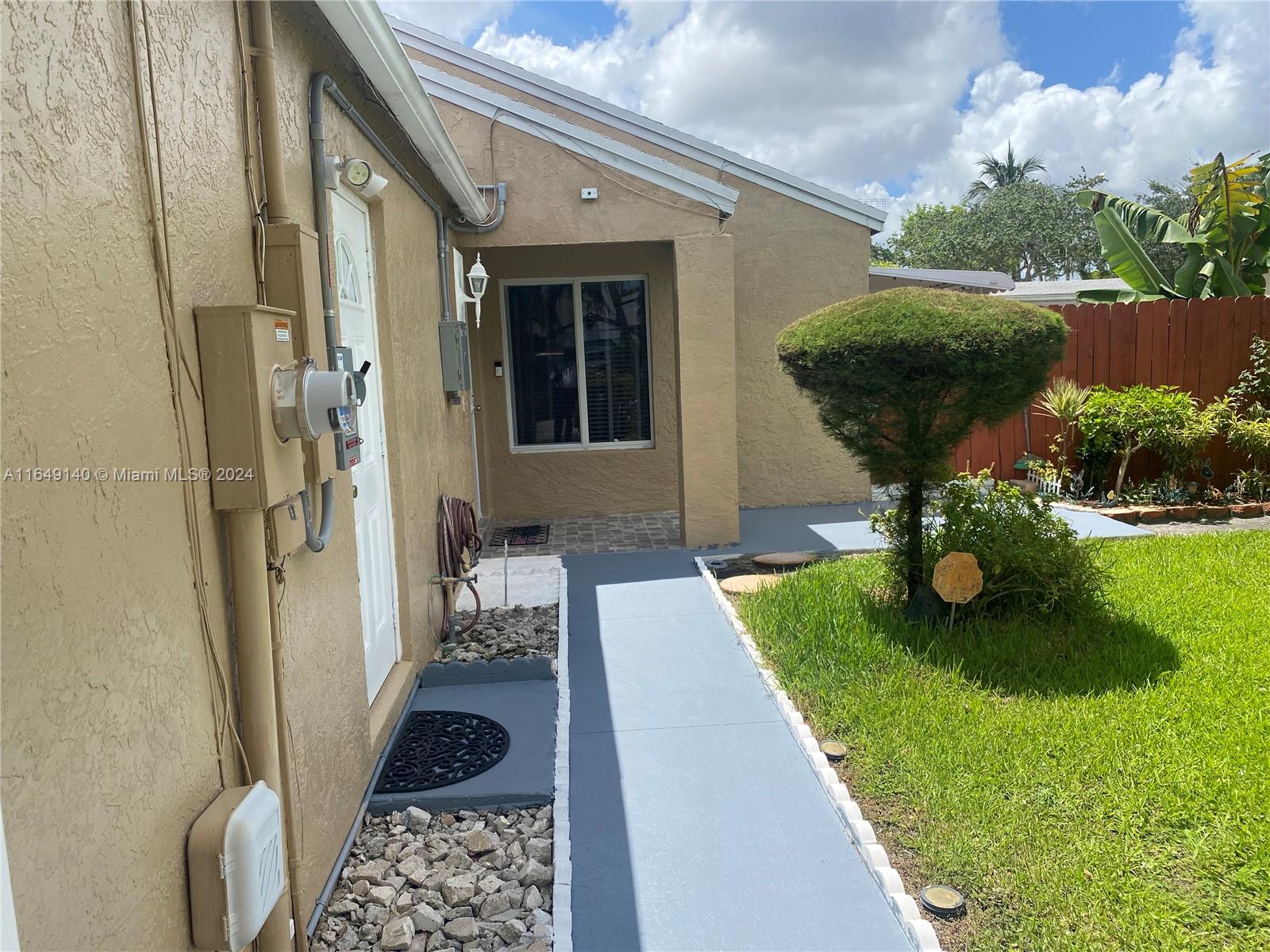 Single Family 3/3 in Miramar. Solar panels that decrease the electricity bills to $50-$70. Air-conditioning installed 2019. Hurricane Impact windows and door installed all around house. Well kept, fruit trees on property, banana trees, cassava, papaya, jackfruit, mango, avocado. Ceiling fans throughout house. Security system installed. AC controlled from app on phone. Countertop stove and wall unit microwave and oven. Revenue earning efficiency rented for $1,600.00/monthly, legally attached with own entrance, bathroom with shower and kitchen. Ready to receive your offer. Inspection report at owner's expense; completed 2/5/2025 $500 savings, a clean bill of health. (willing to share). A MUST-SEE PROPERTY. Price decreased; SELLER MOTIVATED. Will give contribution to buyer at closing.