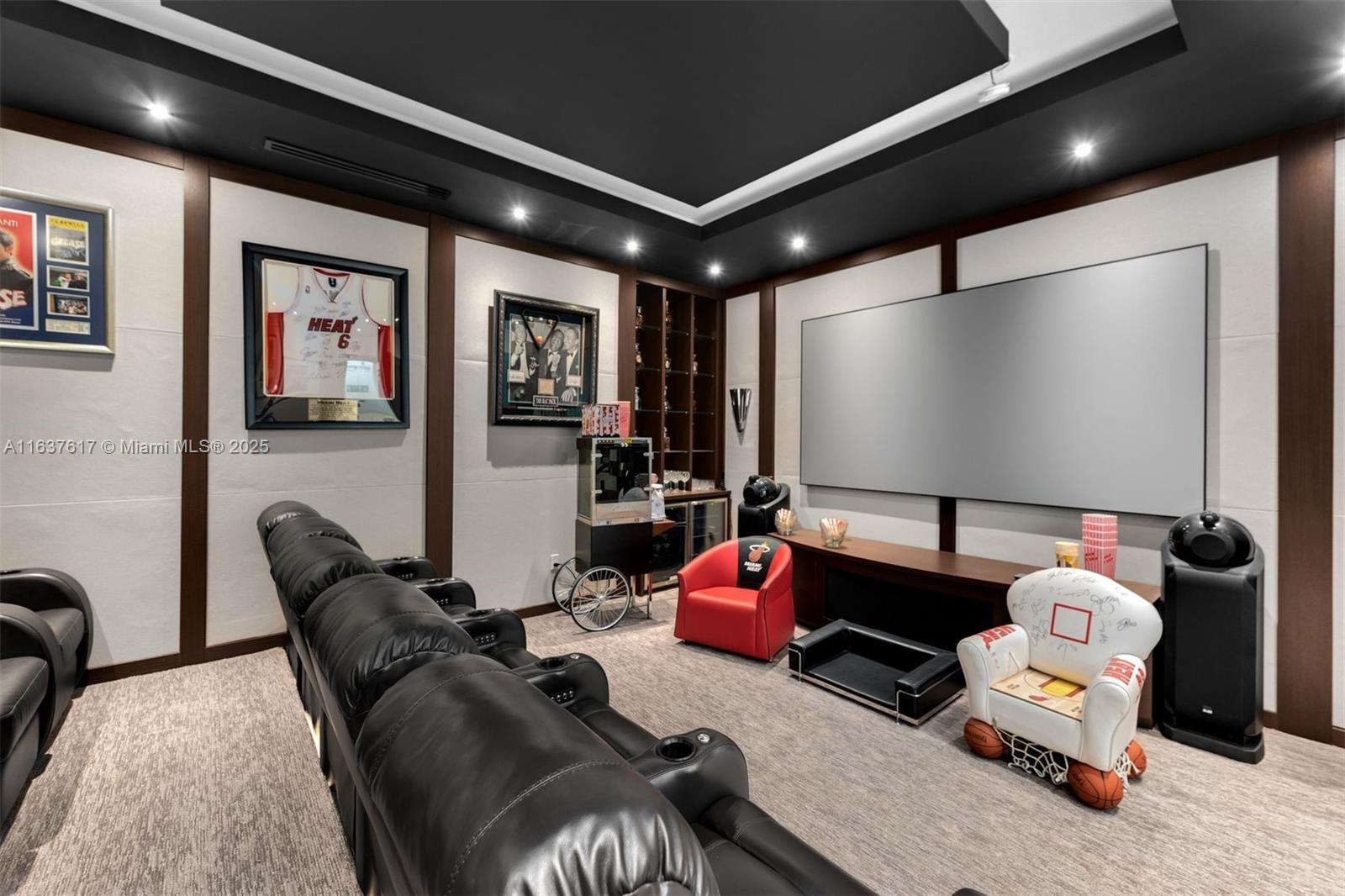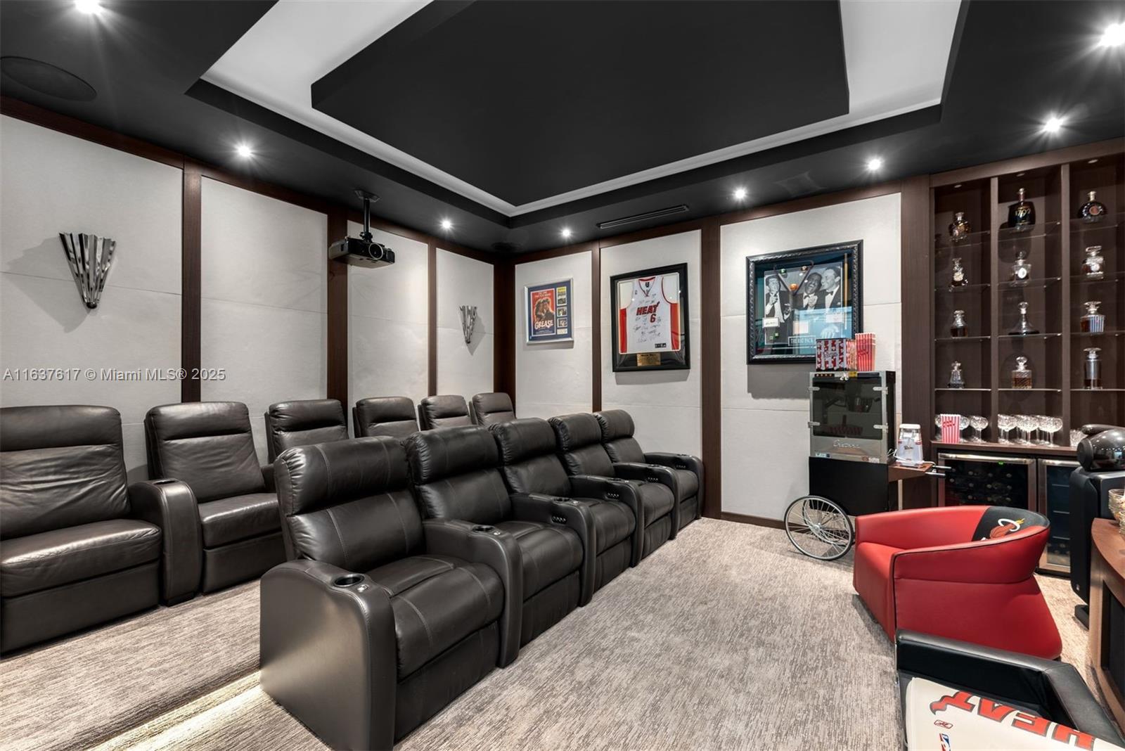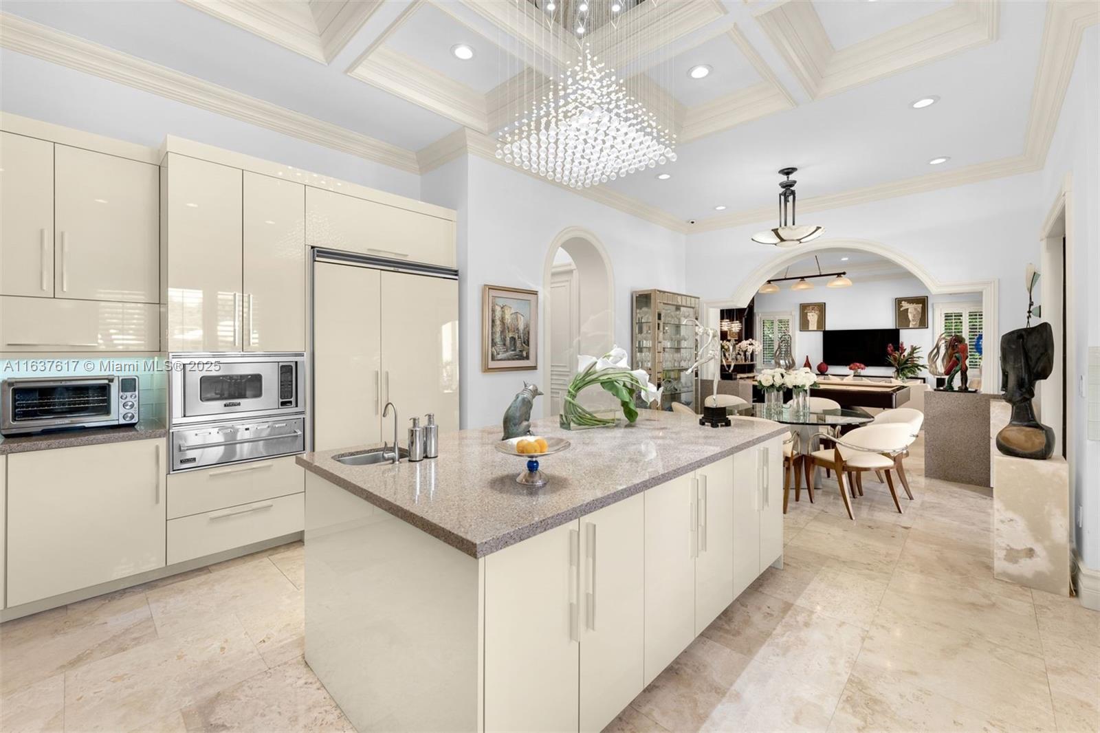Tucked along a quiet tree-lined street in Pinecrest, this 9,567 SF masterpiece offers 7 BD, 6 BA, and 2 HB on a lush 36,590 SF lot. Beyond the grand triple-height foyer, discover multiple wine cellars, wet bar, movie theatre, and game room. The chef’s kitchen dazzles with an expansive island, premium appliances, and pantry. Exceptional details include an elevator, generator, Savant smart system, impact windows/doors, and insulated AC 3-car garage. Outdoors, a covered terrace with summer kitchen overlooks the sparkling saltwater pool, jacuzzi, and versatile tennis/soccer/basketball court. A detached cabana with half bath, custom bar, and recreation room completes this rare offering. Some photos virtually staged.
