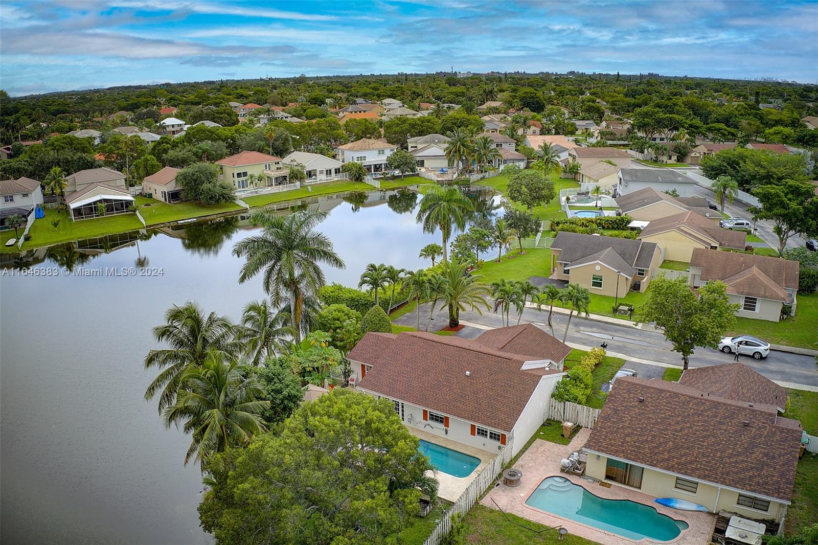 BREATHTAKING, PRIME LOCATION, OVER-SIZED WATERFRONT LOT IN SHENANDOAH, ON A CUL DE SAC WITH WATER VIEWS EVERYWHERE. HOUSE FEATURES 4 BEDROOMS, 2 BATHROOMS, 1-CAR GARAGE. POOL WITH PUMP REPLACED ON 2022. UPDATED KITCHEN W/ NEWER APPLIANCES, GRANITE COUNTER-TOP & BACK-SPLASH, BREAKFAST AREA, LIVING ROOM W/ FRENCH DOORS LEADING OUT TO THE AMAZING POOL & PATIO AREA OVERLOOKING AN AMAZING LAKE VIEW, LUSH LANDSCAPING W/ FRUTAL TREES AND HERBS GARDEN. NEW TECH SHINGLES ROOF (2024) WITH 16'' INSOLATION. ROOF TRANSFERABLE WARRANTY. IMPACT WINDOWS & SHUTTERS. TESLA CAR CHARGING OUTLET 44KW. UNDER GROUND GAS TANK FOR A WHOLE HOUSE GENERAC GENERATOR-22KW / RATED FOR 27 YEARS. ENERGY EFFICIENT WATER HEATER FROM 2022.