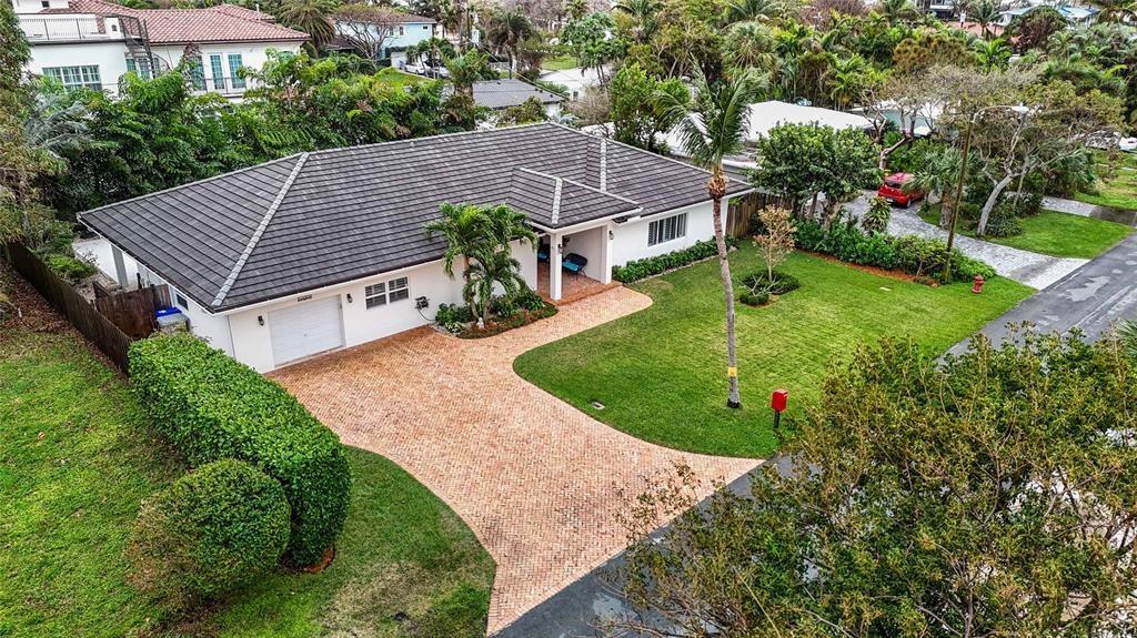 Stunningly remodeled home with high ceilings. Hard wood floors, Hurricane impact windows and doors throughout and plantation shutters. Roof 2016 with Icynene insulation. Roof has premium modified underlayment that will add 15 + years over the standard. Roof has copper drip edge, vents and flashings. Roof shape is a hip roof which was designed for maximum wind resistance and insurance savings. A/C has a premium dual motor system for maximum efficiency and energy savings. The electrical supply from FPL was converted to underground. Automatic, adjustable irrigation system and landscape lighting. Oversized 100 x 100 lot. Hurricane rated garage door. New electrical panel and supply. Chicago brick driveway. All lighting is LED. 3 Gorgeous covered patios. Private Beach Access 3 minute walk away.