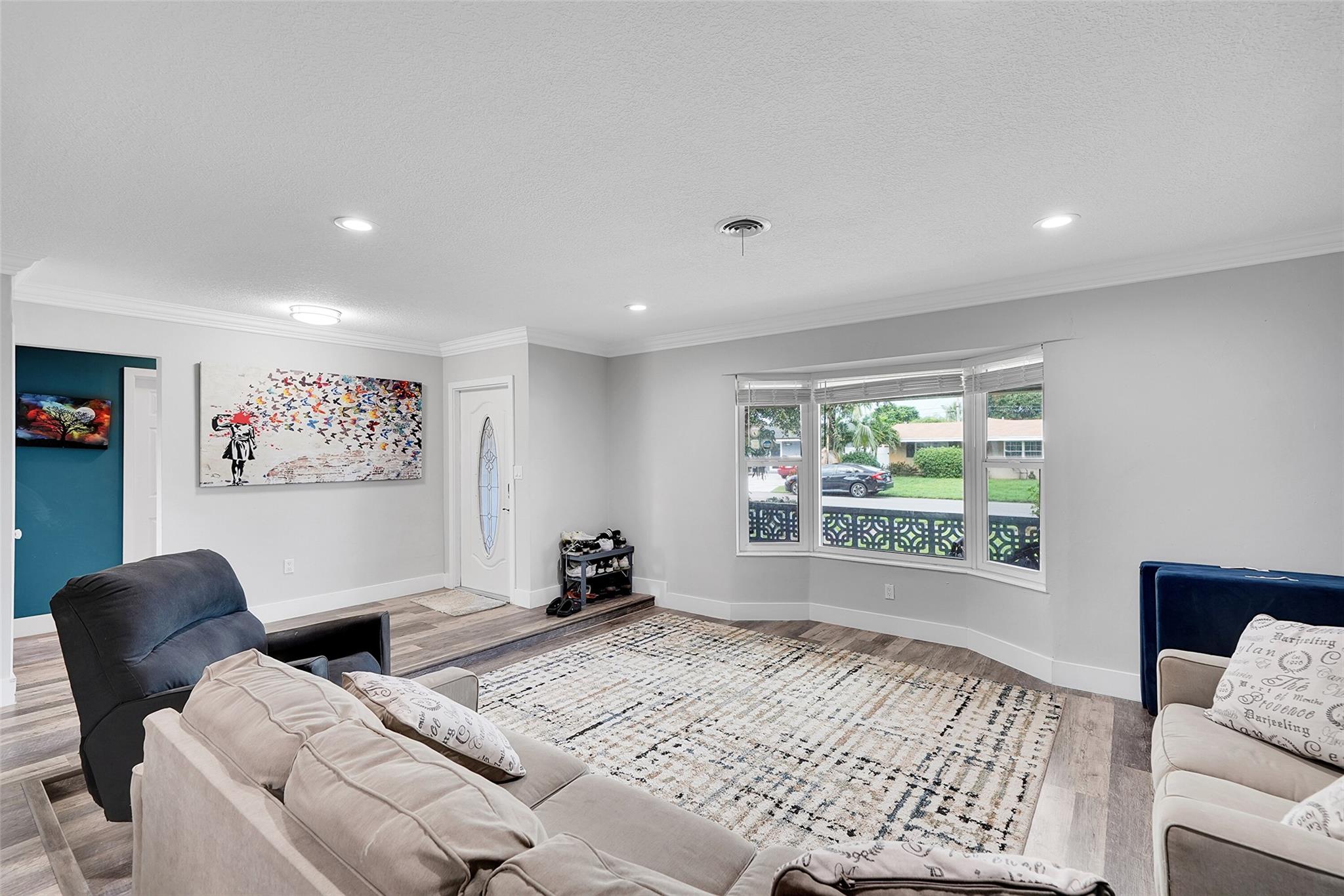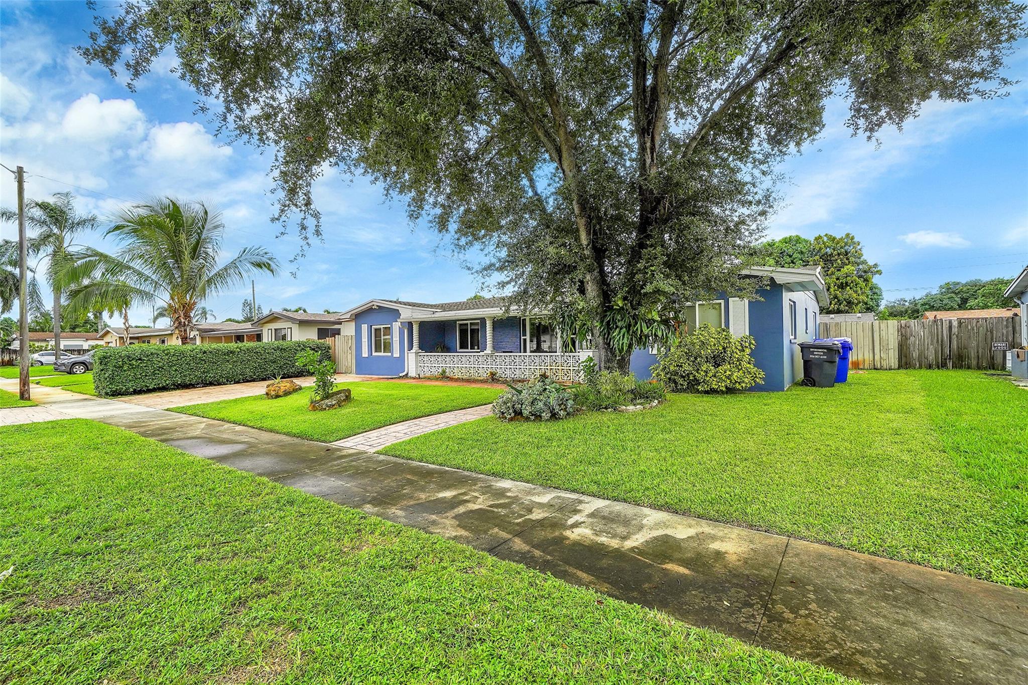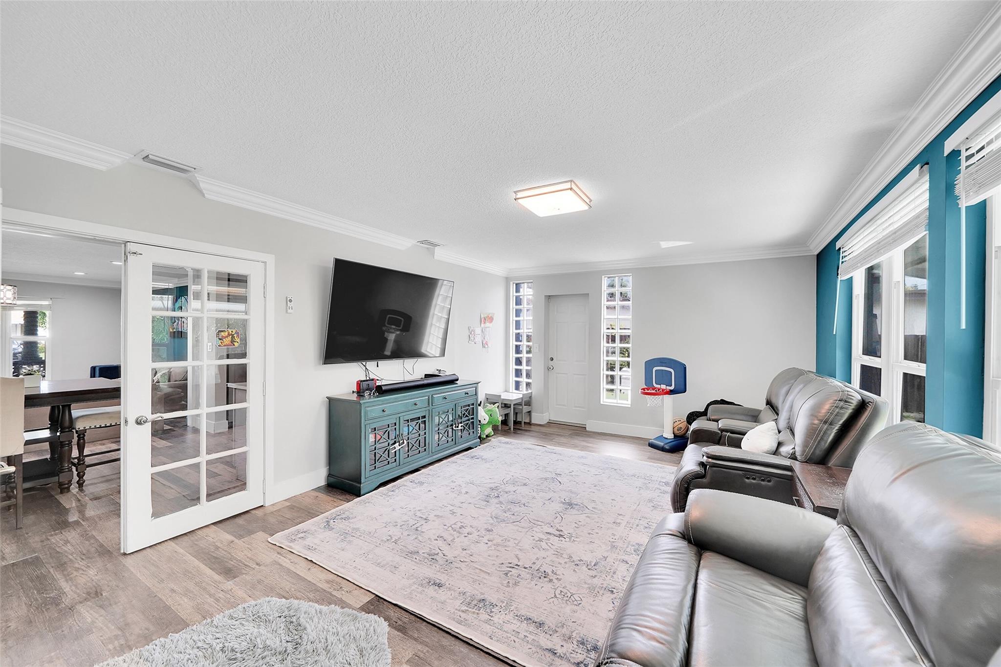 Discover this stunning Hollywood home with no HOA fees! Featuring four bedrooms, three bathrooms, plus an office, this residence offers a main house with three bedrooms and two bathrooms, alongside an office and a separate one-bedroom, one-bathroom efficiency with its own private entrance. Enjoy a host of upgrades including a remodeled kitchen, updated bathrooms, crown molding throughout and vinyl tile flooring throughout. The home boasts interior laundry, spacious living and family rooms, a newer roof, insulated attic, impact-resistant windows and doors, a tankless water heater, and a recent A/C system. French doors lead to a private family room, and the backyard features a large concrete patio ideal for gatherings.