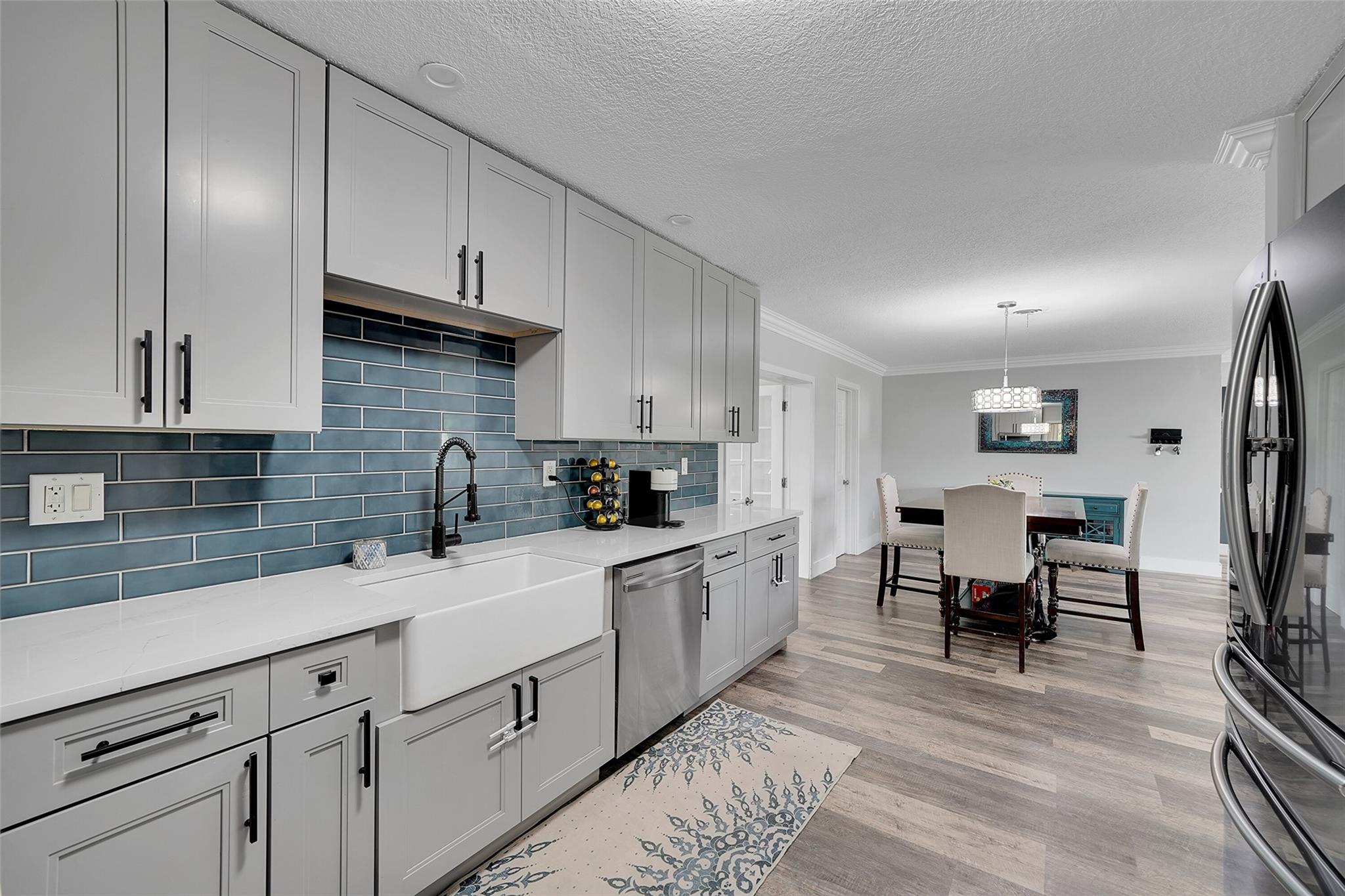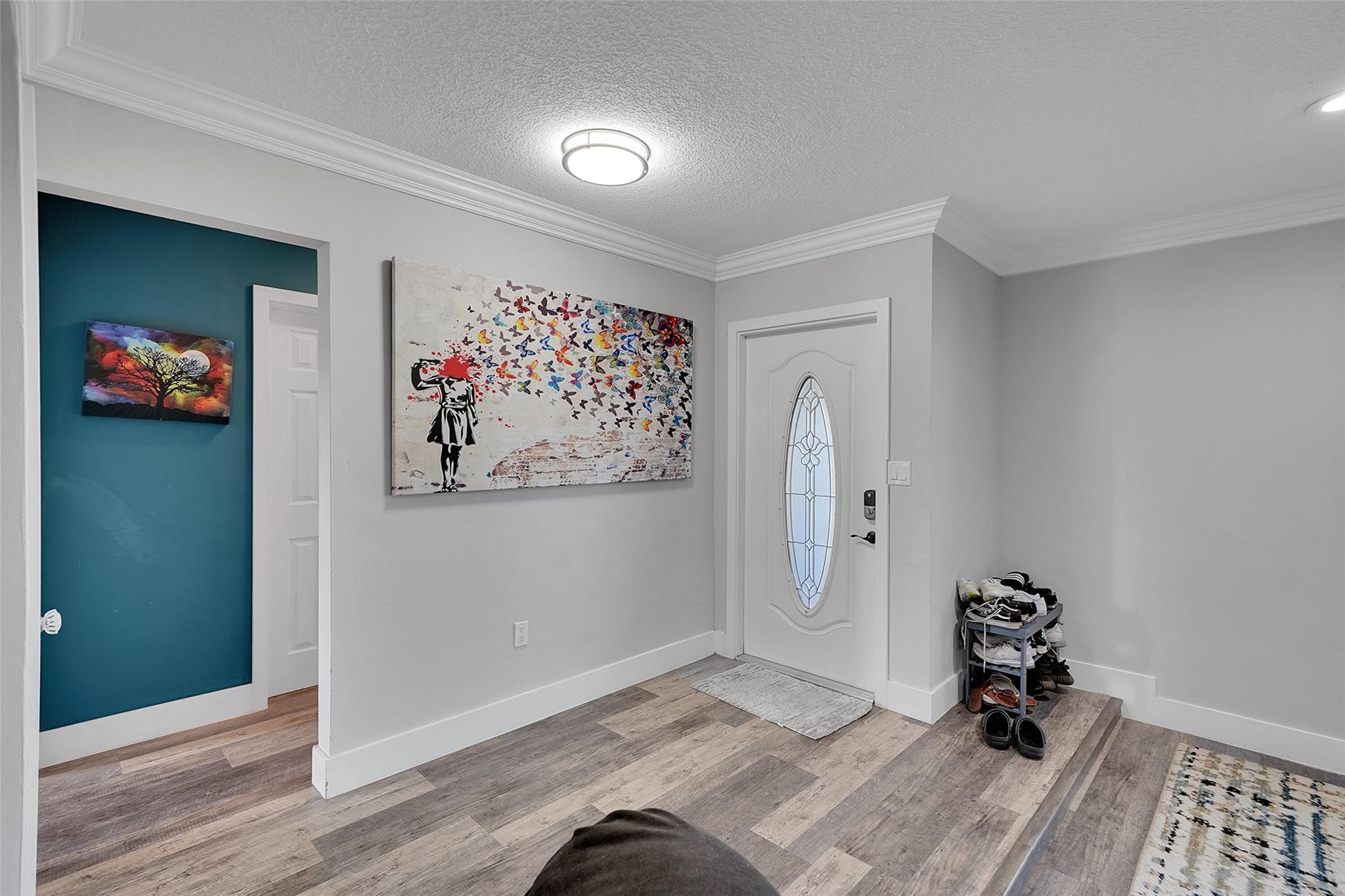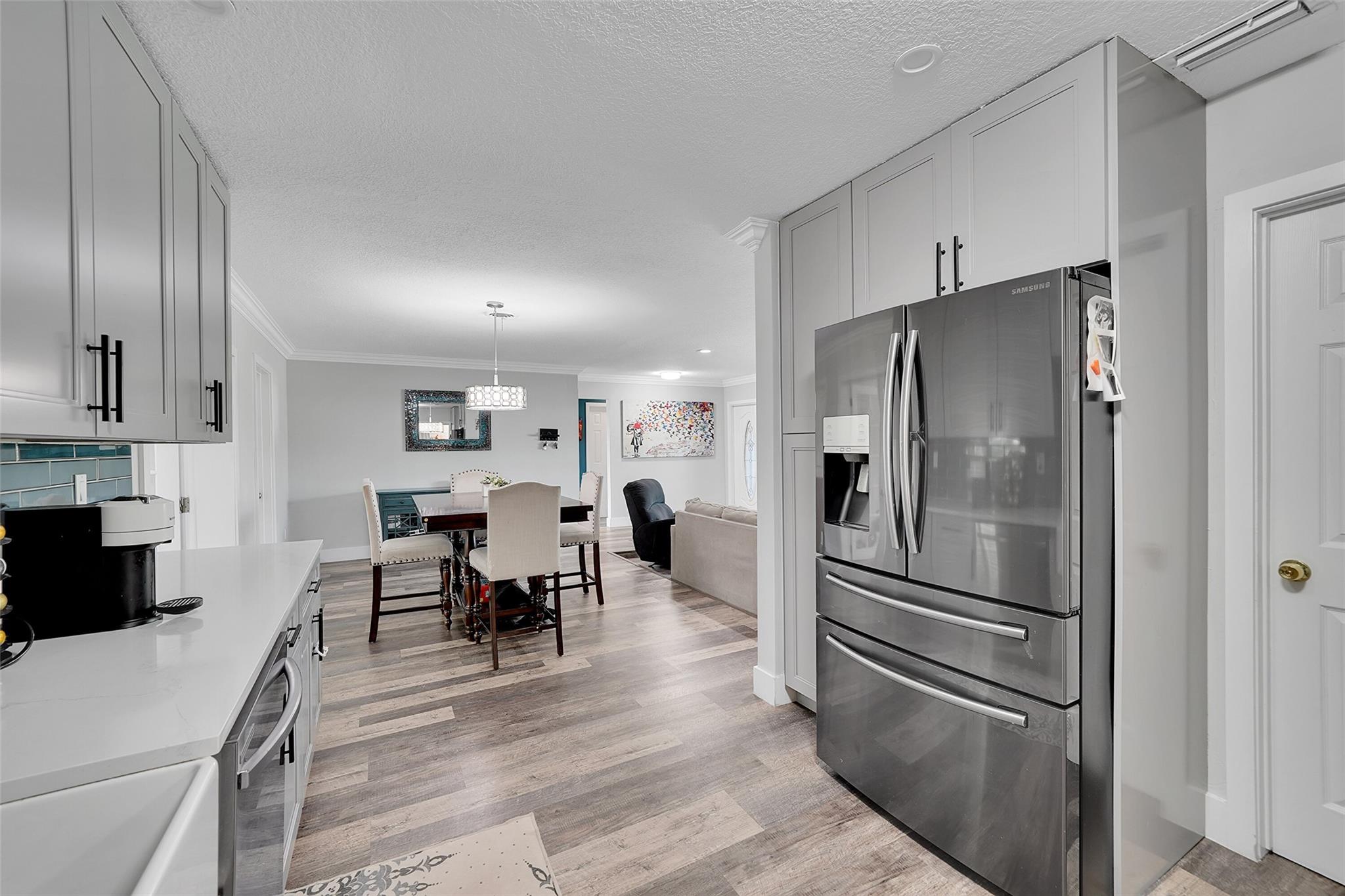 Discover this stunning Hollywood home with no HOA fees! Featuring four bedrooms, three bathrooms, plus an office, this residence offers a main house with three bedrooms and two bathrooms, alongside an office and a separate one-bedroom, one-bathroom efficiency with its own private entrance. Enjoy a host of upgrades including a remodeled kitchen, updated bathrooms, crown molding throughout and vinyl tile flooring throughout. The home boasts interior laundry, spacious living and family rooms, a newer roof, insulated attic, impact-resistant windows and doors, a tankless water heater, and a recent A/C system. French doors lead to a private family room, and the backyard features a large concrete patio ideal for gatherings.