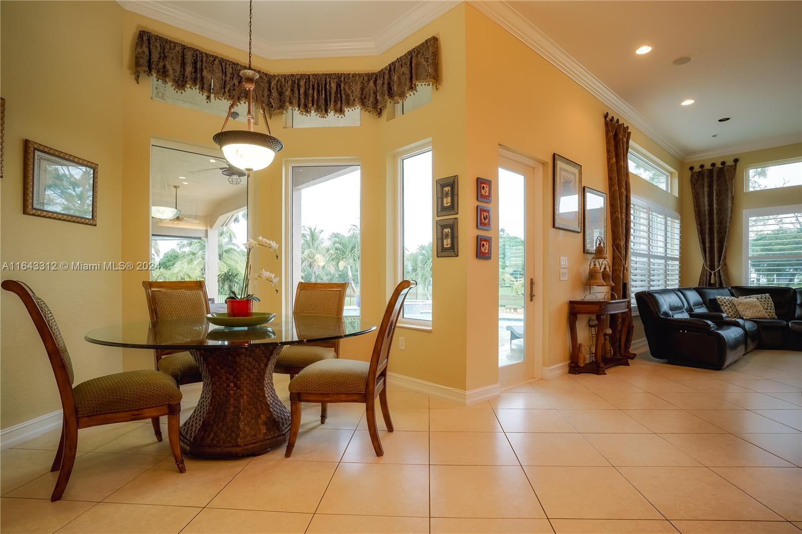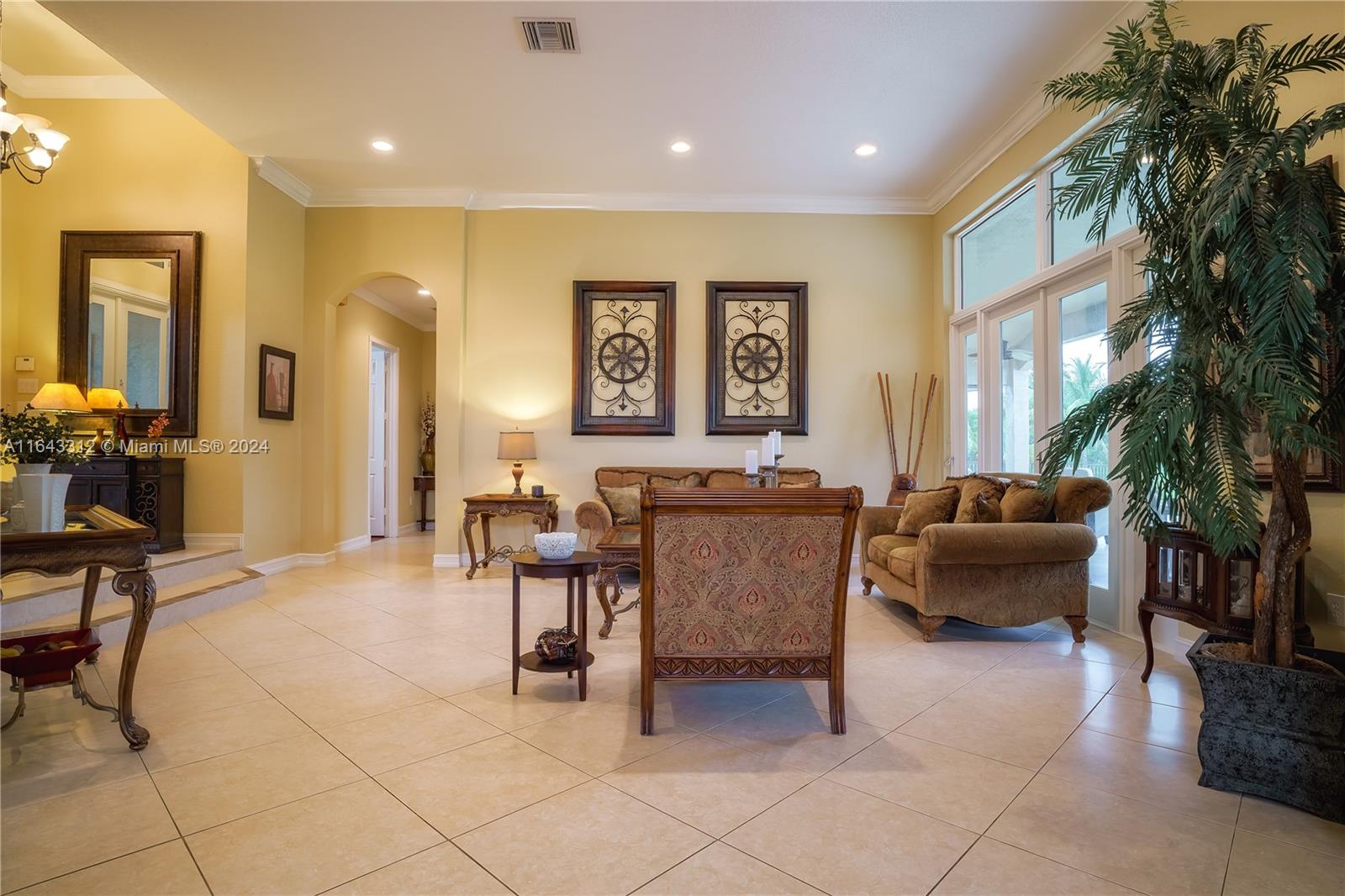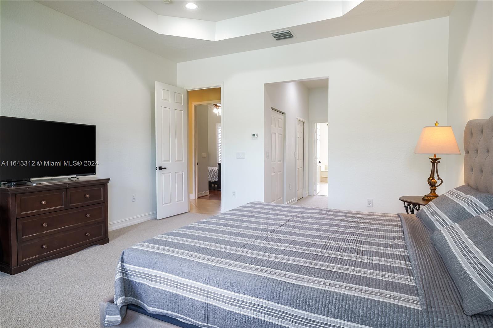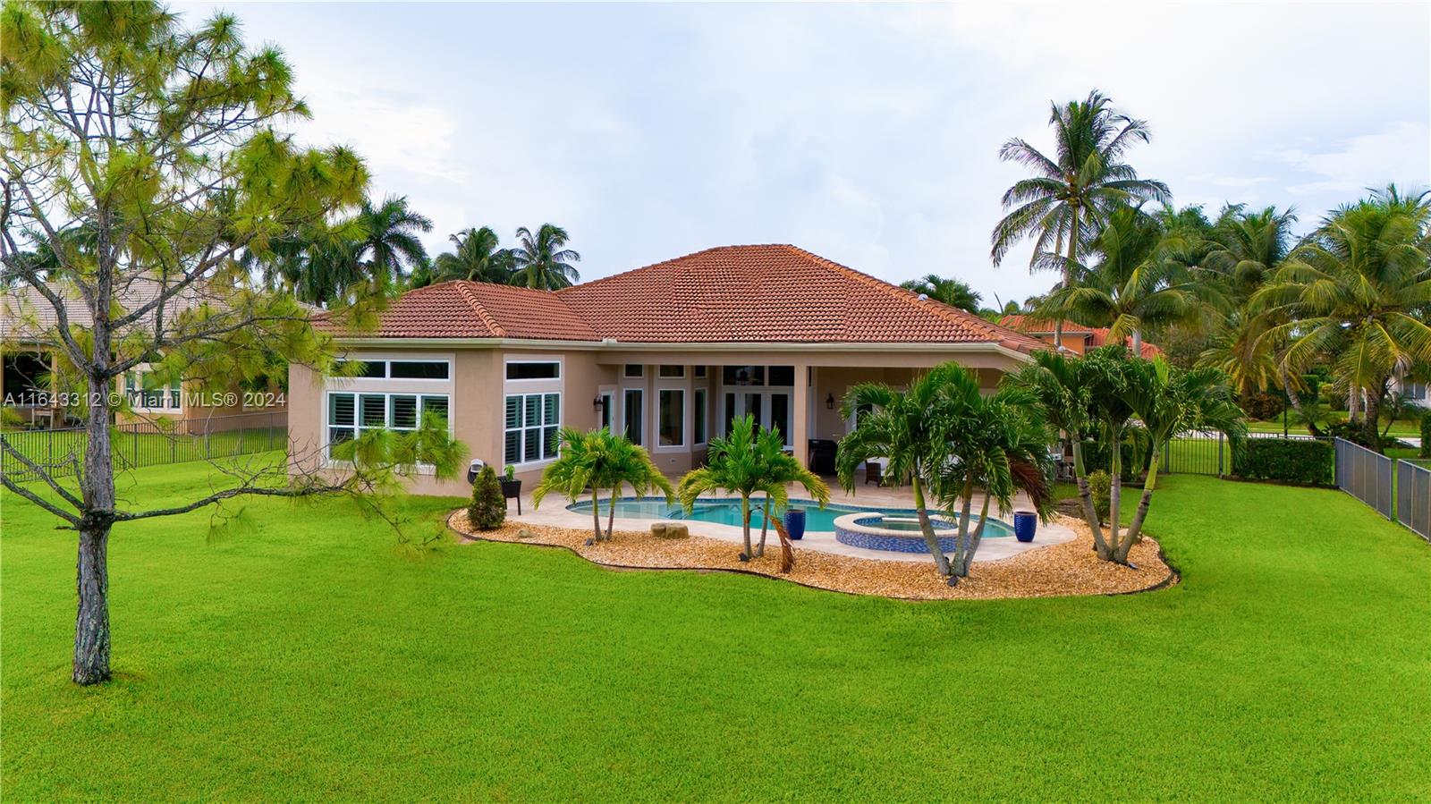 Welcome to this elegant lakefront estate located in the guard gated community of Riverstone. This magnificent one-story home features 5 bedrooms, 4 bathrooms, high ceilings and an open concept of sophisticated living space. The home exudes charm and elegance, with plantation shutters throughout and impact windows and doors for added security and peace of mind. Nestled on an expansive oversized fenced lot, the property offers a beautifully landscaped, fenced yard, perfect for privacy and relaxation. The spacious backyard and patio are designed for entertaining with a magnificent lake, pool and spa views from every living space of the house. 2022 Roof. Experience unparalleled refinement in this stunning home.