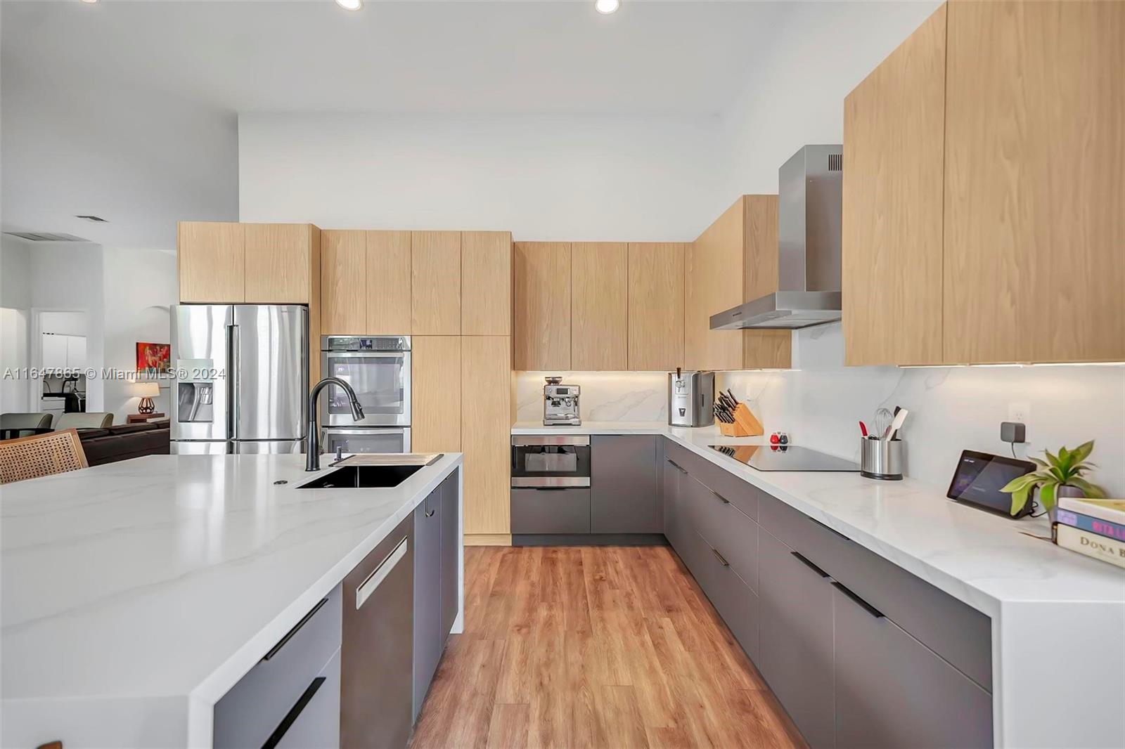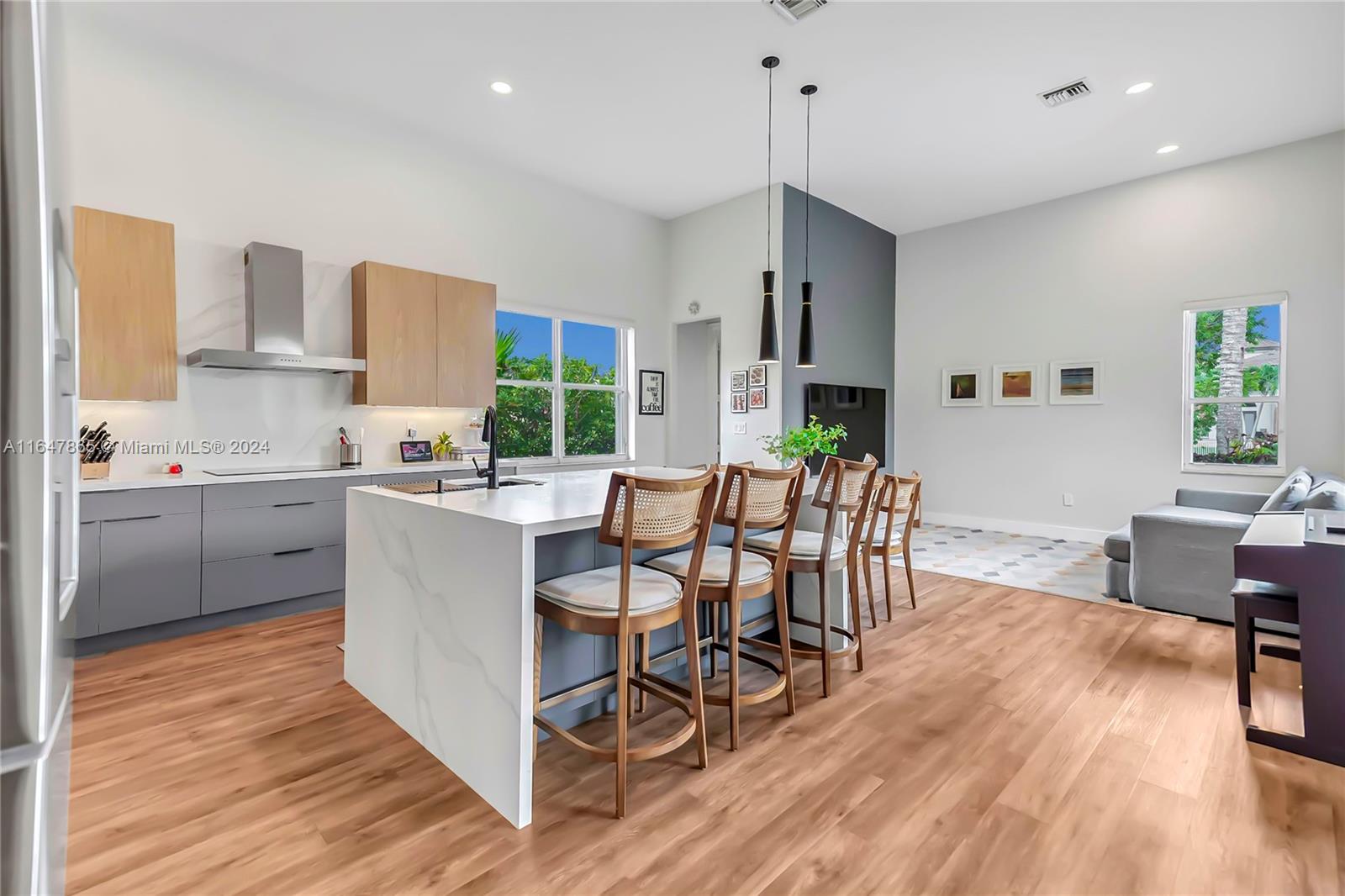 Beautiful single-story lakefront home in the quiet gated community of Grand Isles in Sunset Lakes! This 4-bedroom, 2.5-bath home features renovations inside and outside including flooring, half bathroom, electric window treatments throughout, and more. It features high-end finishes, renovated gourmet modern kitchen with quartz waterfall countertops, stainless-steel appliances, and spacious 12-foot ceilings. The fenced-in backyard has stunning lake views and beautiful pool perfect for unwinding and entertaining. Make this bright and spacious turn-key retreat your new home.